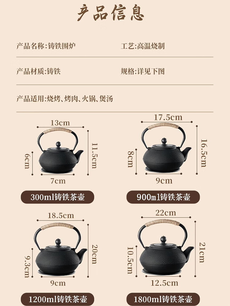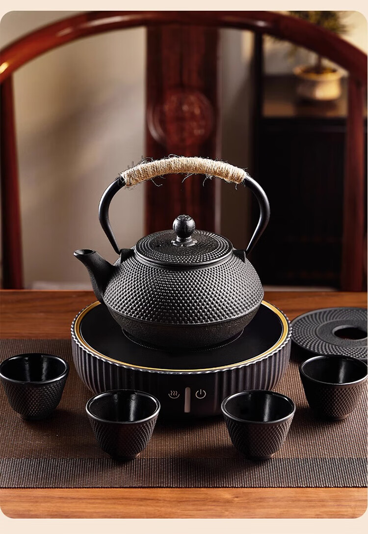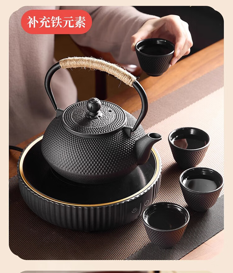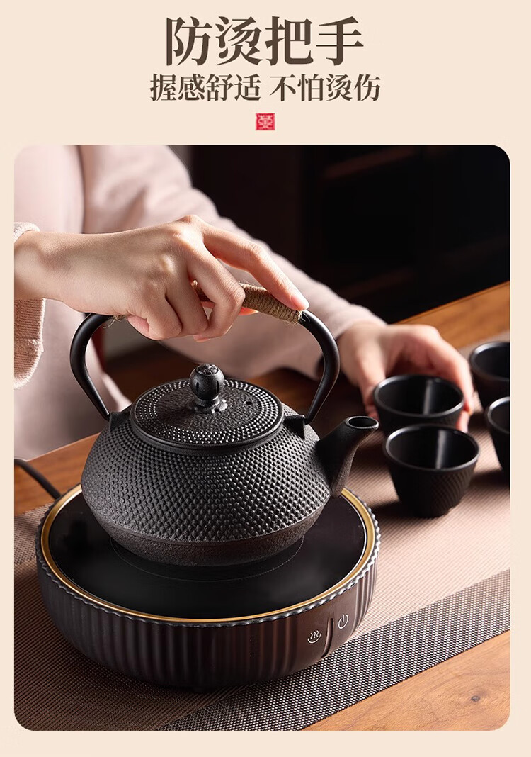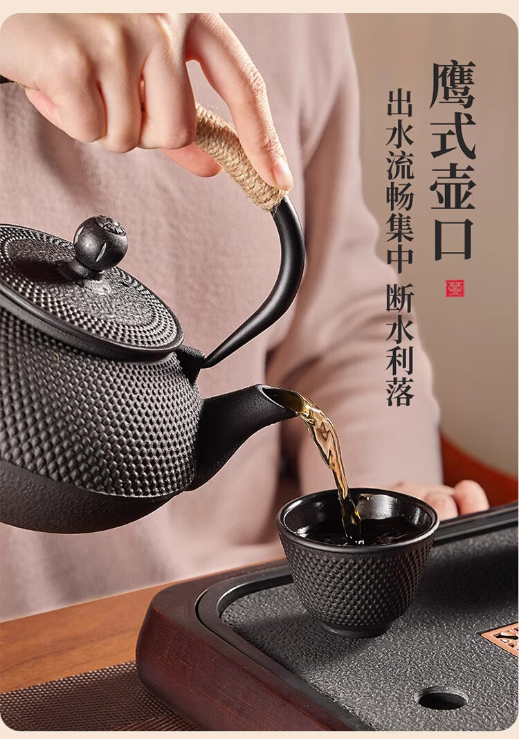 筏芯德国正品铁壶煮茶壶烧水壶泡茶专用碳火电陶炉器具冬秋天茶壶围炉 铸铁茶壶300ml-带茶漏