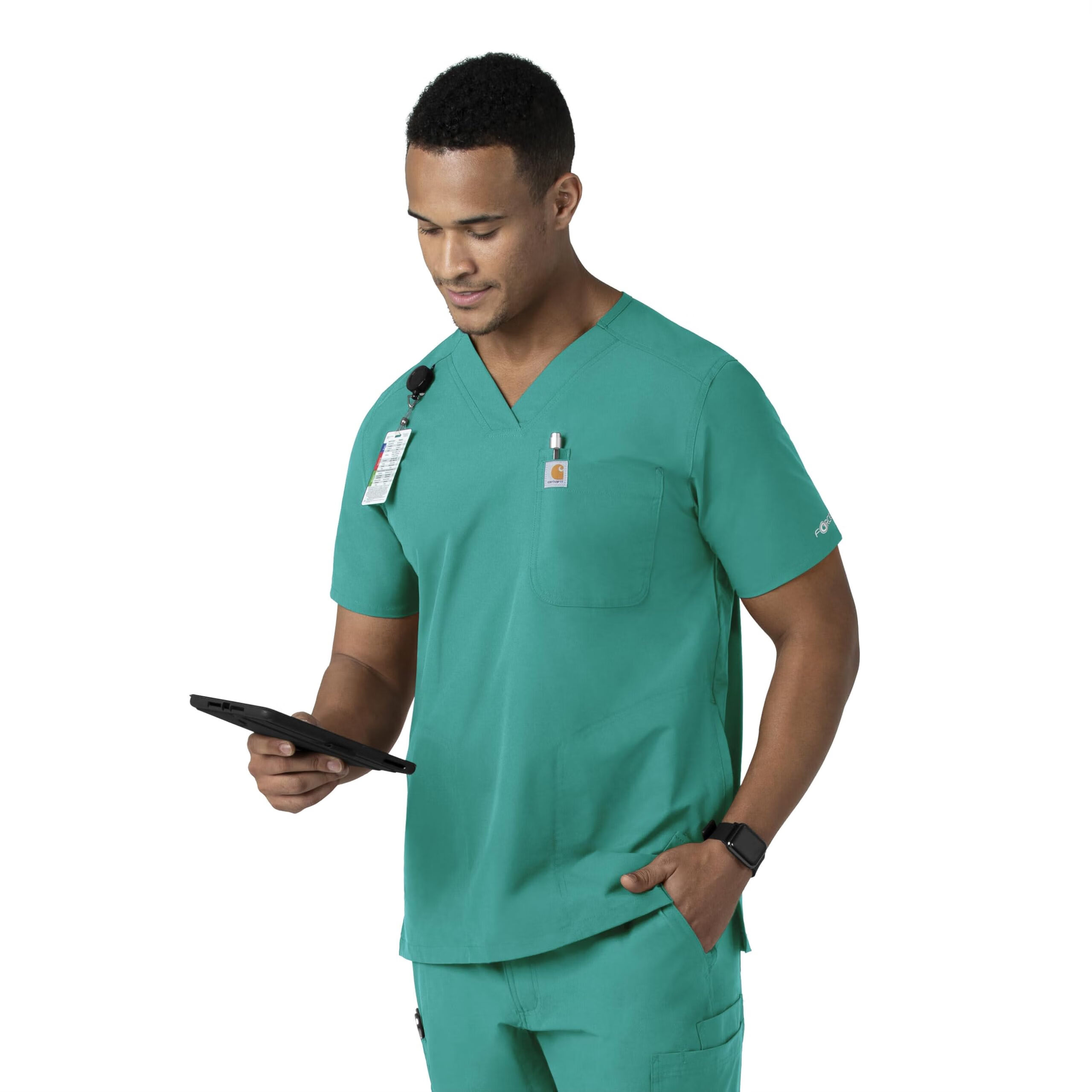 Carhartt卡哈特Carhartt 男式 Force V 领衬衫上衣, 蓝绿色, 5X 蓝绿色 5X