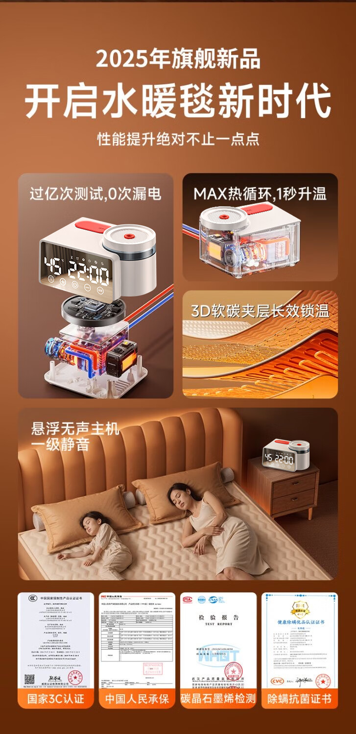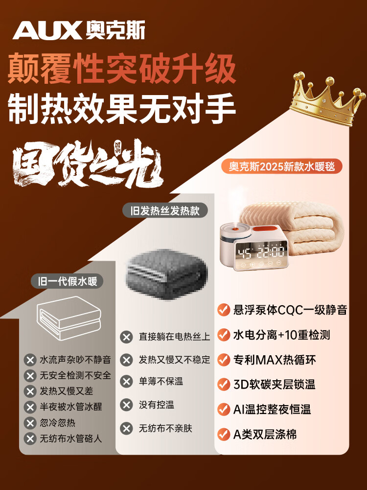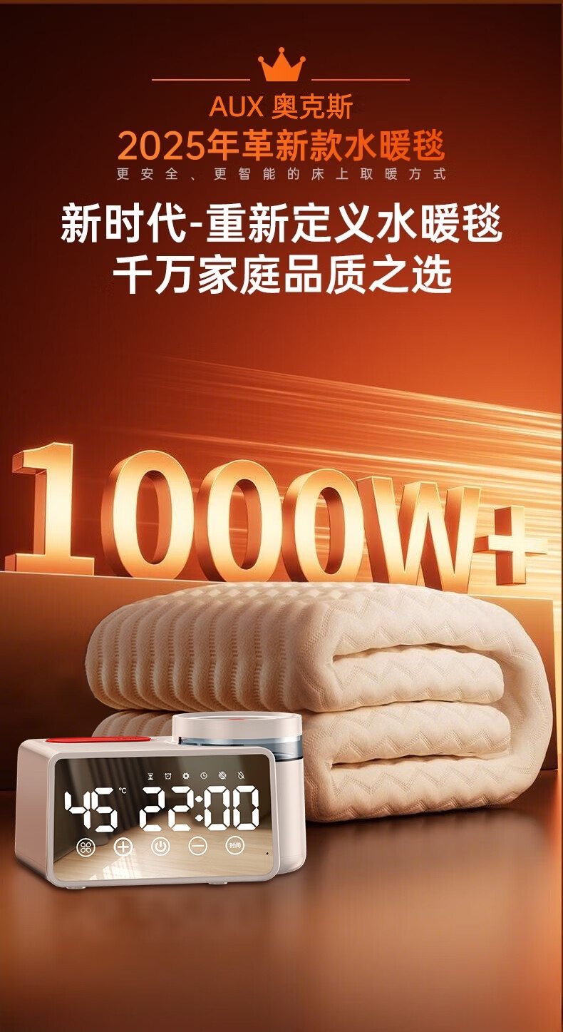 奥克斯【2025新款】水暖电热毯水暖毯炕电褥子单双人水循环双温双控家用 【2025雾化语音数显新款】【双层加厚涤棉2.0*1.8m】 智能控温+抗菌除螨+静音不上火