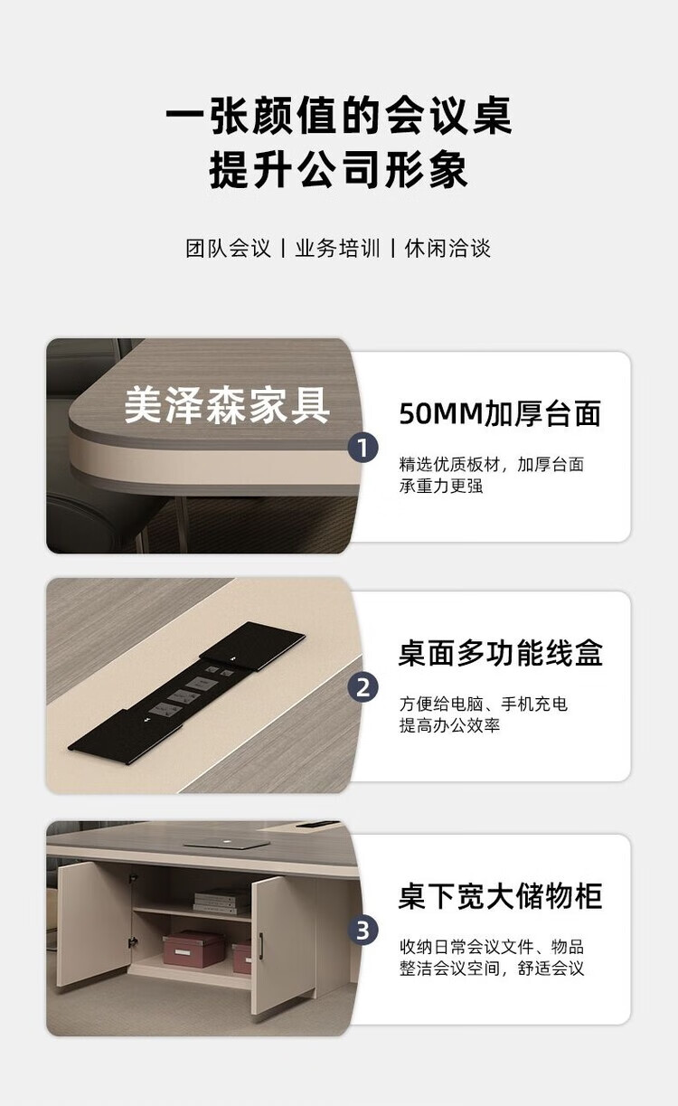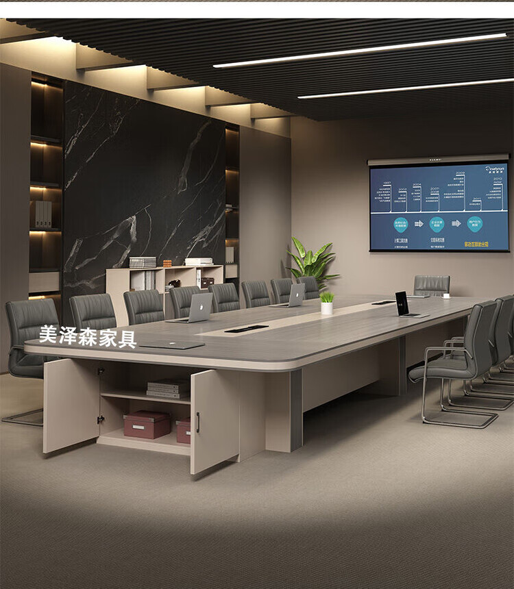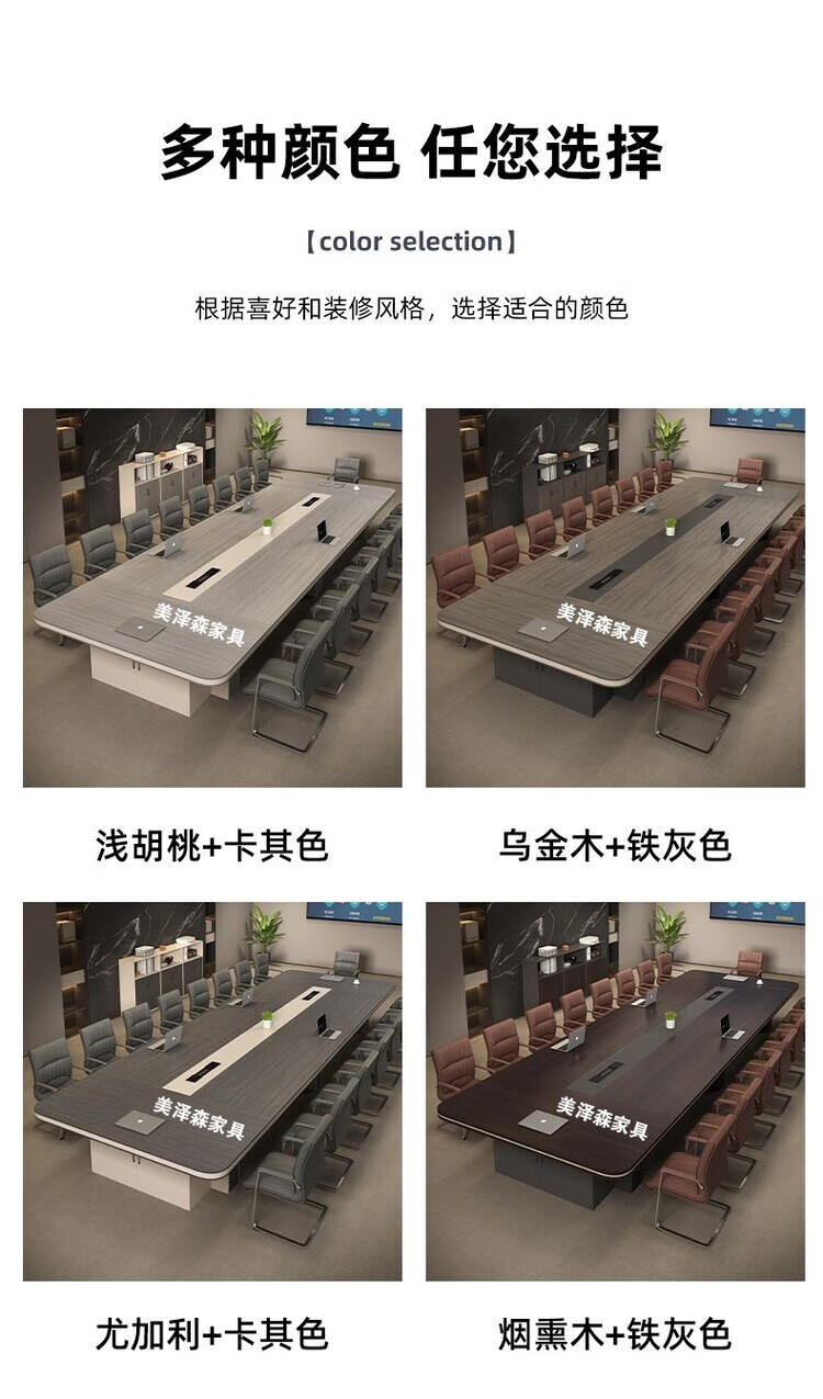 弘星隆办公家具会议桌长桌现代简约大小型洽谈桌谈判培训长方形长条桌椅 2.4*1.2米入户安装(四色可选)