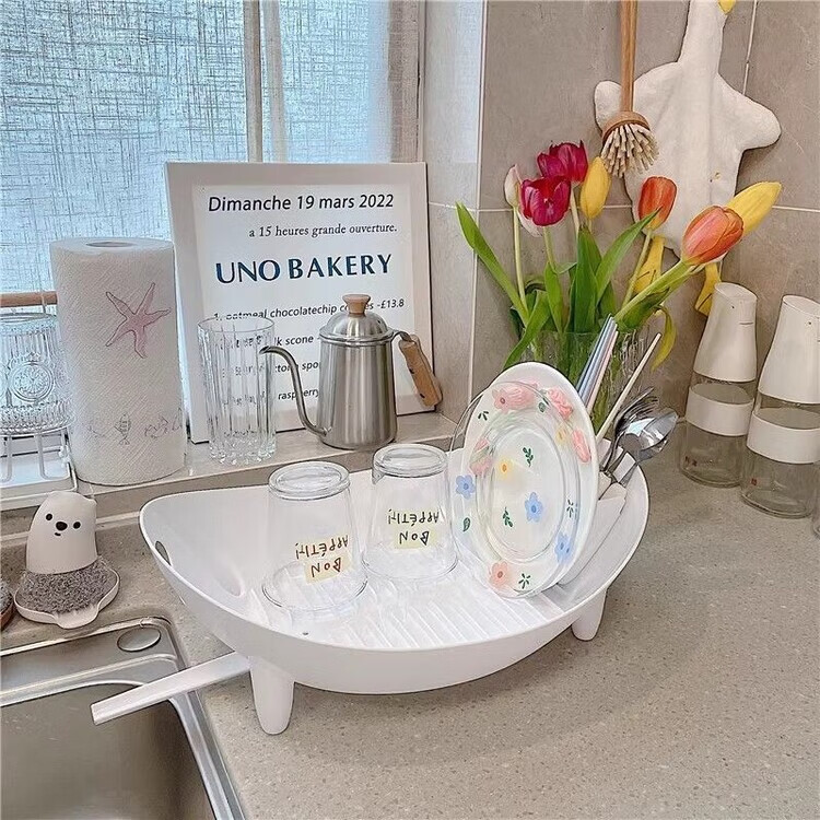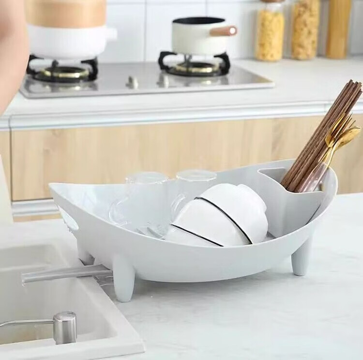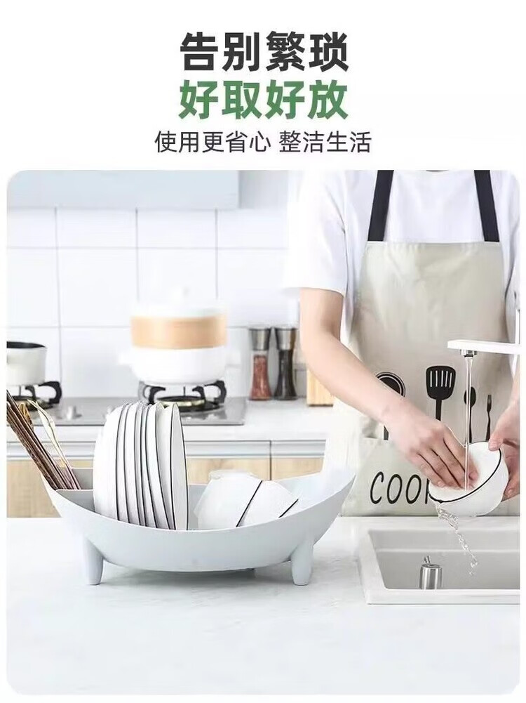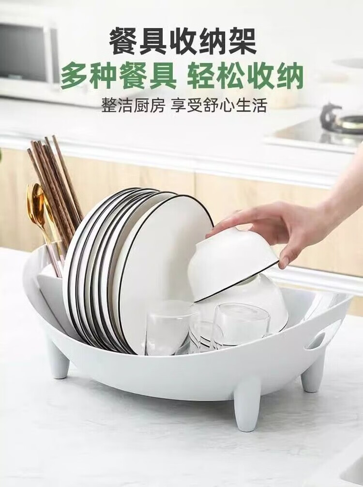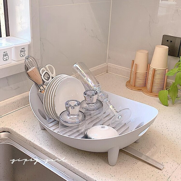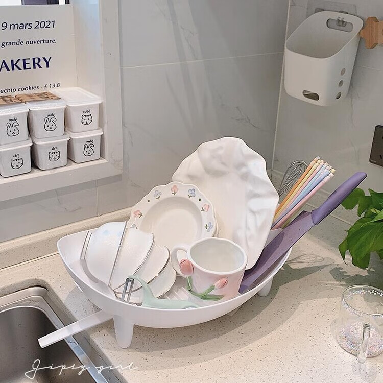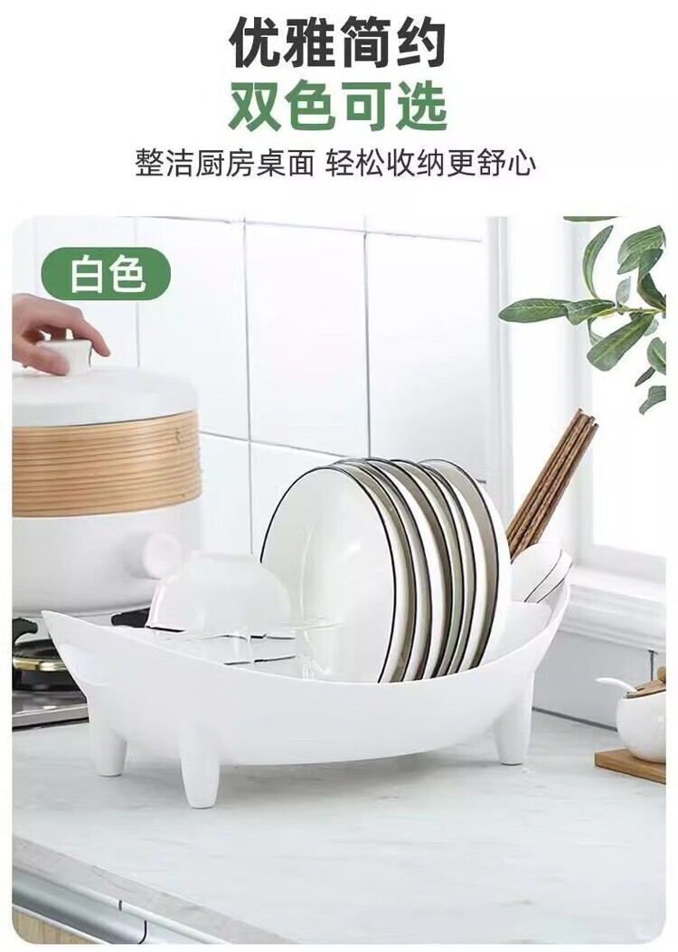 LZJV厨房碗架沥水碗架万能型台式盘碗置物架收纳架碗碟架碗筷滤水架 白色船型碗架