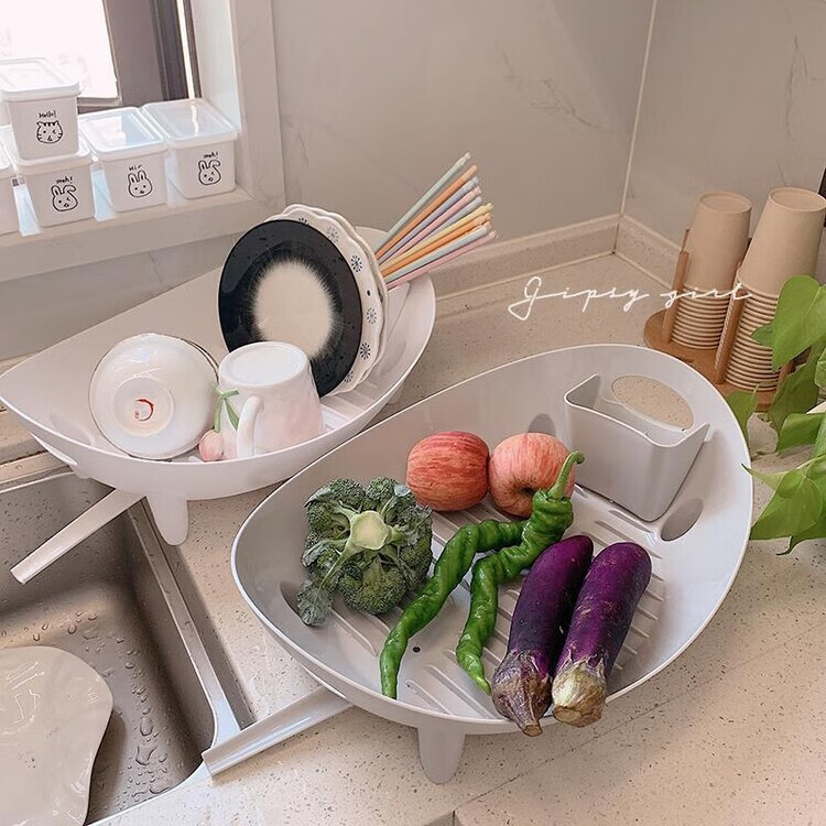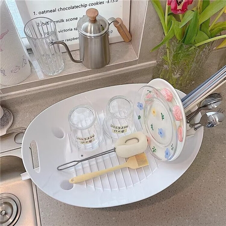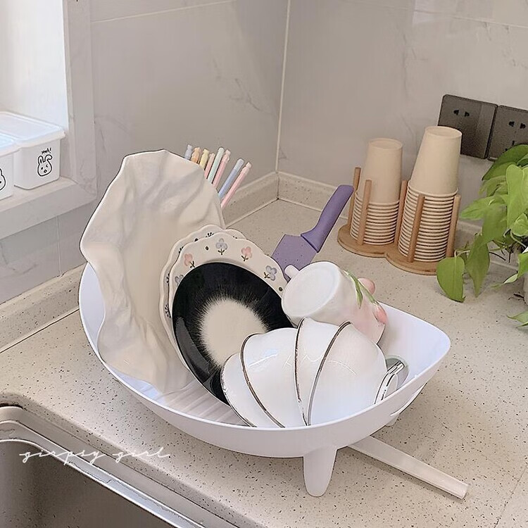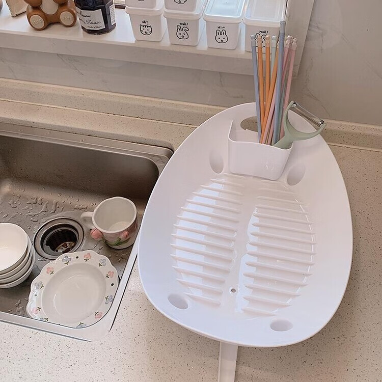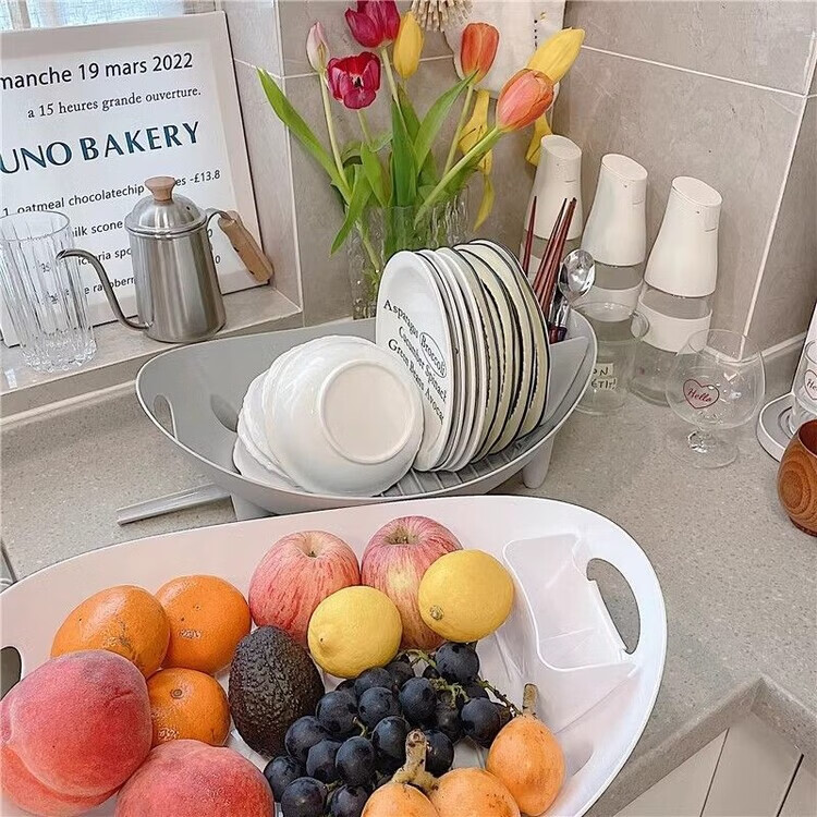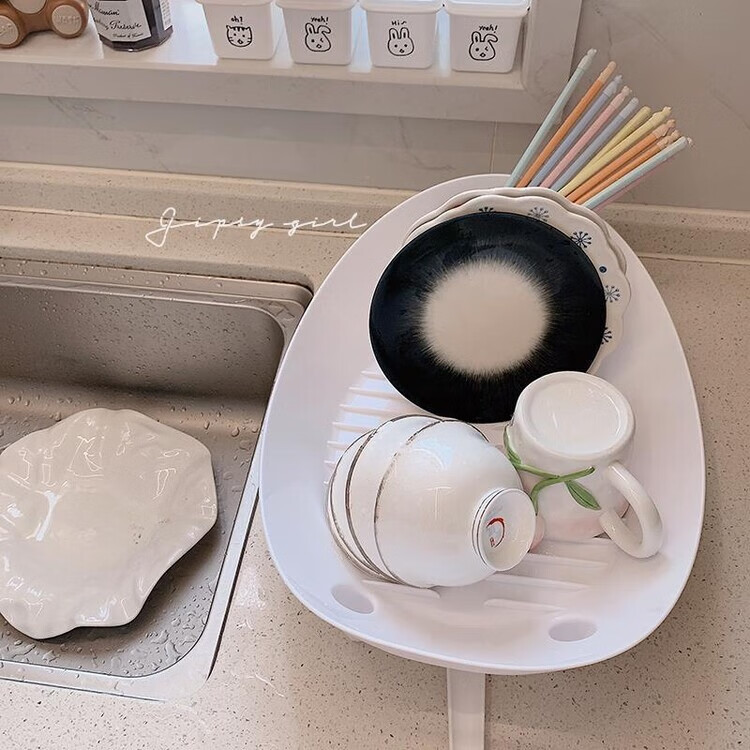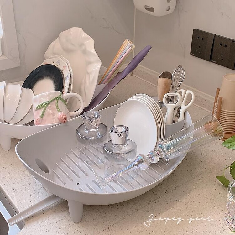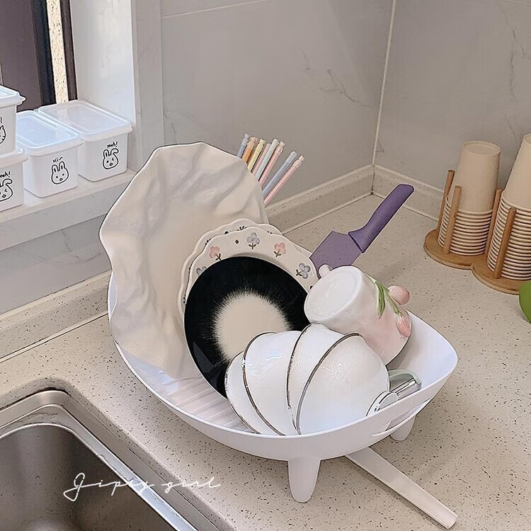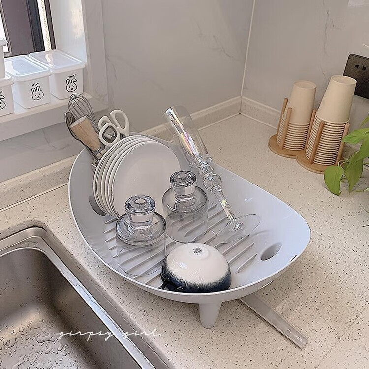 LZJV厨房碗架沥水碗架万能型台式盘碗置物架收纳架碗碟架碗筷滤水架 白色船型碗架