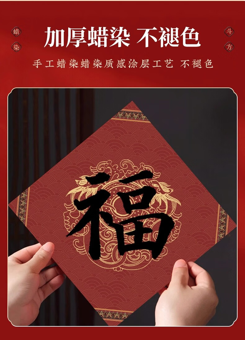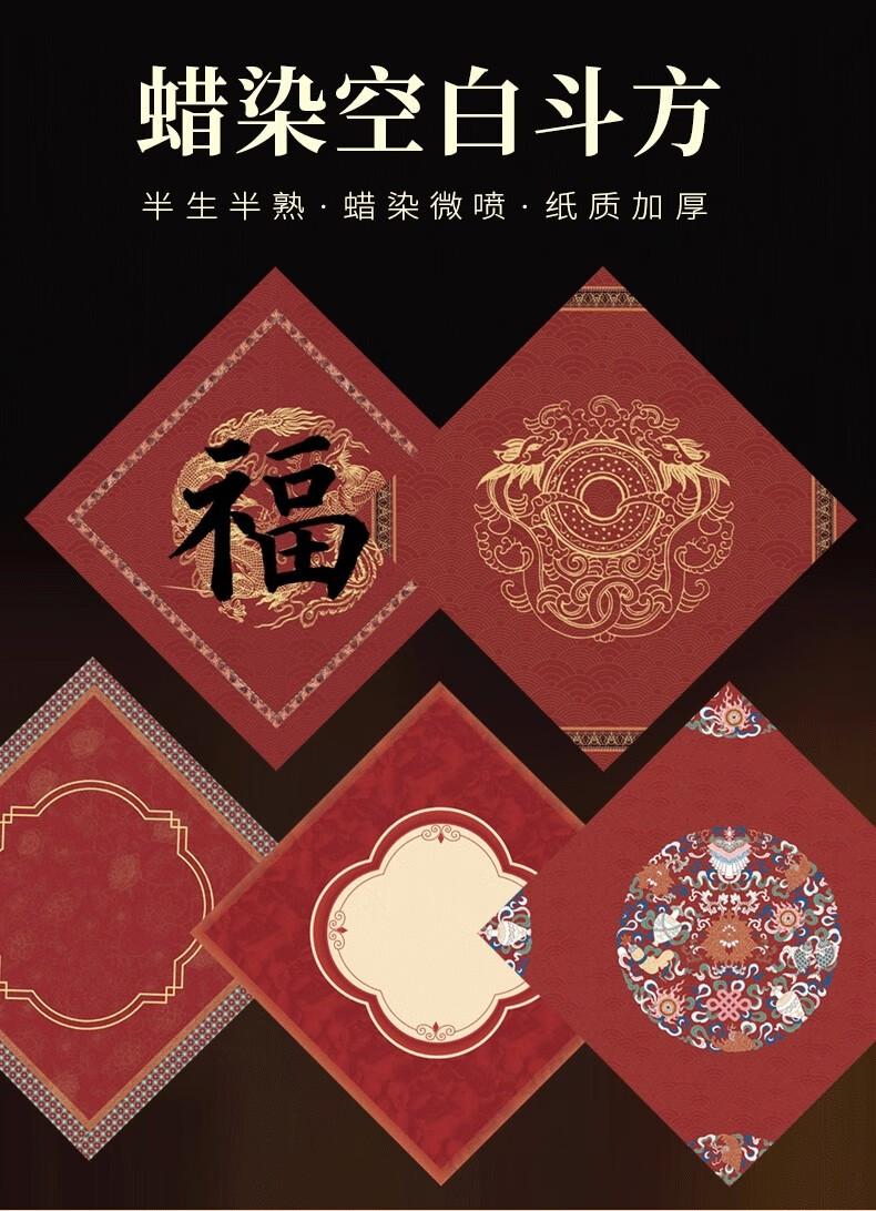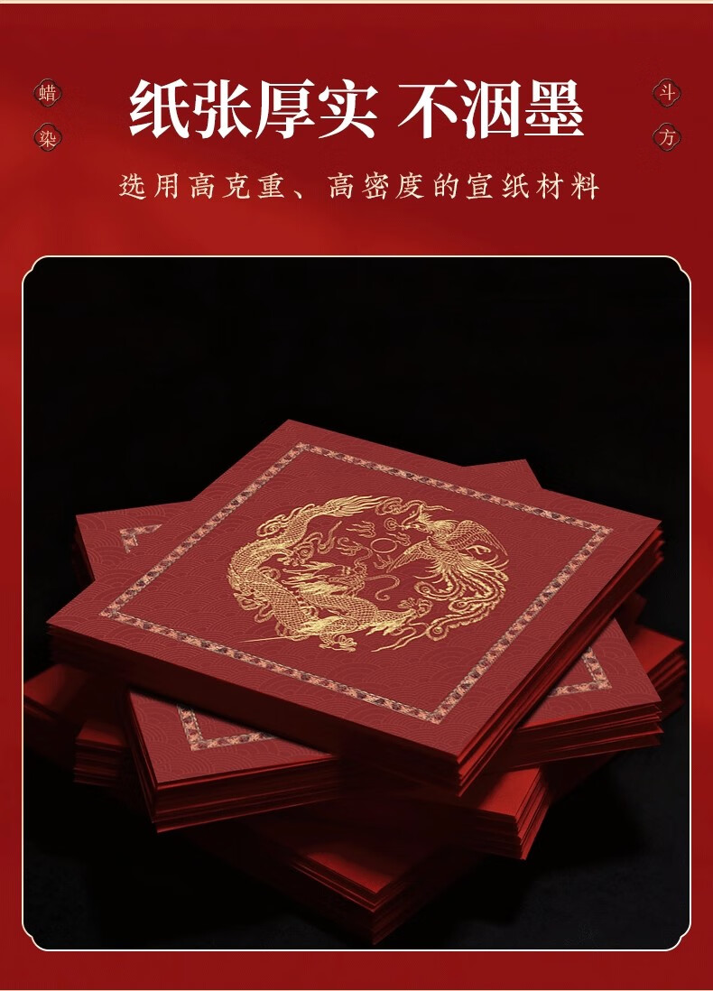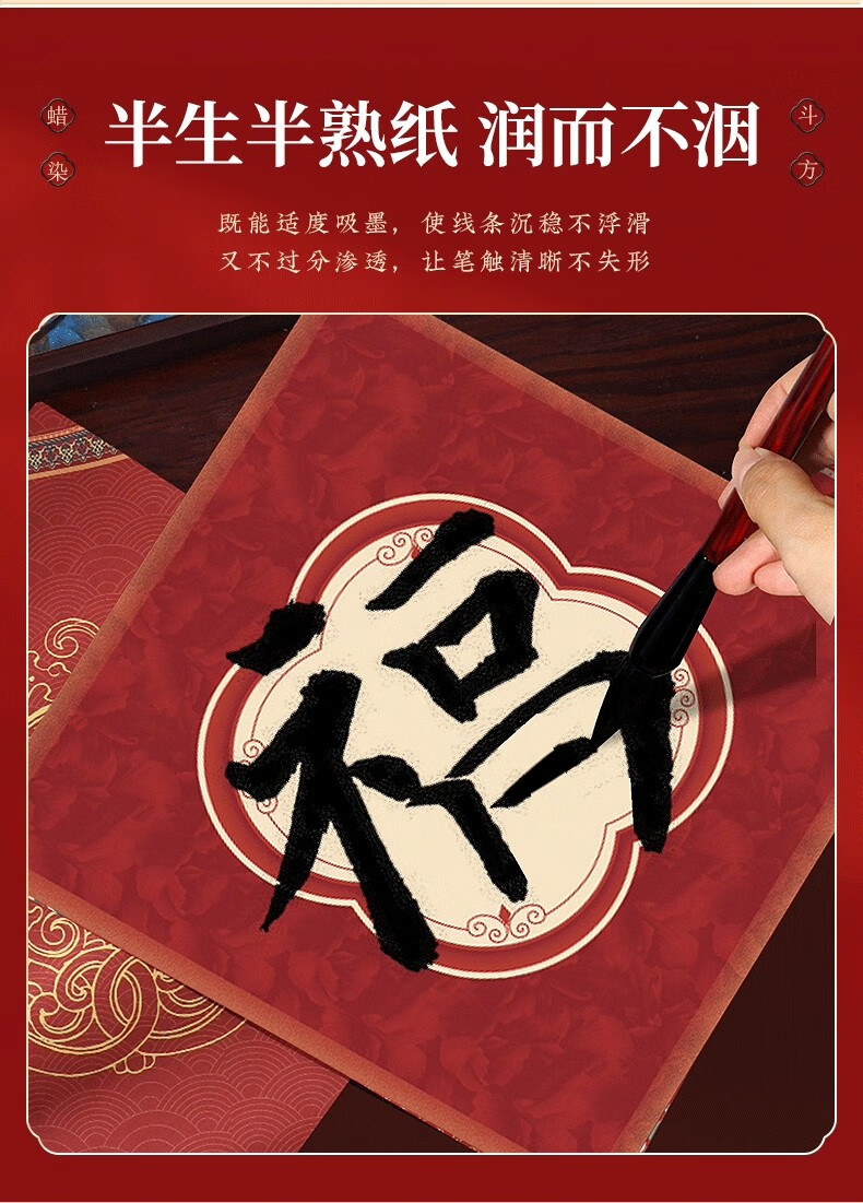 梅林笔庄加厚福字对联专用纸红纸万年红蜡染红宣纸空白写福字的红纸书法福字纸斗方春节红色春联纸方形纸