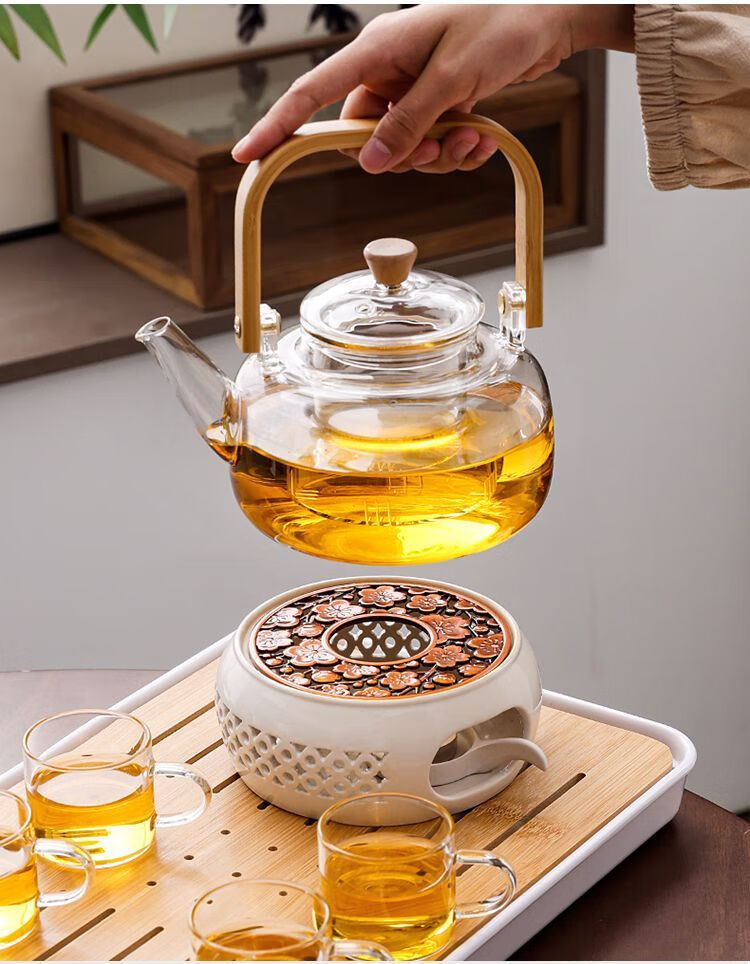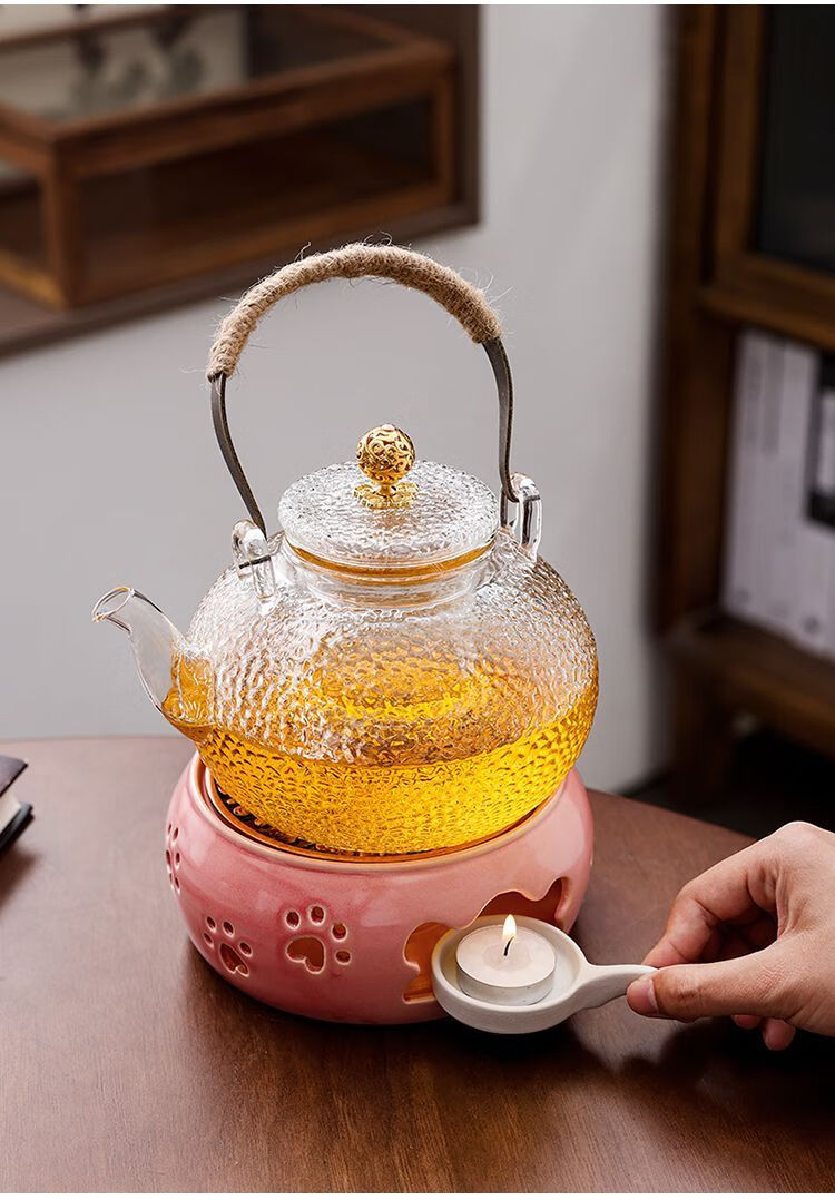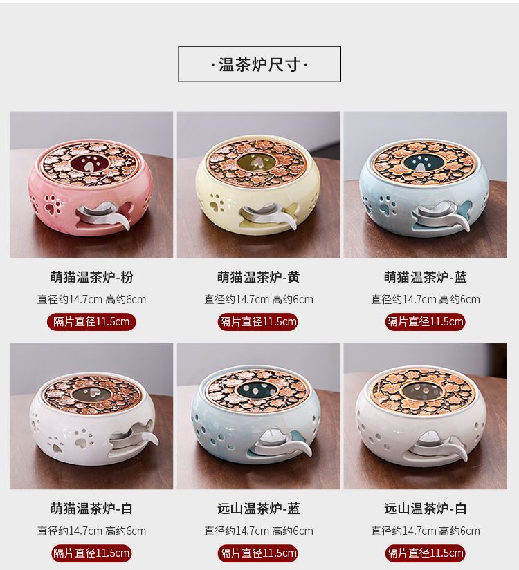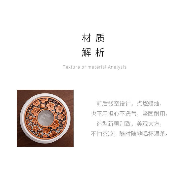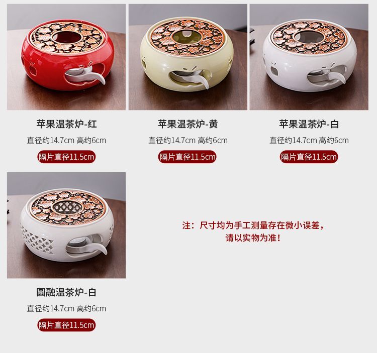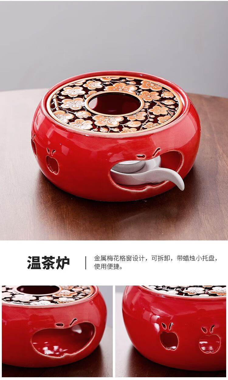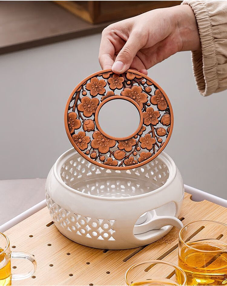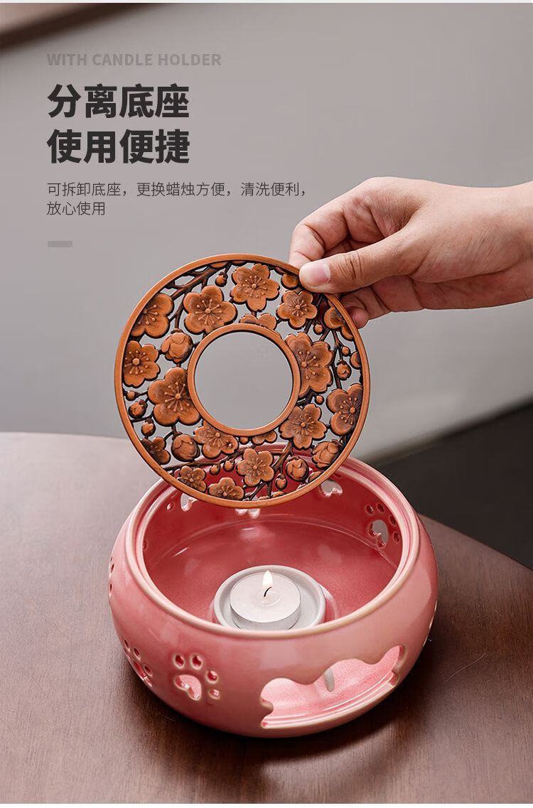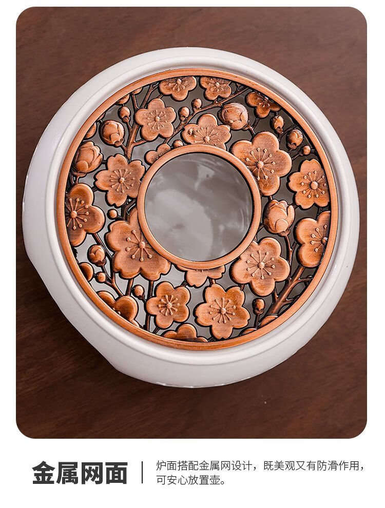 花沐禧暖茶陶瓷煮茶炉酒店餐厅必备半手工玲珑花茶壶蜡烛加热底座 缟羽白玲珑+梅花隔垫-【送烛托+蜡烛10枚】