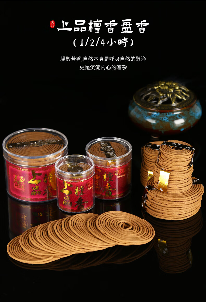 老山檀香12/24小时盘香供佛香藏香家用室内持久礼佛熏香塔香盘香 4小时/48盘 无规格