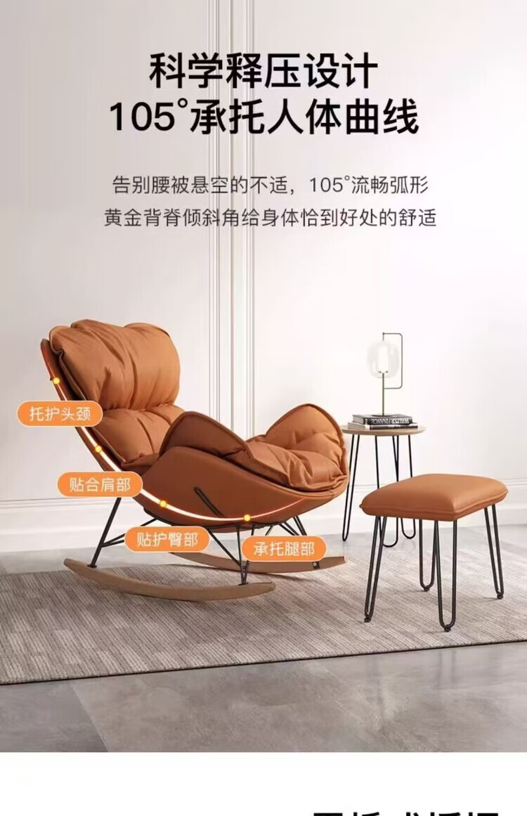 迈途森龙虾摇摇网红懒人沙发睡觉休闲客厅躺椅家用成人摇椅阳台单人逍遥 深灰色 进口科技布【升级款+脚踏】