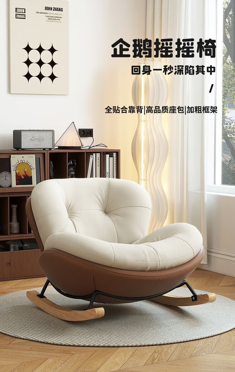 倘然之家蜗牛椅中古风摇摇椅躺椅家用客厅懒人沙发椅成人阳台单人休 【加厚款】米白拼咖色【亲肤绒布】