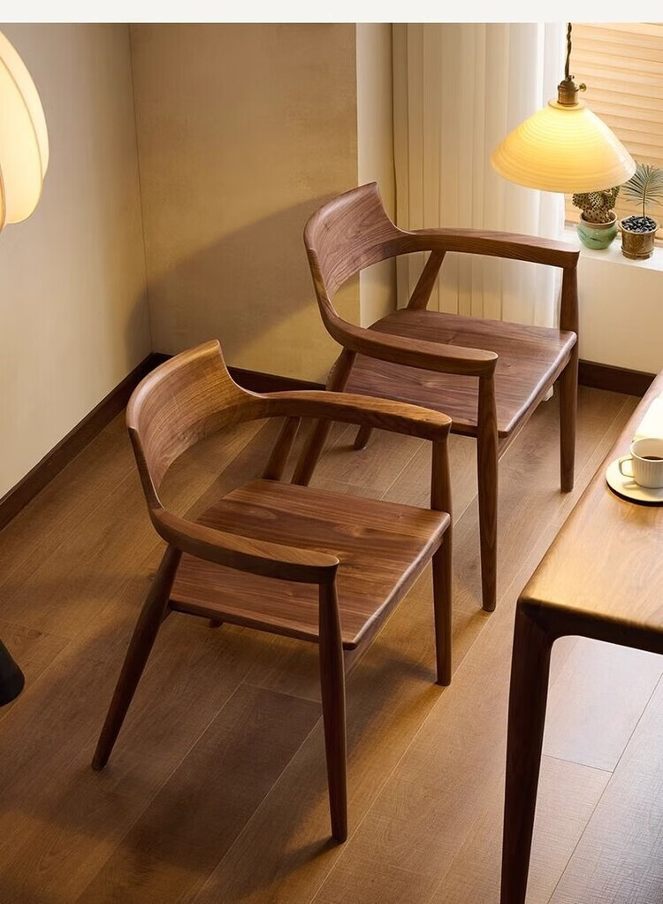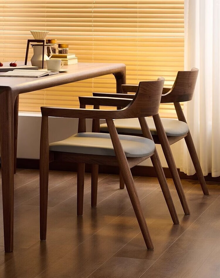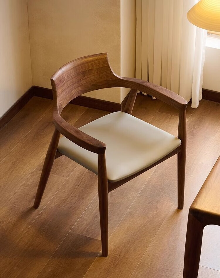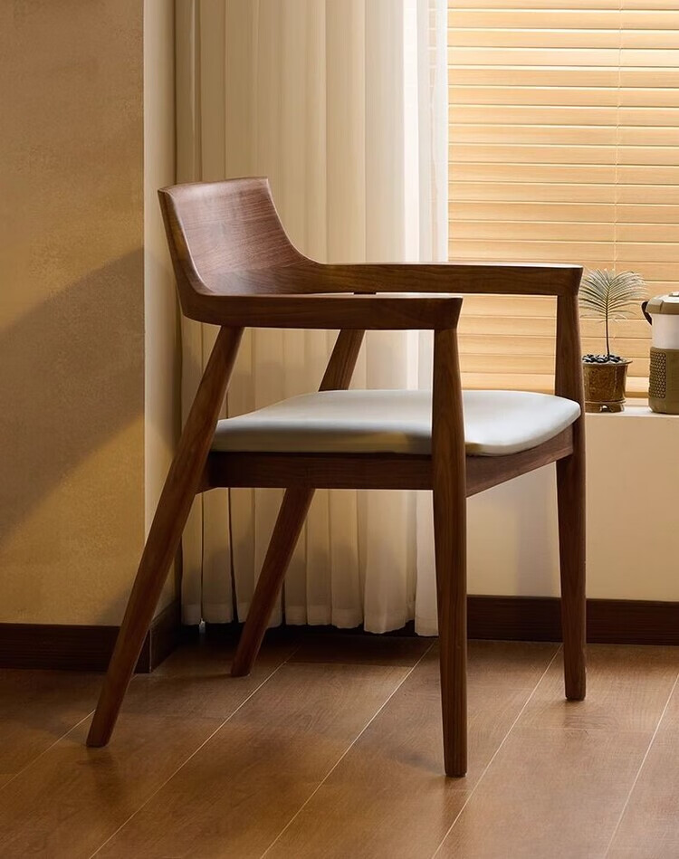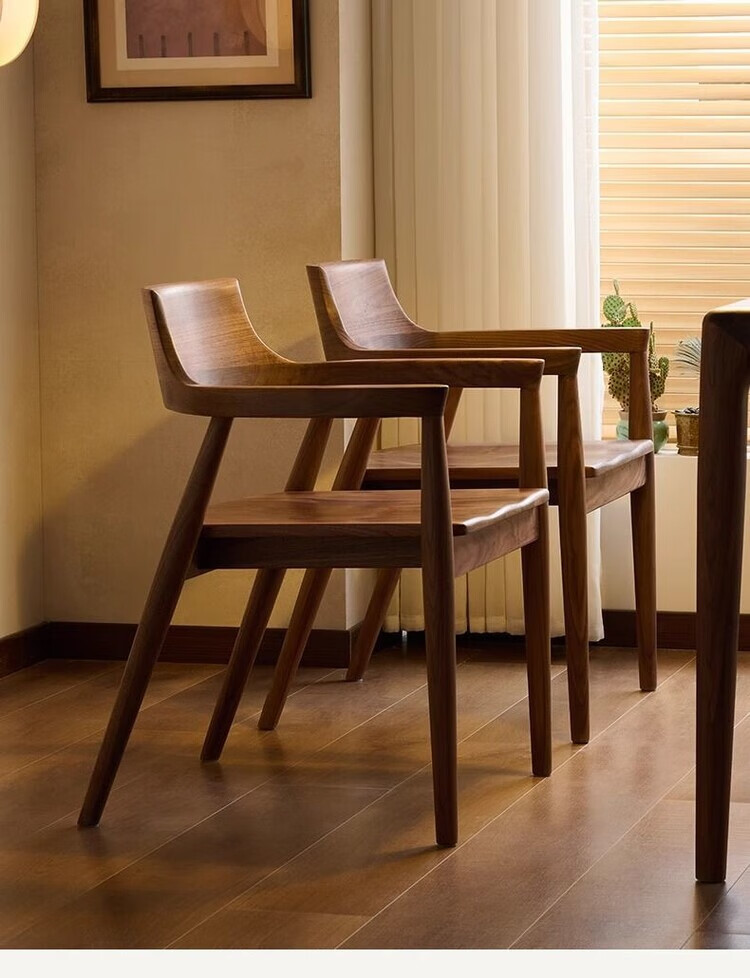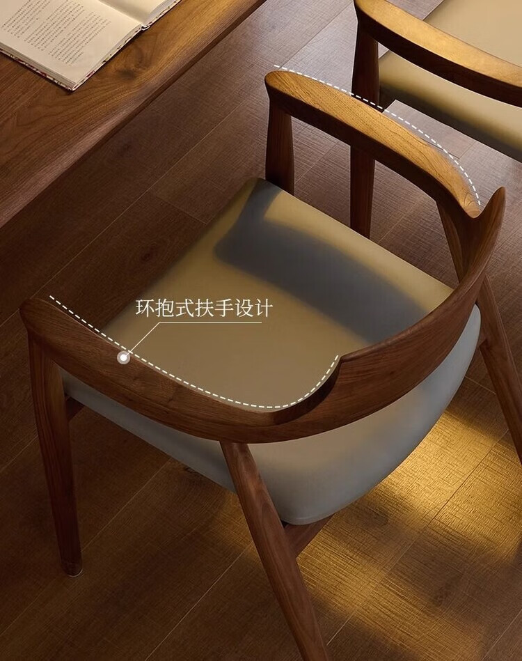 弘星隆北欧实木餐椅肯尼迪总统椅广岛椅白蜡木餐厅会议洽谈椅简约靠背椅 胡桃色【黑色PU坐垫】 实木 一把【纯实木打造 送货上门】