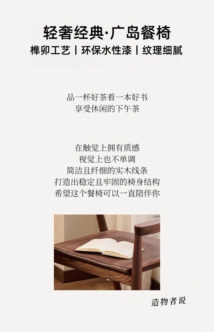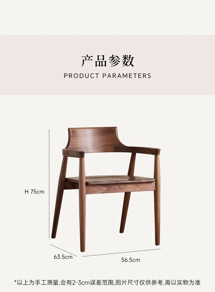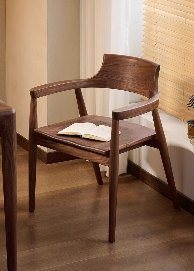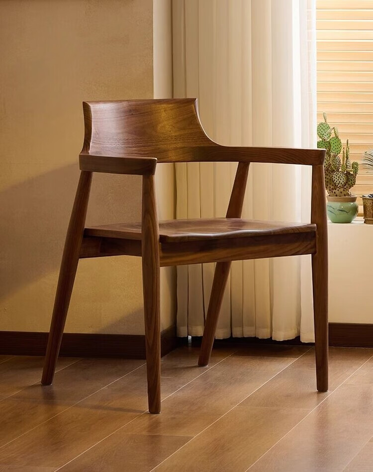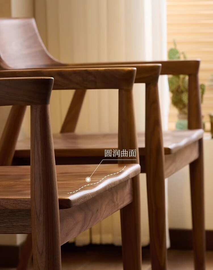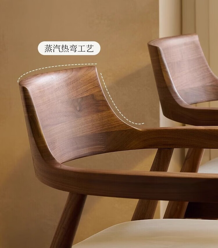 弘星隆北欧实木餐椅肯尼迪总统椅广岛椅白蜡木餐厅会议洽谈椅简约靠背椅 胡桃色【黑色PU坐垫】 实木 一把【纯实木打造 送货上门】