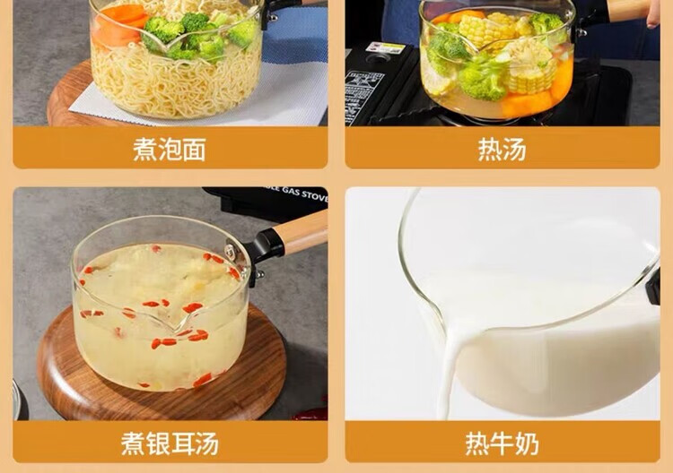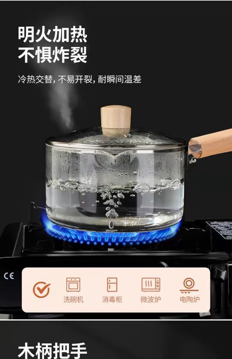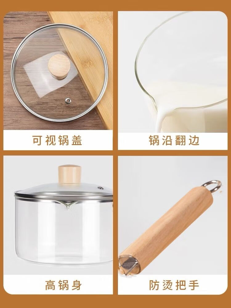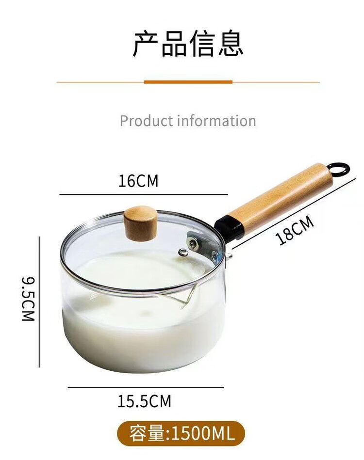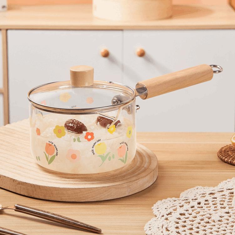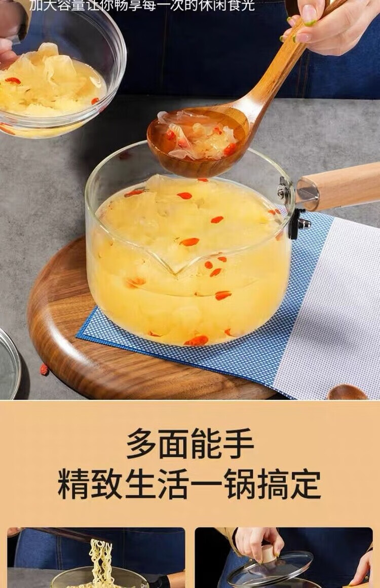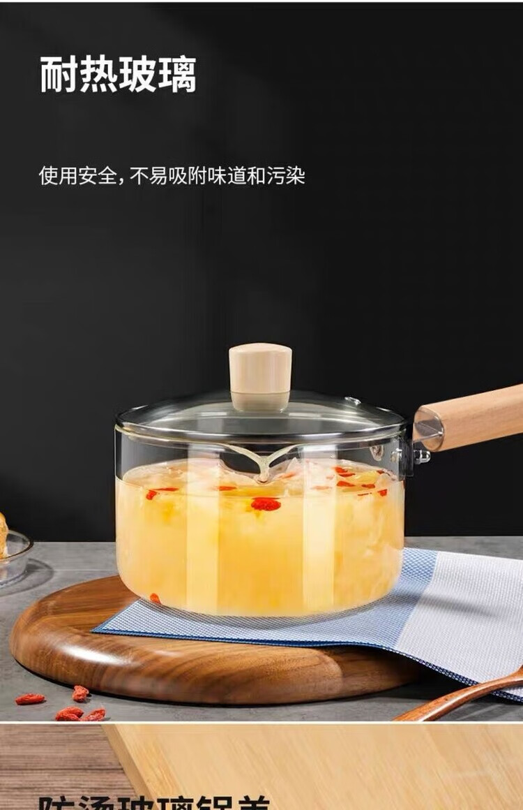 简漾高硼硅玻璃锅耐热耐高温汤锅明火电陶炉米粥可用家用奶锅辅食锅 郁金香款辅食奶锅1500ML 1cm