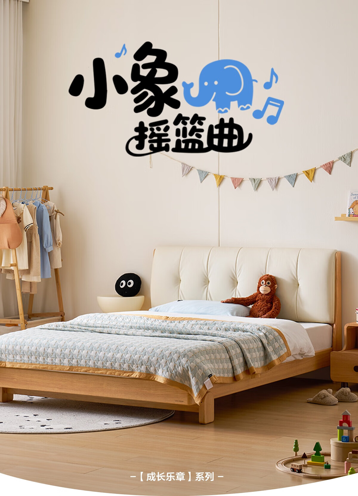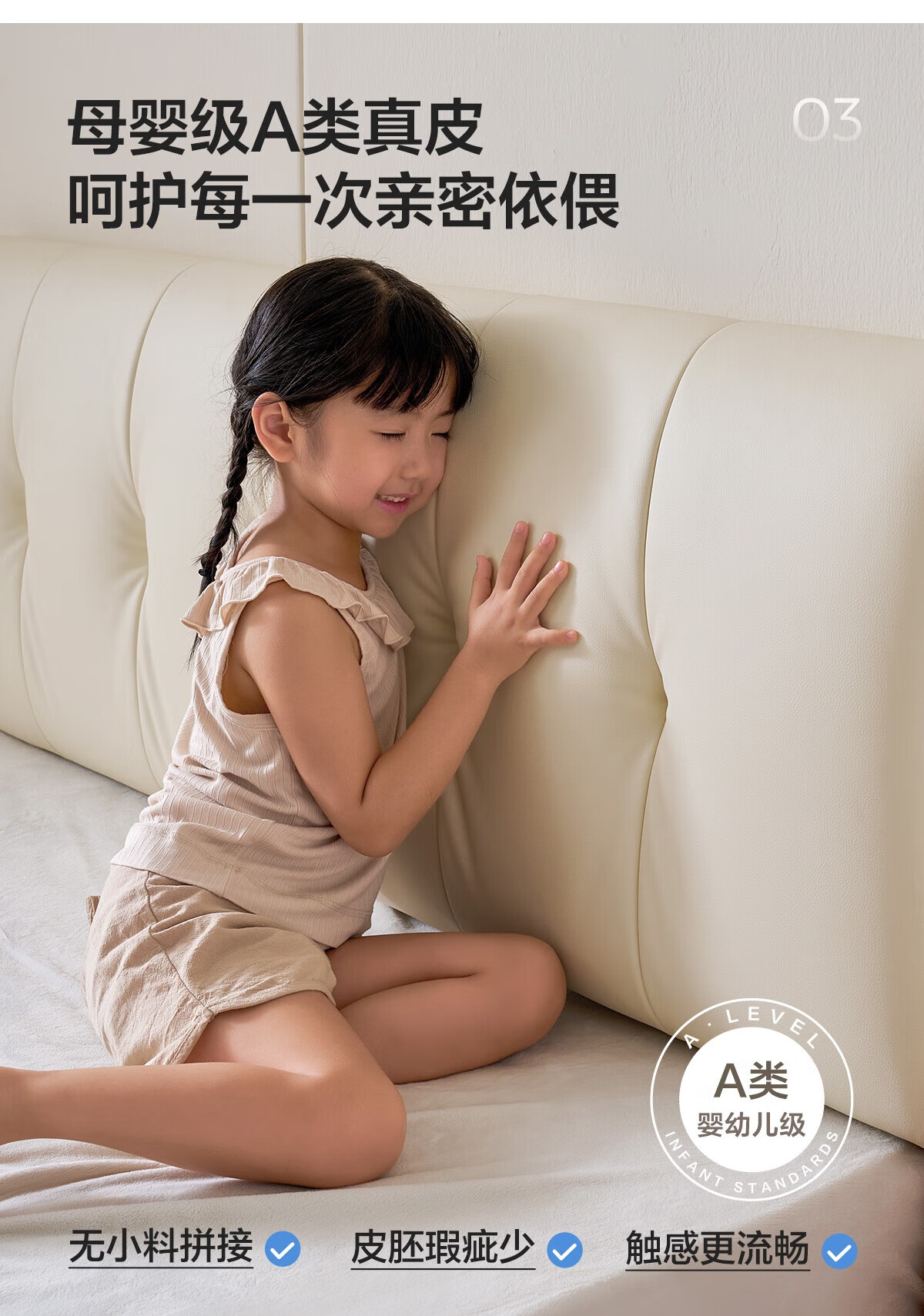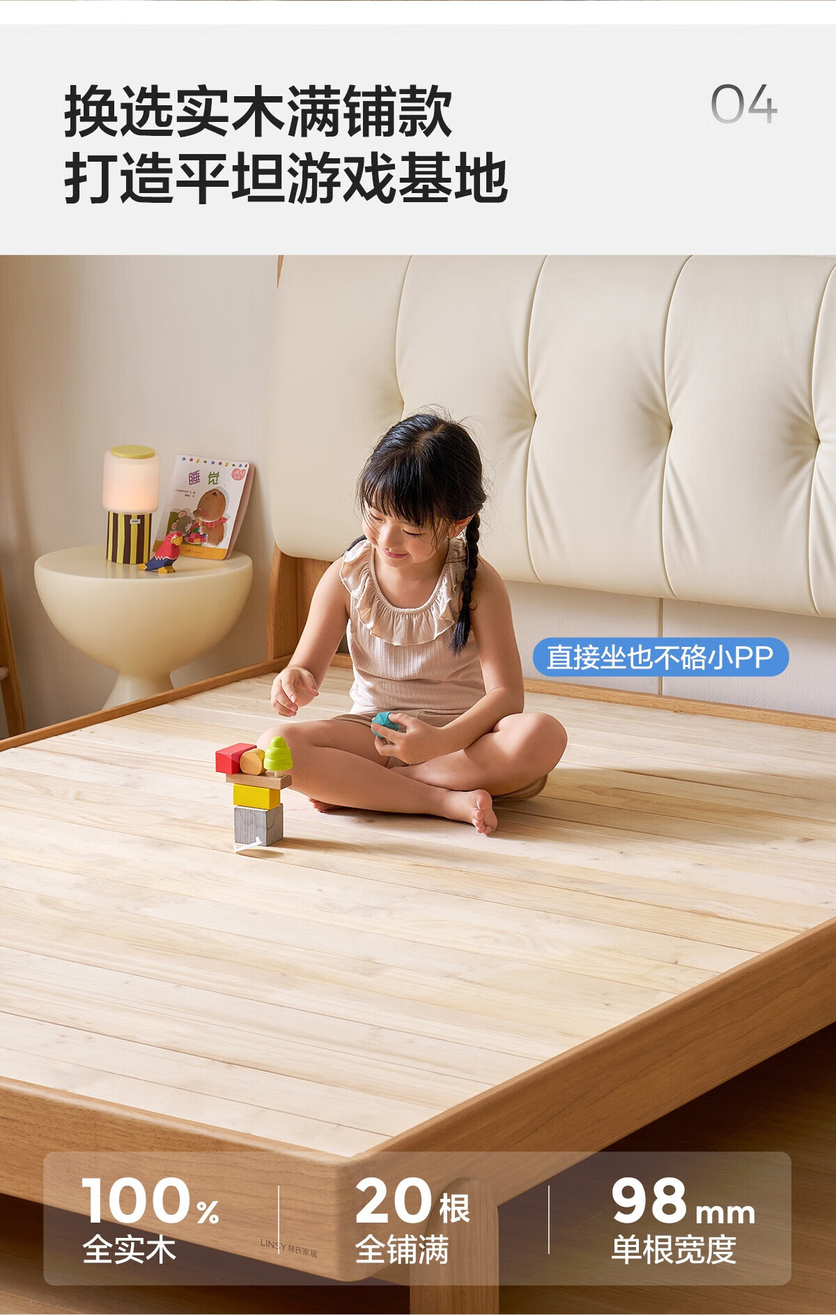 LINSY KIDS儿童床全实木男孩女孩卧室床1米5单人床公主床2025新款SD9A 【头层牛皮|排骨架】儿童床 1.2x2米