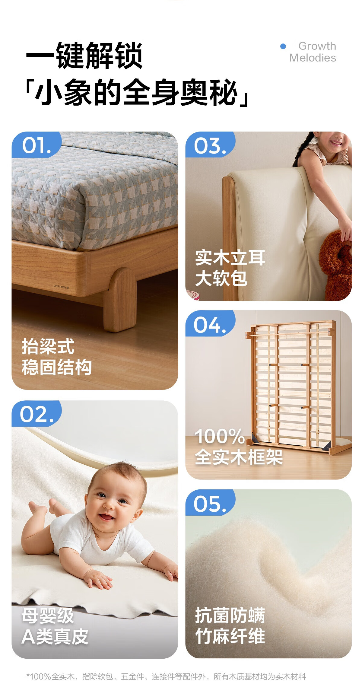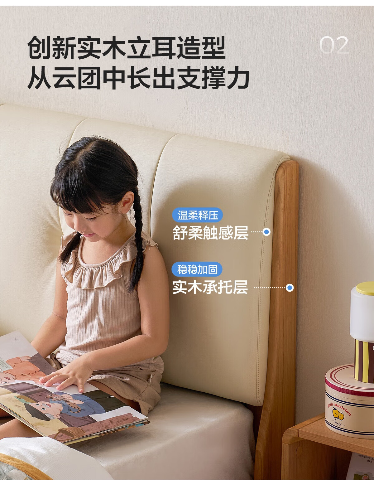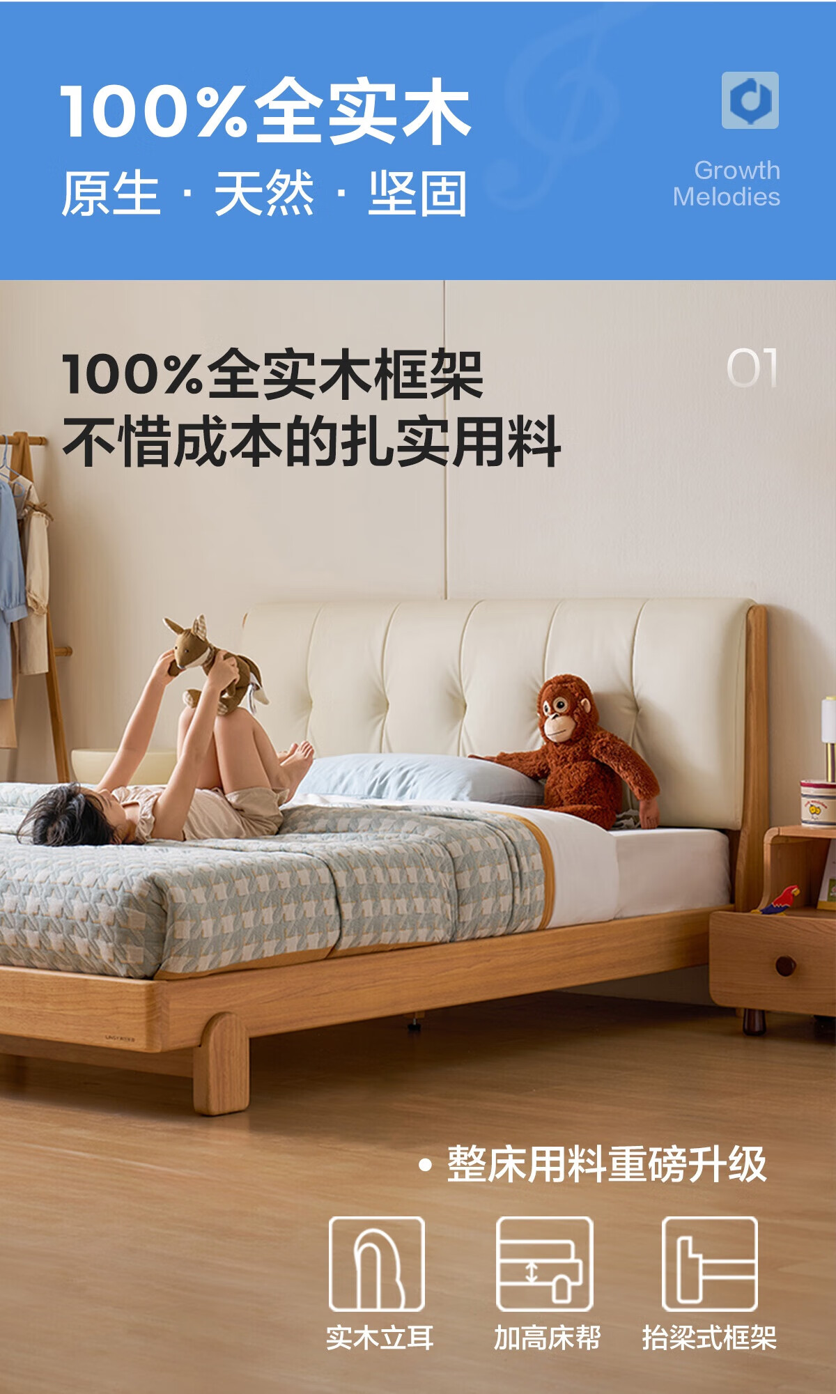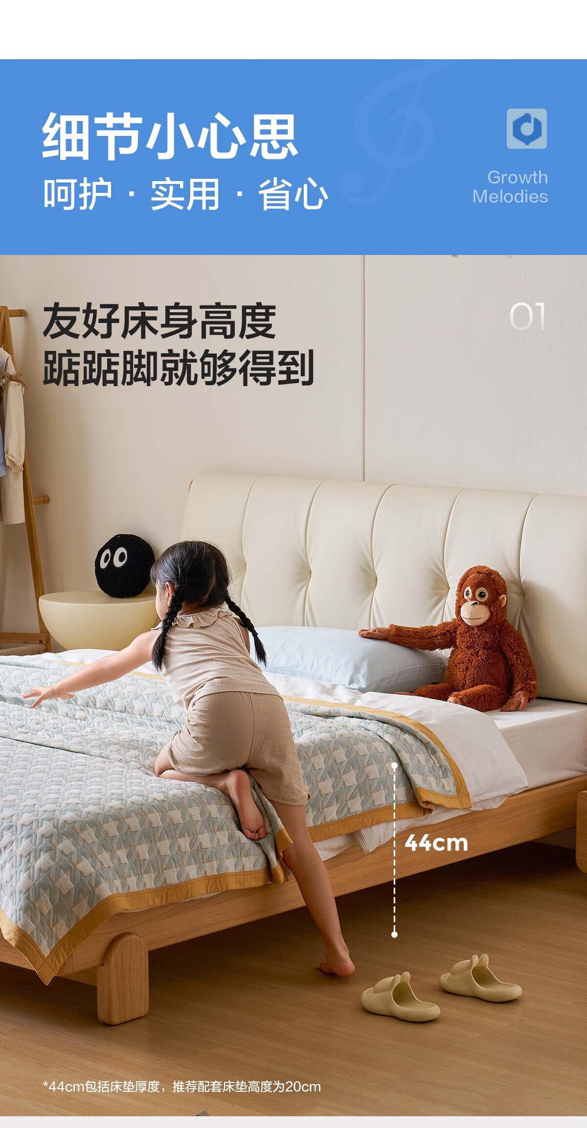 LINSY KIDS儿童床全实木男孩女孩卧室床1米5单人床公主床2025新款SD9A 【头层牛皮|排骨架】儿童床 1.2x2米