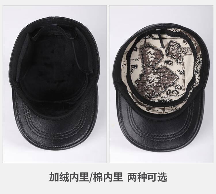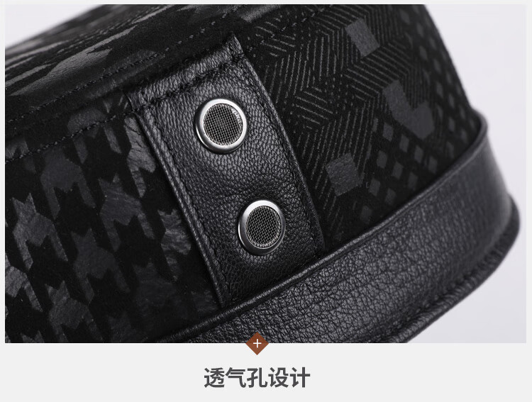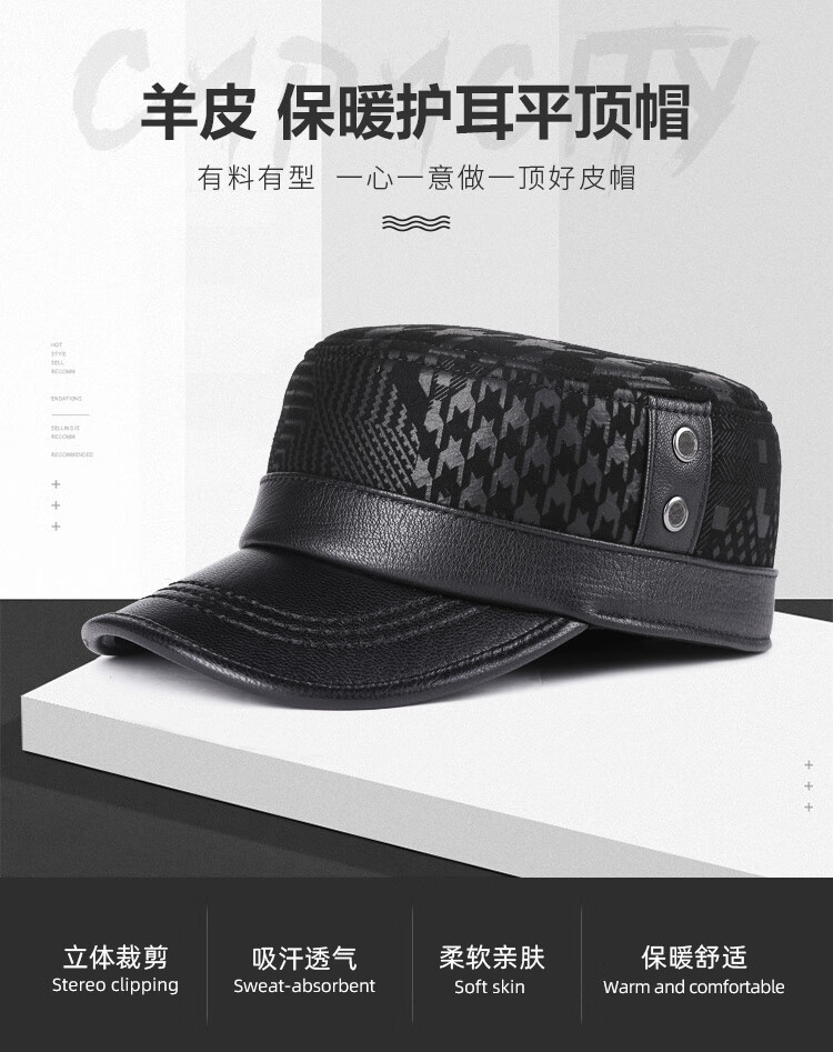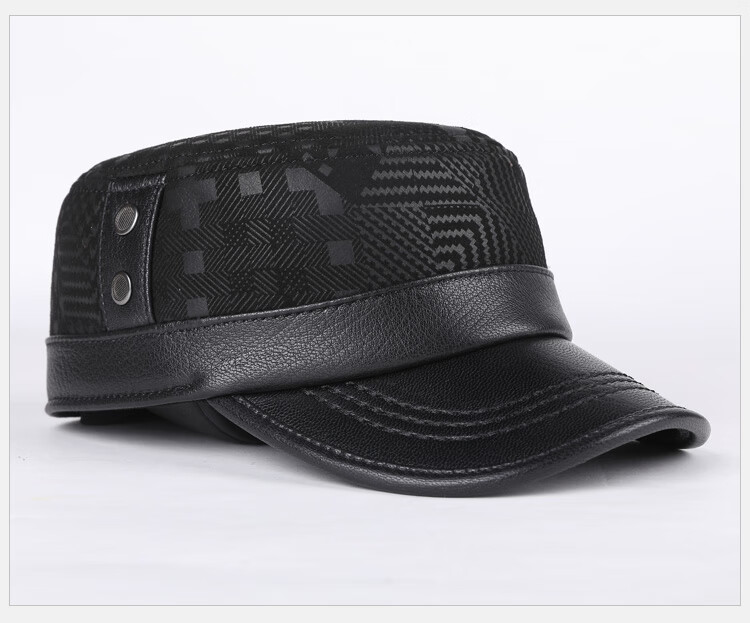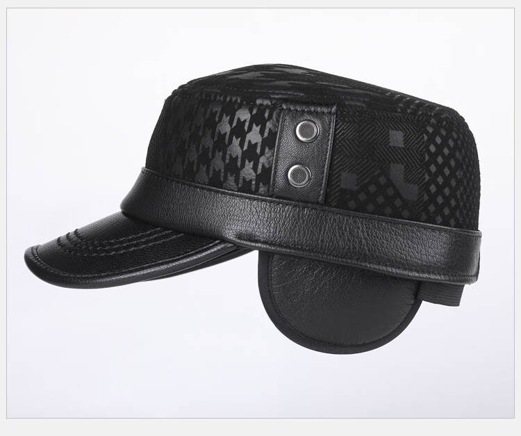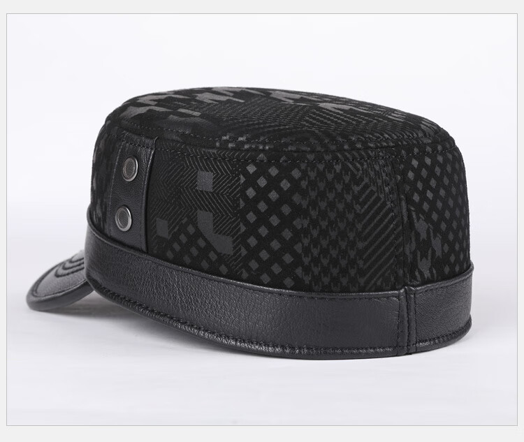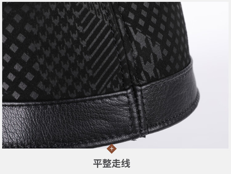 吉普(JEEP)美式高端中老年秋冬季真皮帽子男羊皮印花全封口平顶帽休闲鸭舌帽 黑色【无护耳】 L【适合55-56cm】