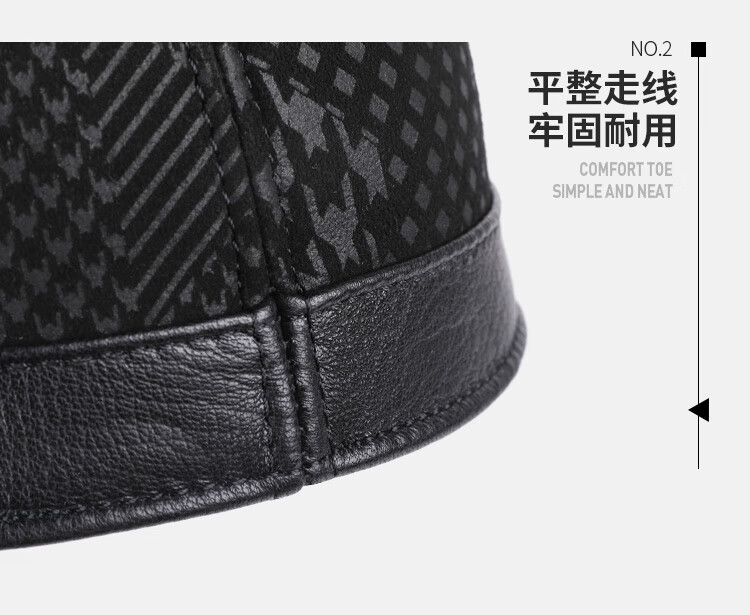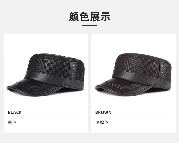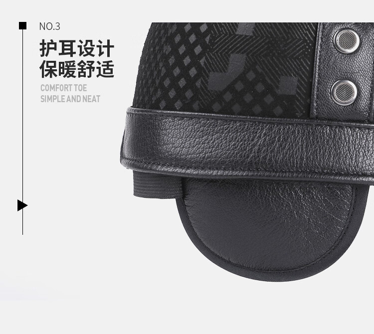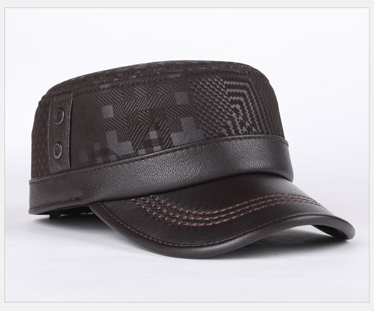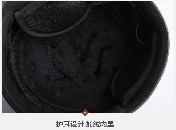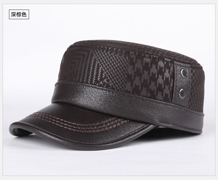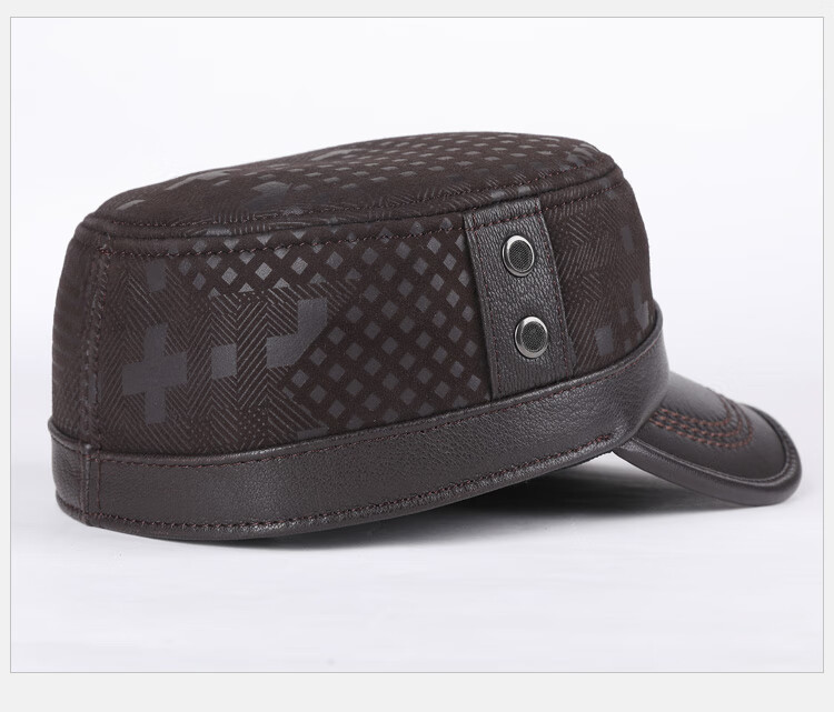 吉普(JEEP)美式高端中老年秋冬季真皮帽子男羊皮印花全封口平顶帽休闲鸭舌帽 黑色【无护耳】 L【适合55-56cm】