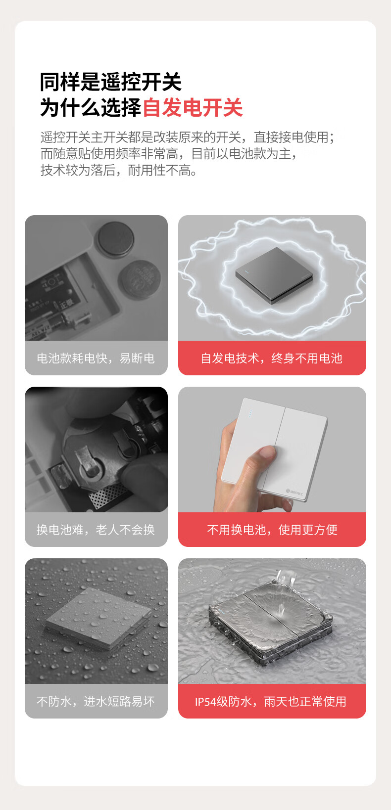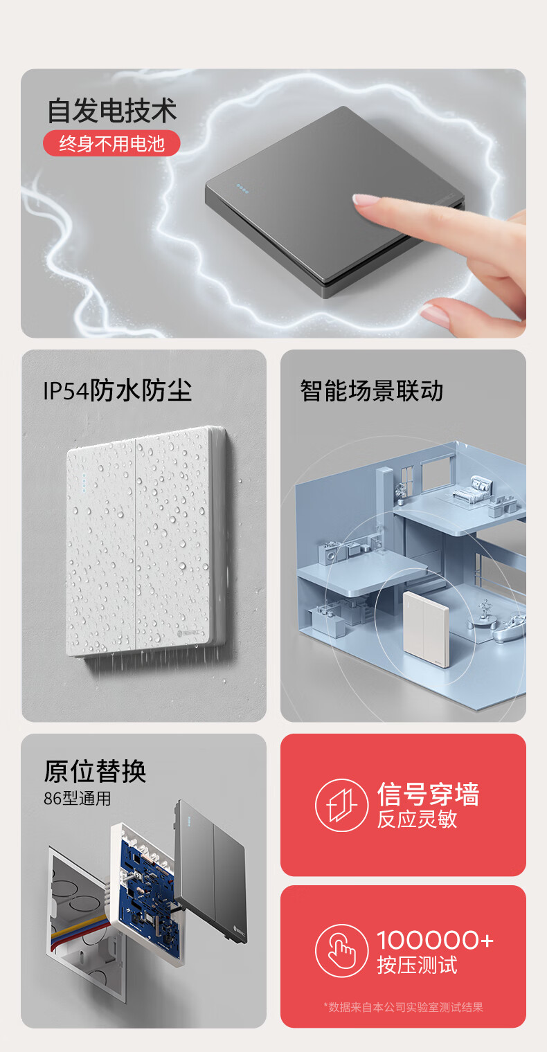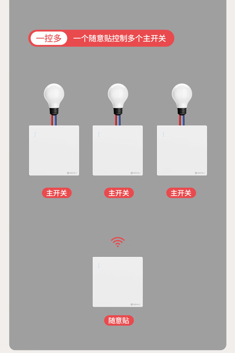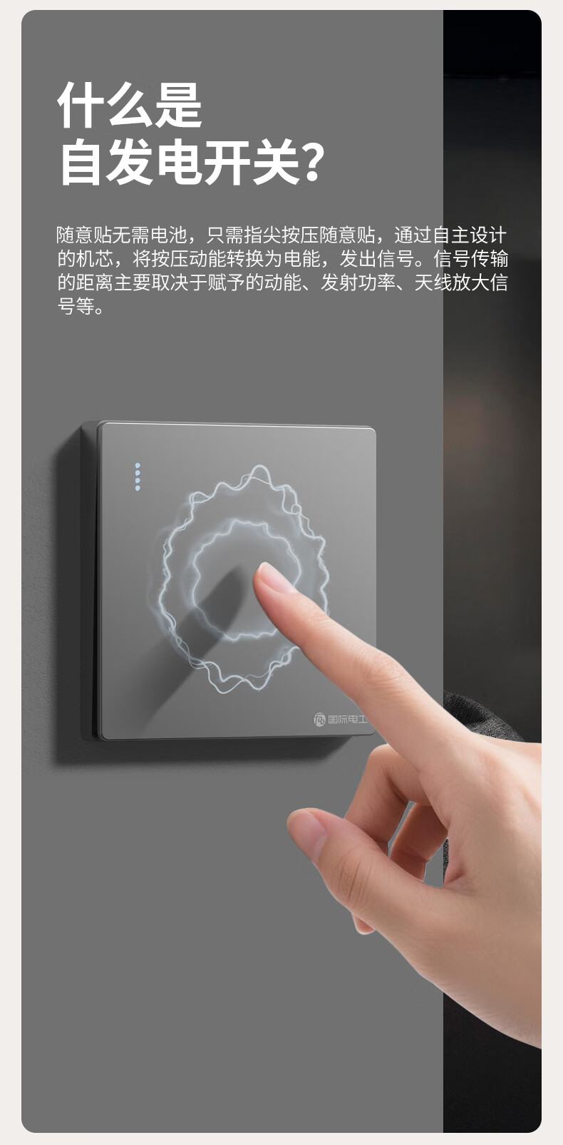 国际电工自发电不用电池遥控免布线随意贴子母开关双控防水220V家用卧室 【灰色三开】1个主开关+1个自发电随意贴