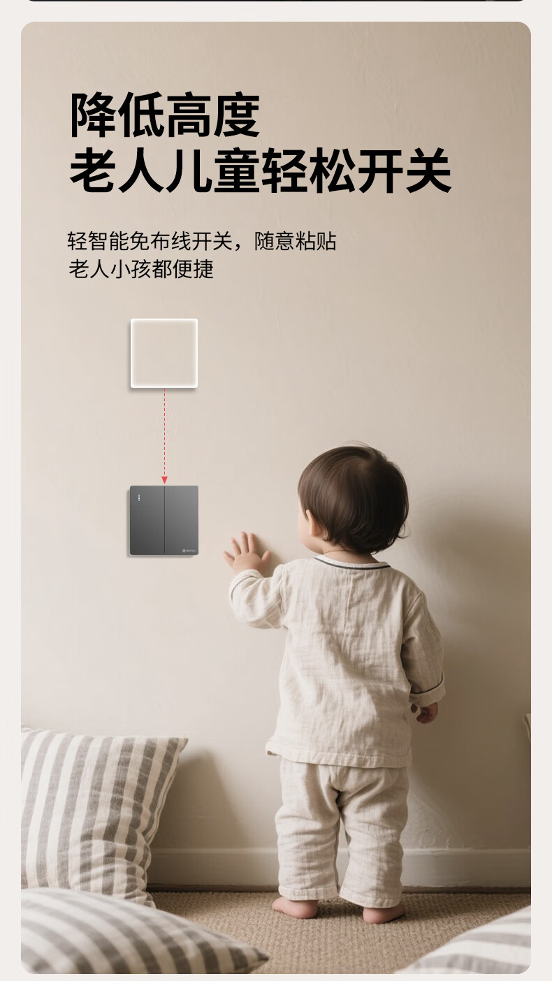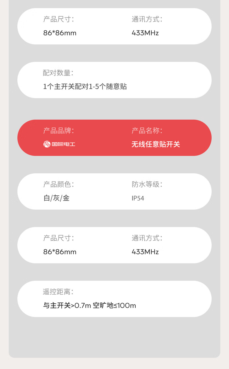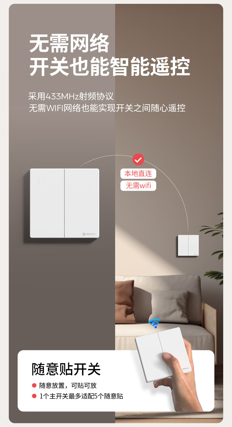 国际电工自发电不用电池遥控免布线随意贴子母开关双控防水220V家用卧室 【灰色三开】1个主开关+1个自发电随意贴