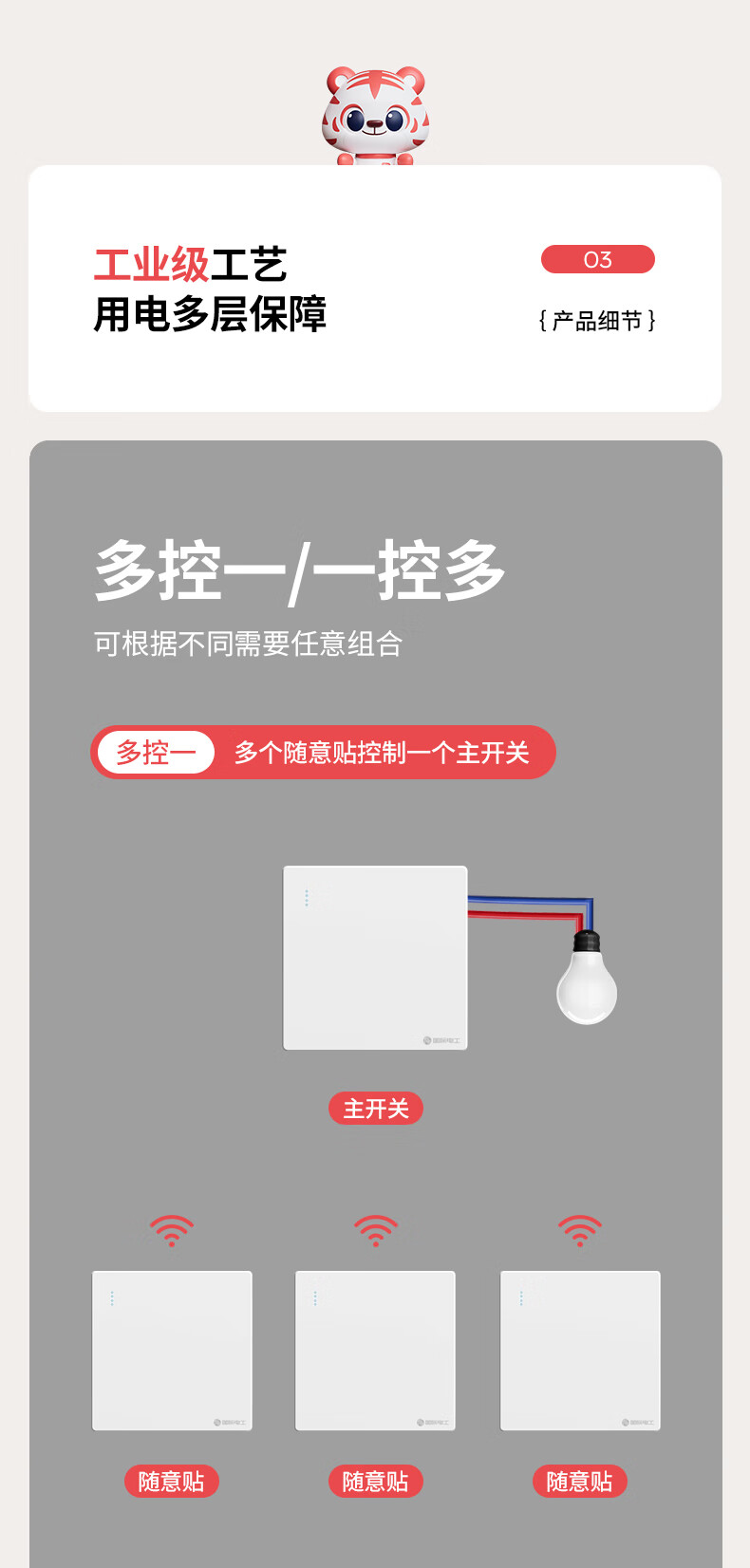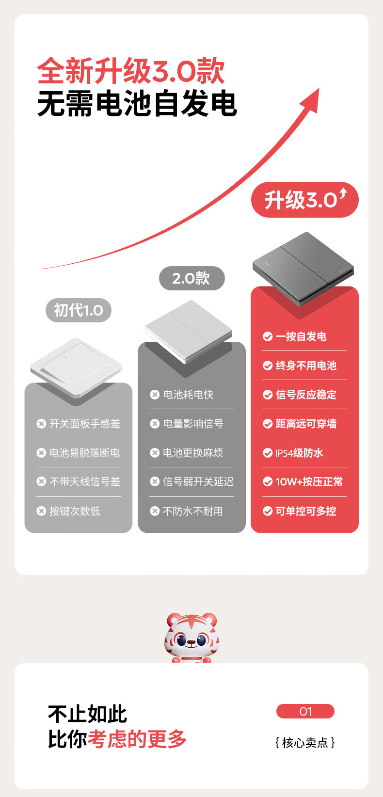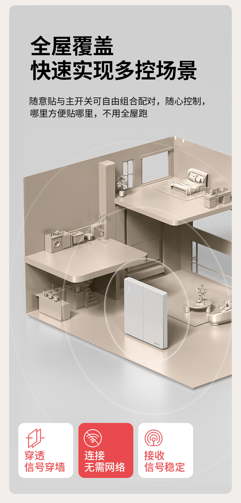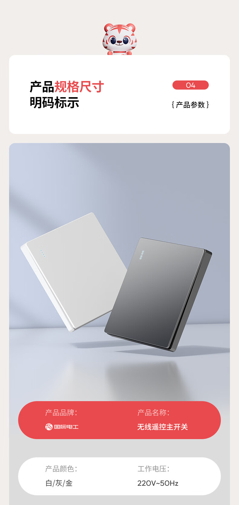 国际电工自发电不用电池遥控免布线随意贴子母开关双控防水220V家用卧室 【灰色三开】1个主开关+1个自发电随意贴