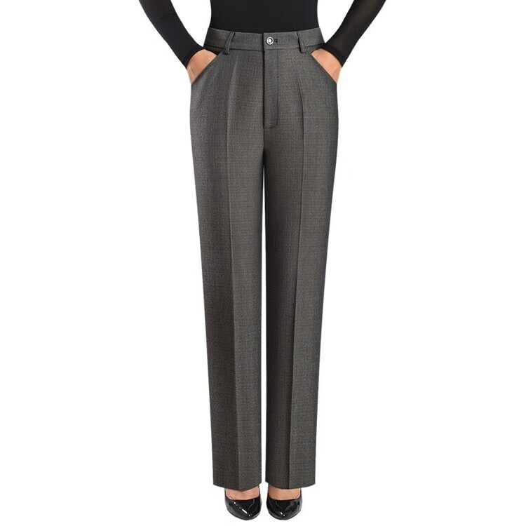 伊玟格格春秋新款中老年女裤高腰妈妈裤直筒中年女士西裤百搭长裤 褐色 菠萝纹春秋冬款 5XL 2尺9腰围35码(155斤以下穿)