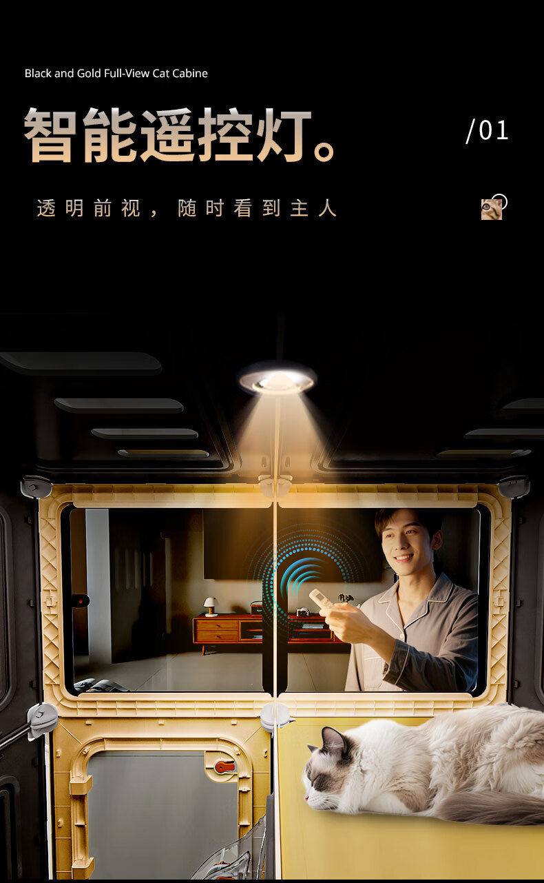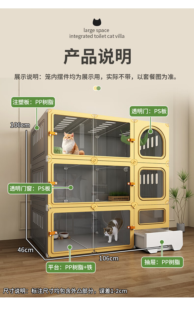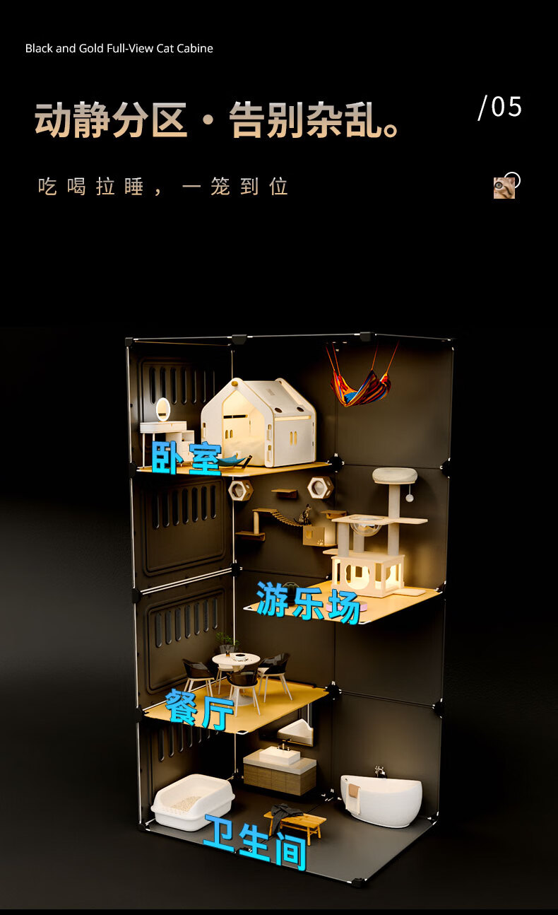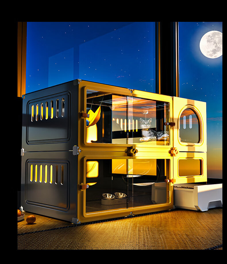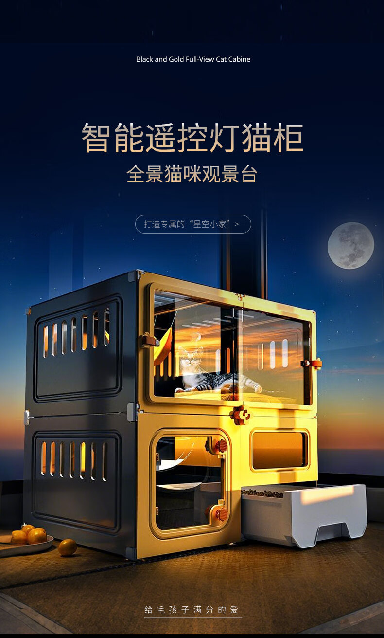 蔻丝猫别墅带遥控灯厕所一体超大空间猫笼子家用室内猫窝一室一卫屋舍