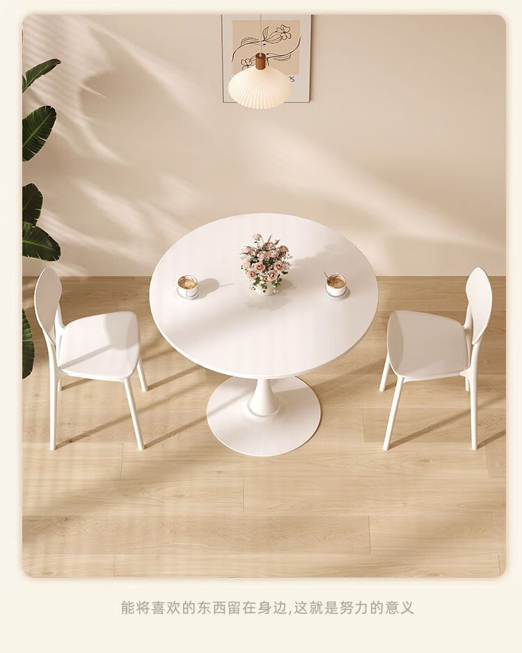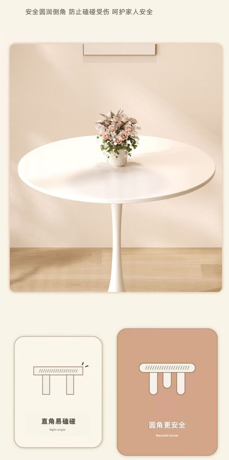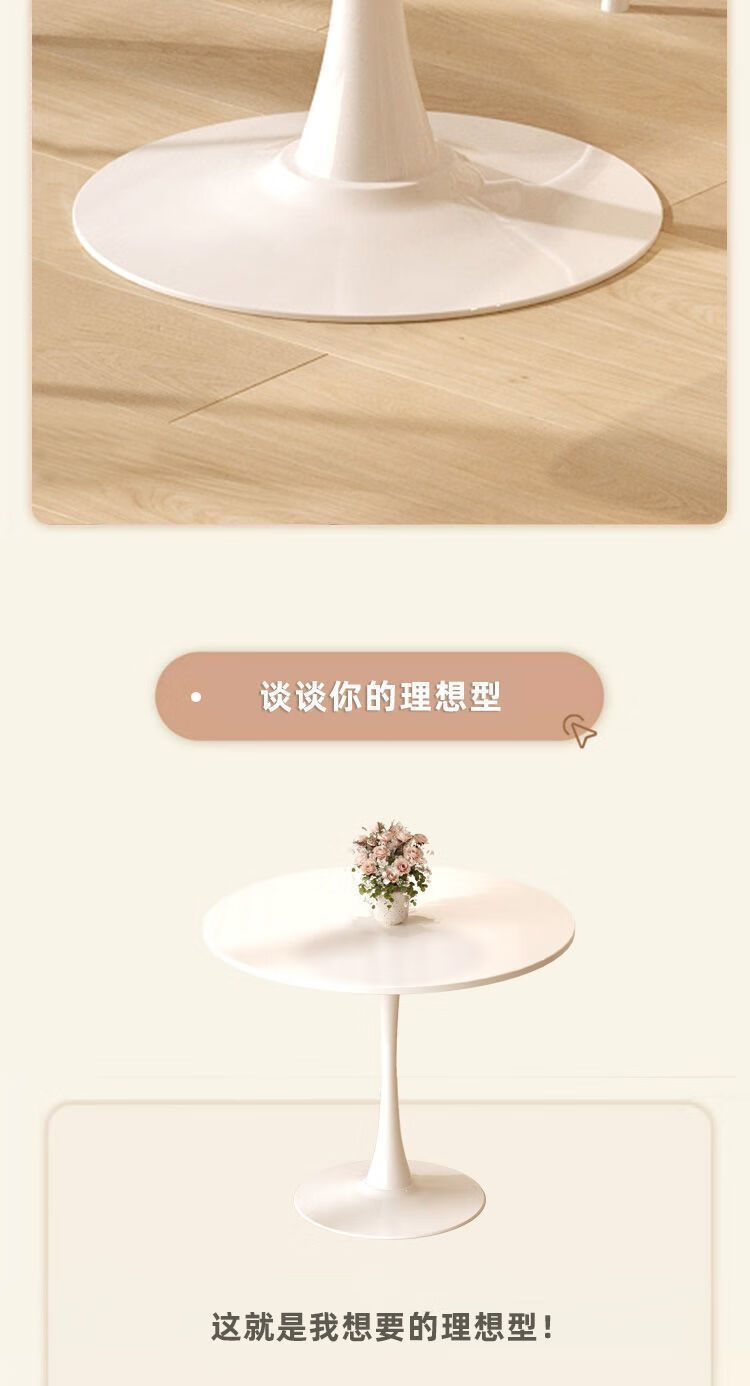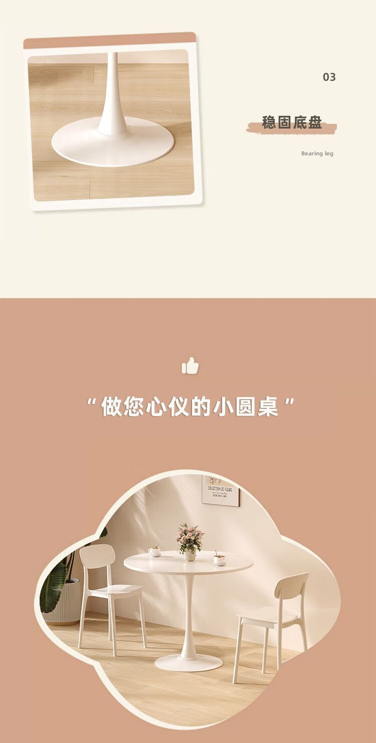 弘星隆网红白色北欧风ins小圆形洽谈桌奶茶咖啡店桌椅组合郁金香餐饭桌 白色单桌 73x60x49cm