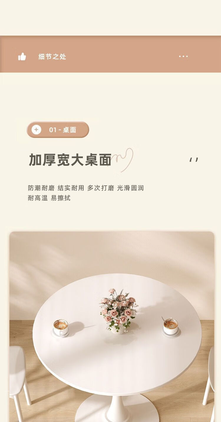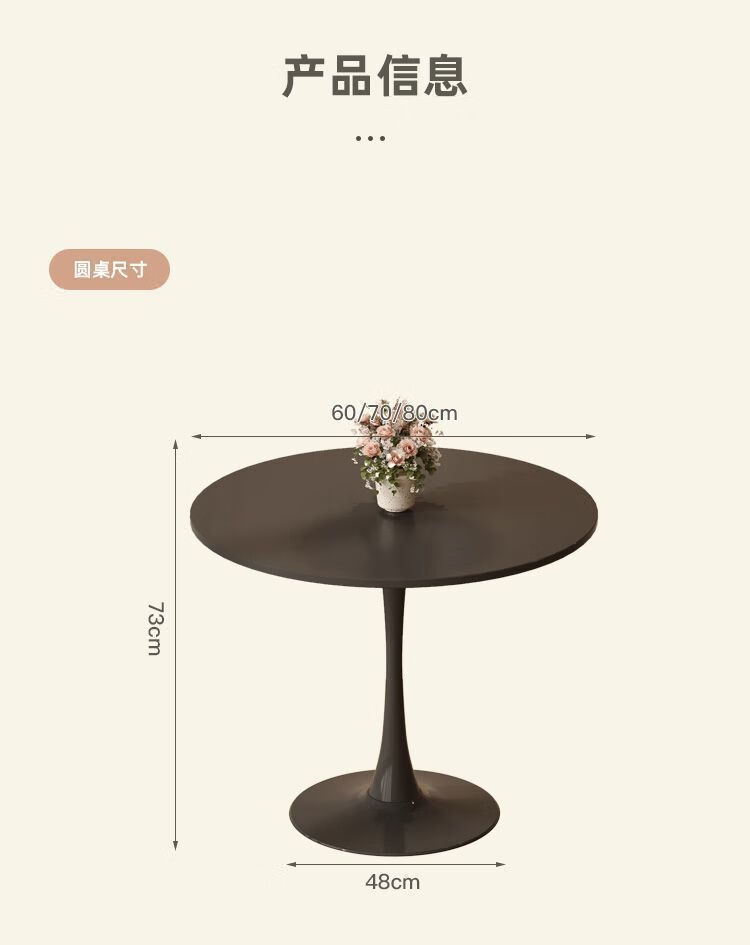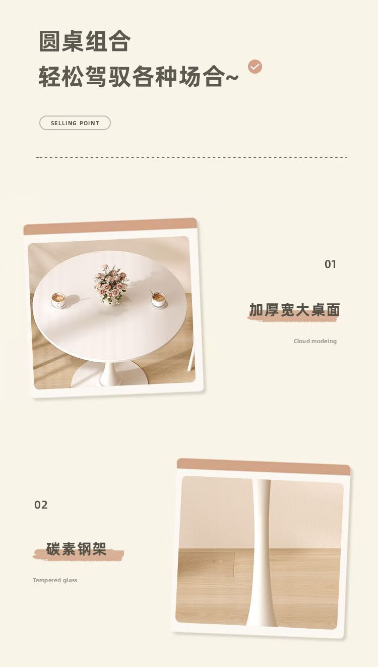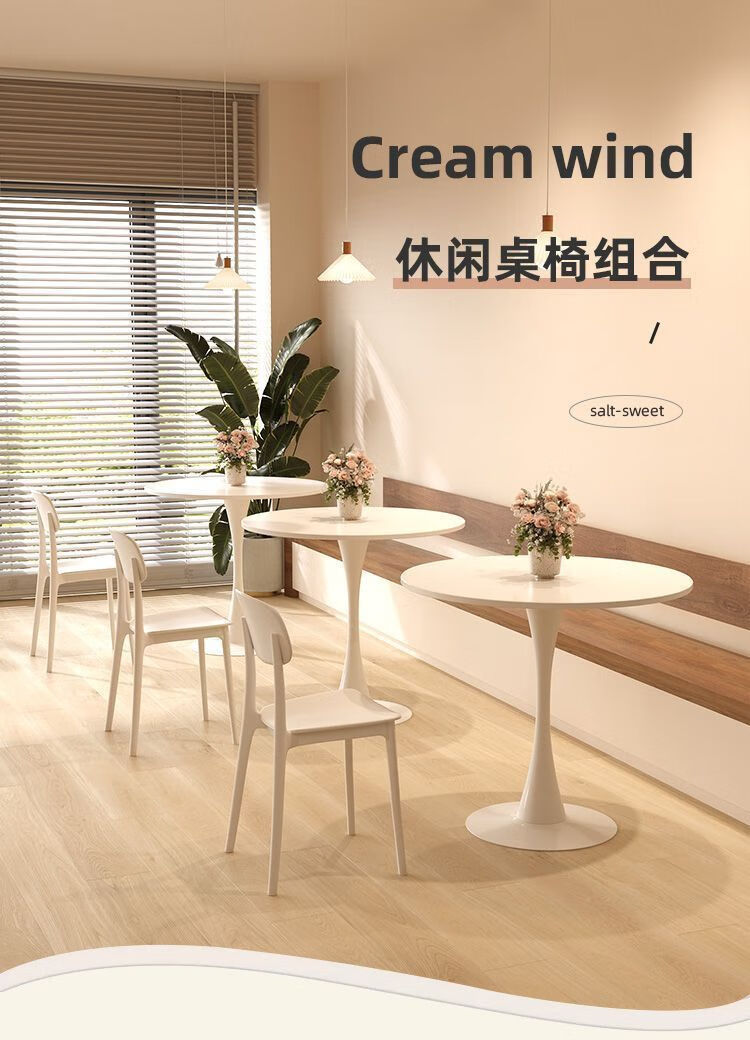 弘星隆网红白色北欧风ins小圆形洽谈桌奶茶咖啡店桌椅组合郁金香餐饭桌 白色单桌 73x60x49cm
