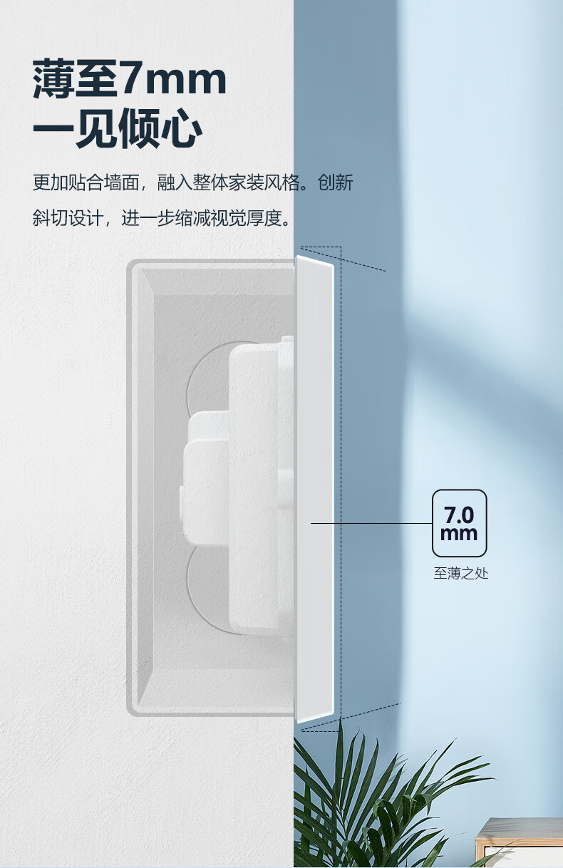 公牛(BULL)G59明装多孔位插座 墙壁面板家用墙壁外线明线盒免打孔一体大面板 白色七孔插座(7孔多插位十安) 官方多孔超薄款免开槽无需底盒不含螺丝