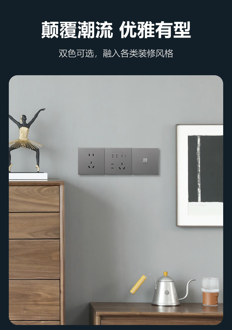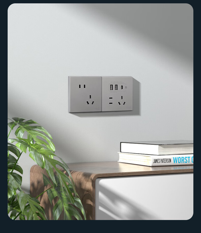 国际电工拓展扩展插座家用厨房挂壁式排插USB快充墙壁原位替换轨道插排 灰色四位五孔【一键控制】