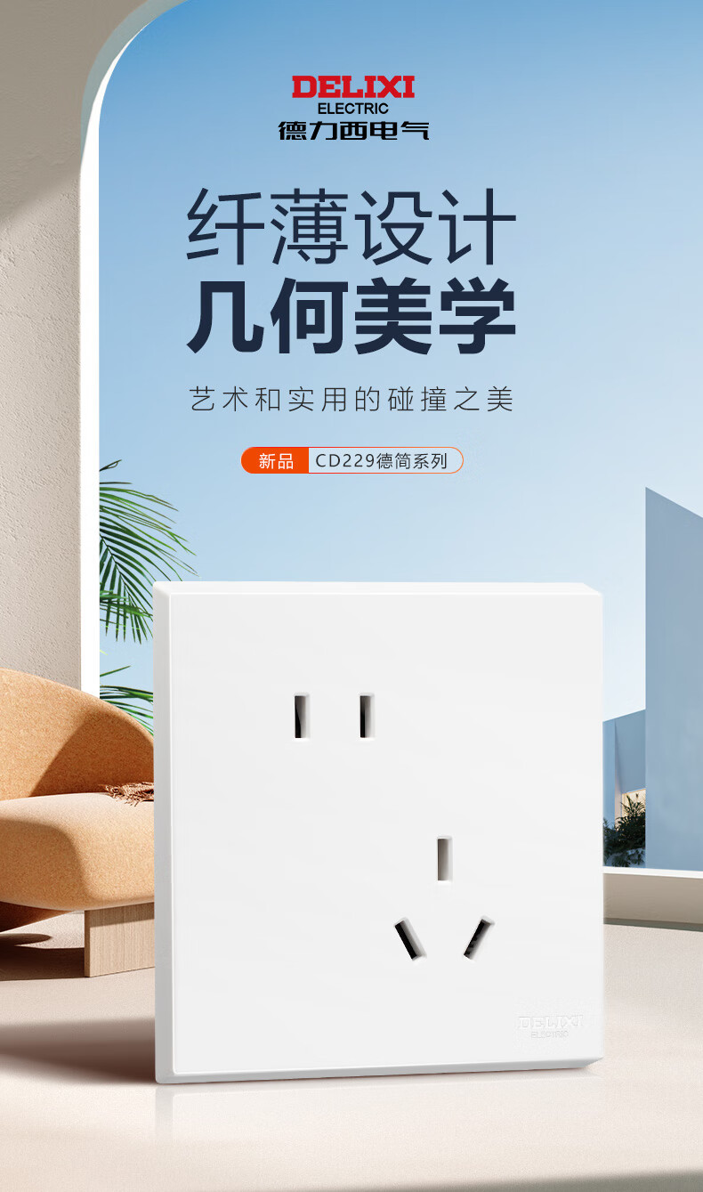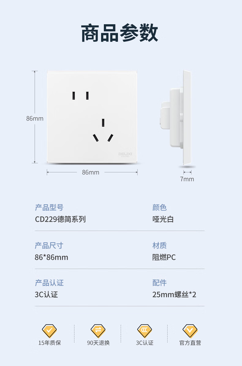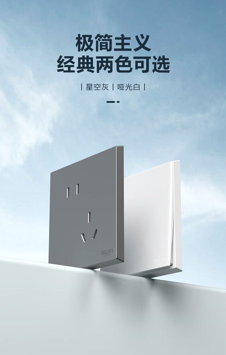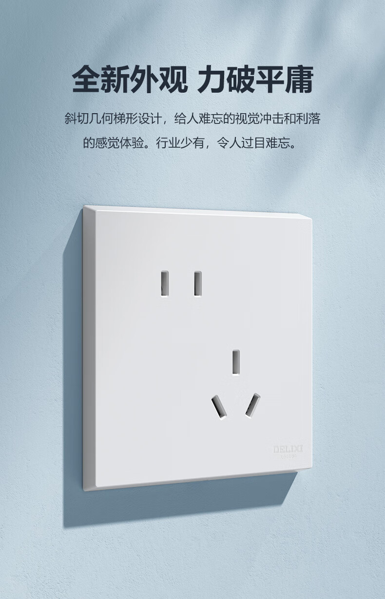 德力西(DELIXI)【迷瞪专属】开关插座面板 哑光亲肤 奶油风 CD229 86型墙壁开关 【哑光白】斜五孔10只装