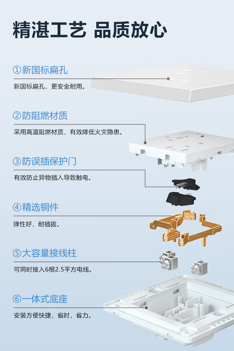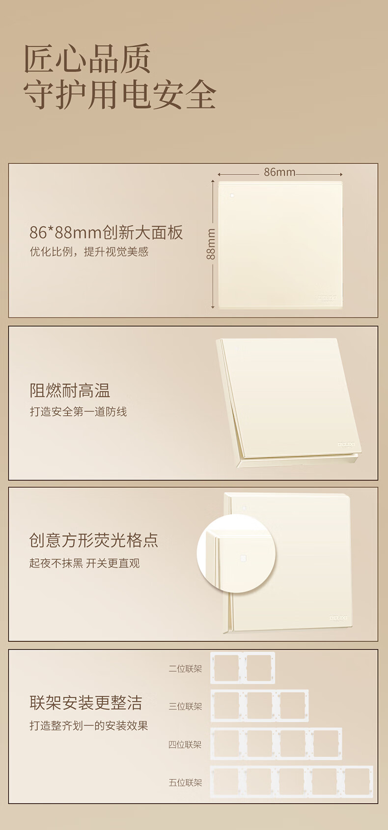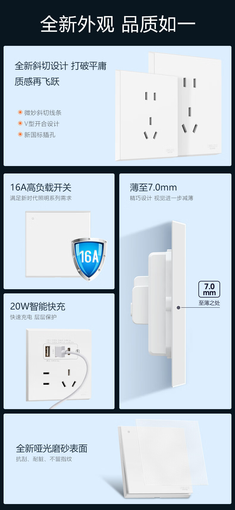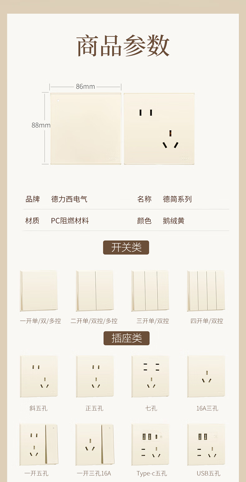 德力西(DELIXI)【迷瞪专属】开关插座面板 哑光亲肤 奶油风 CD229 86型墙壁开关 【哑光白】斜五孔10只装