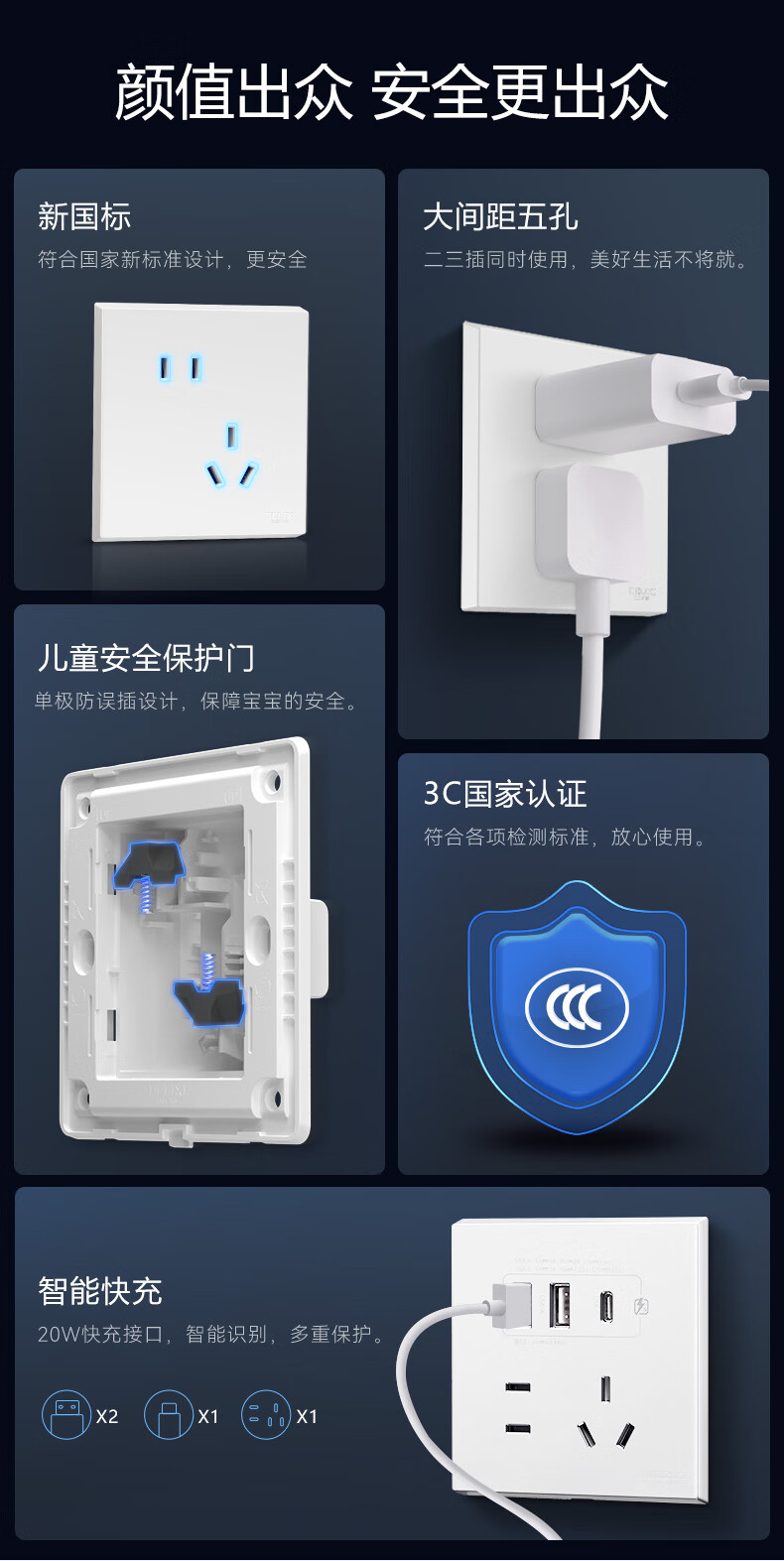国际电工拓展扩展插座家用厨房挂壁式排插USB快充墙壁原位替换轨道插排 白色四位五孔【一键控制】