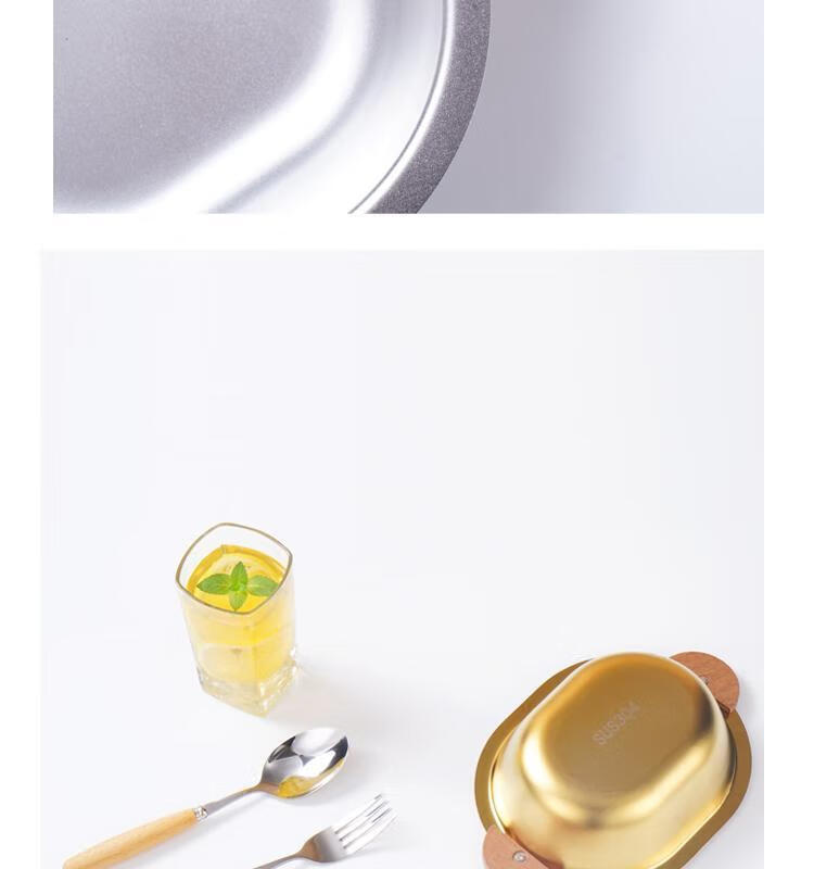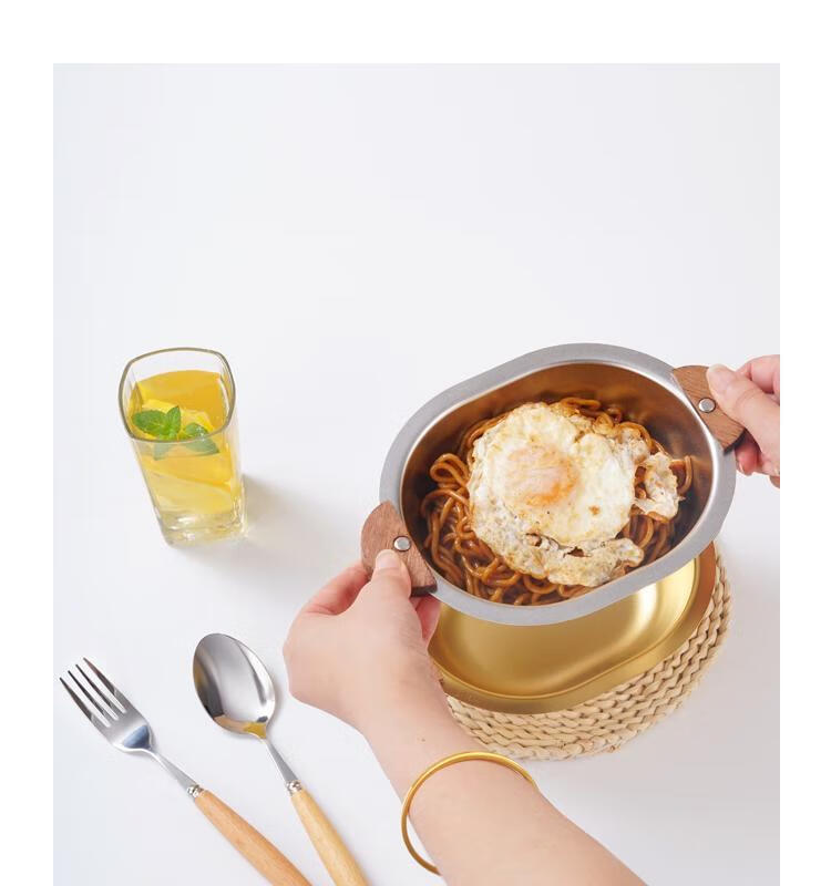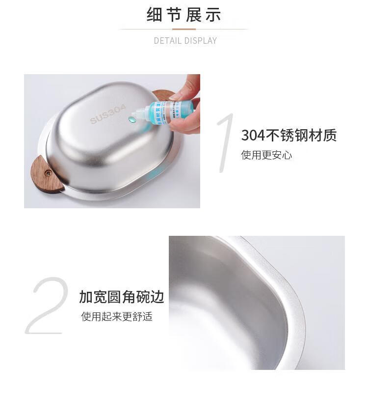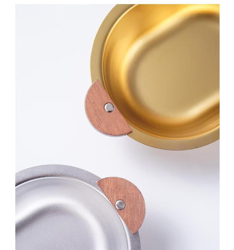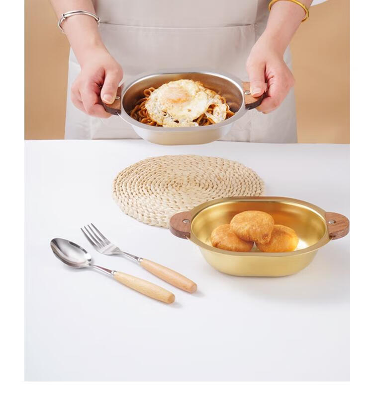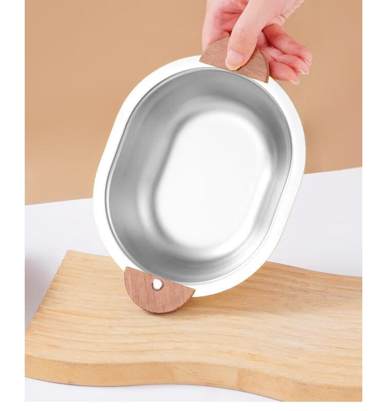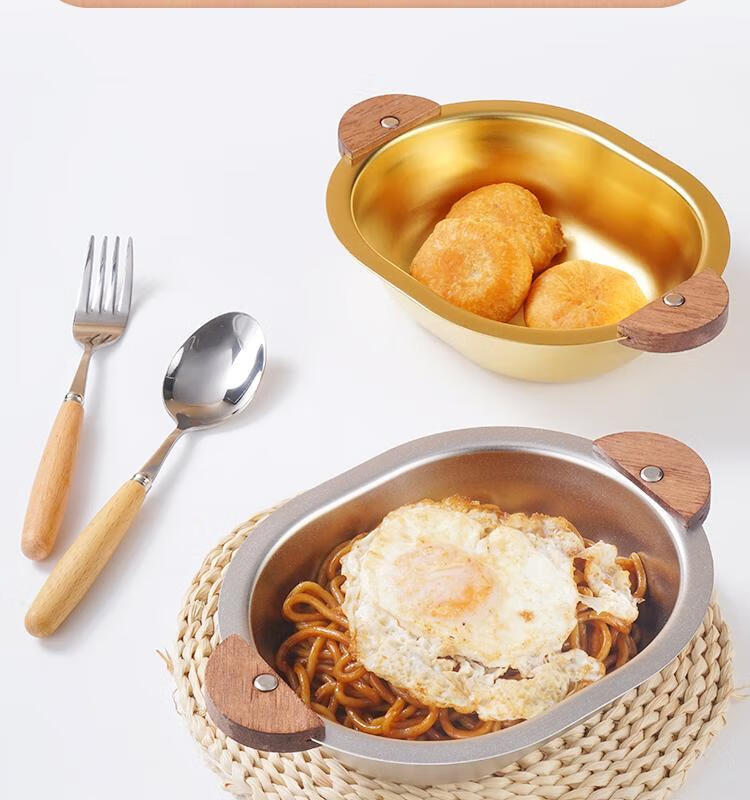 简漾加厚304不锈钢胡桃木双耳小熊碗ins防摔可爱儿童碗带柄防烫饭碗 本色 小号 19*14cm