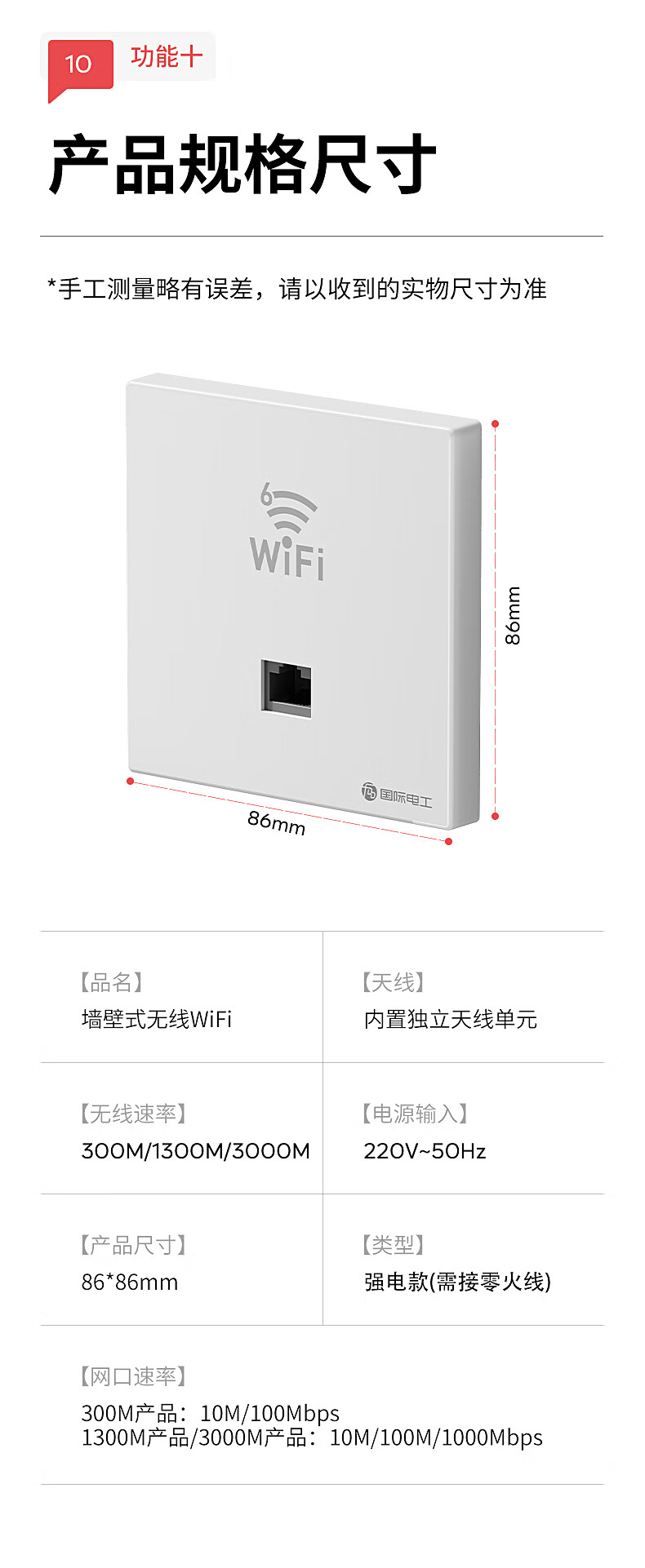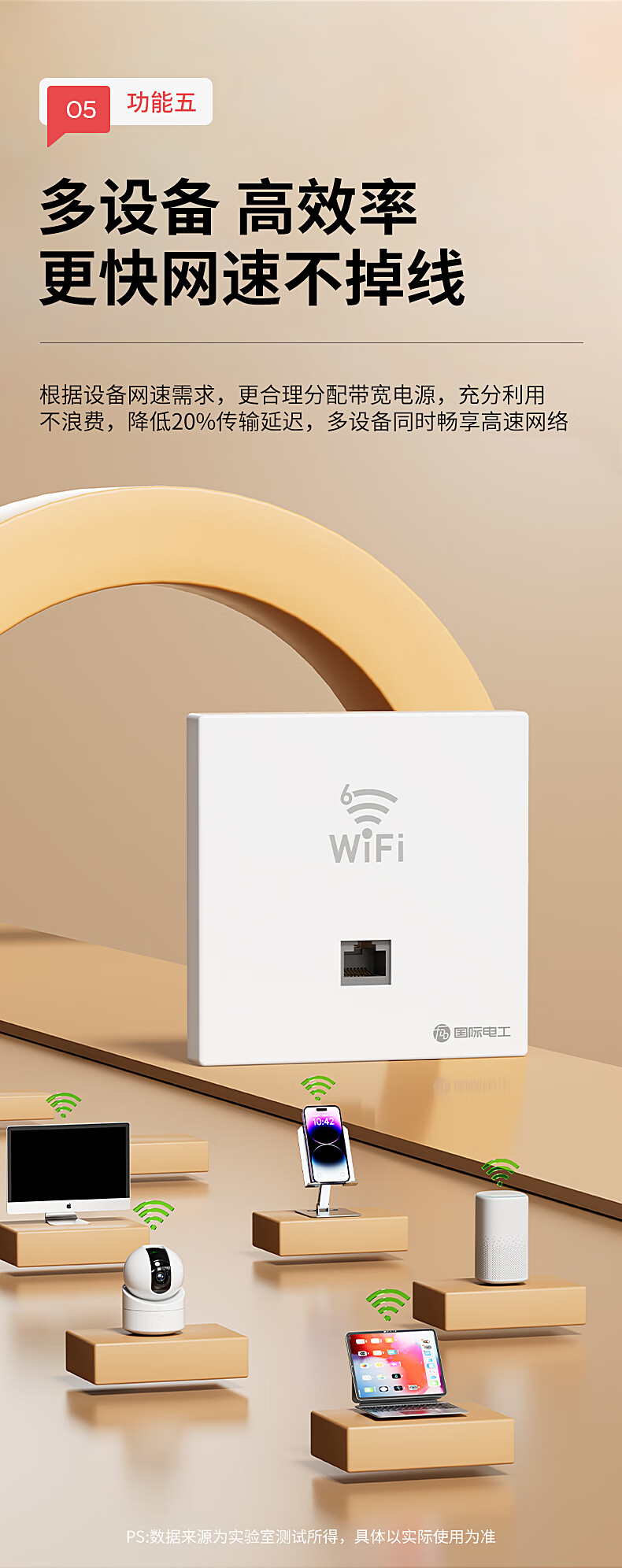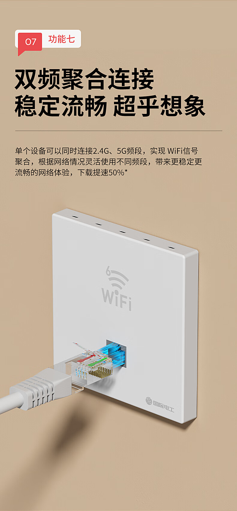 国际电工全屋WiFi6套装千兆双频无线AP面板国标POE路由器家用墙壁网络插座 白色单只(搭配使用)