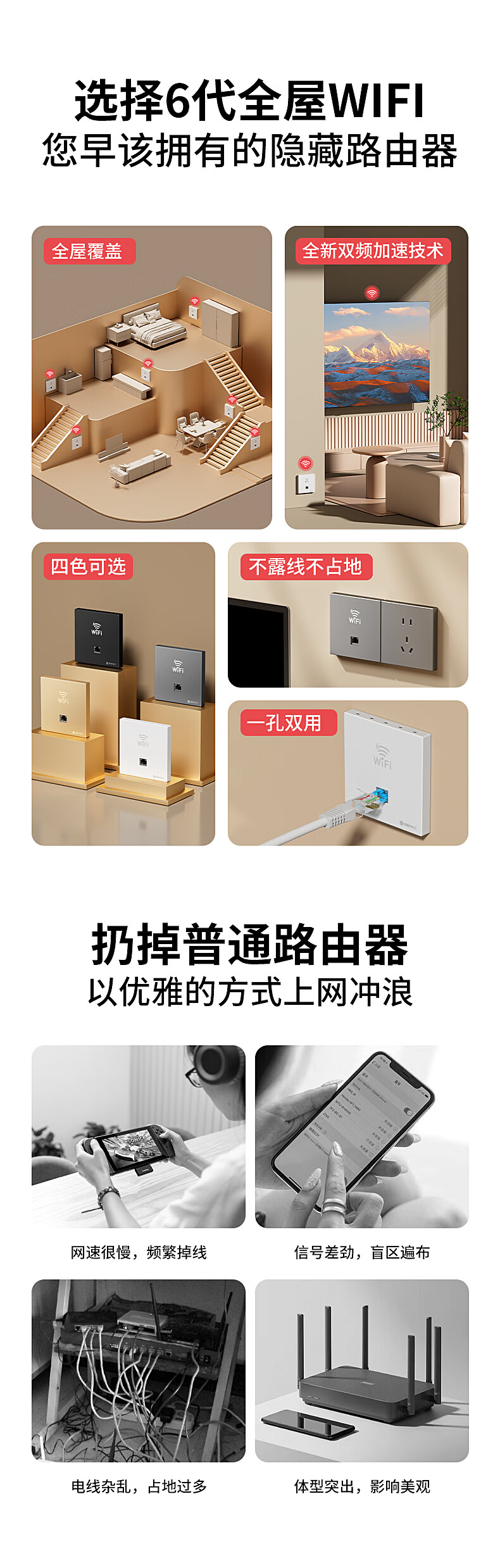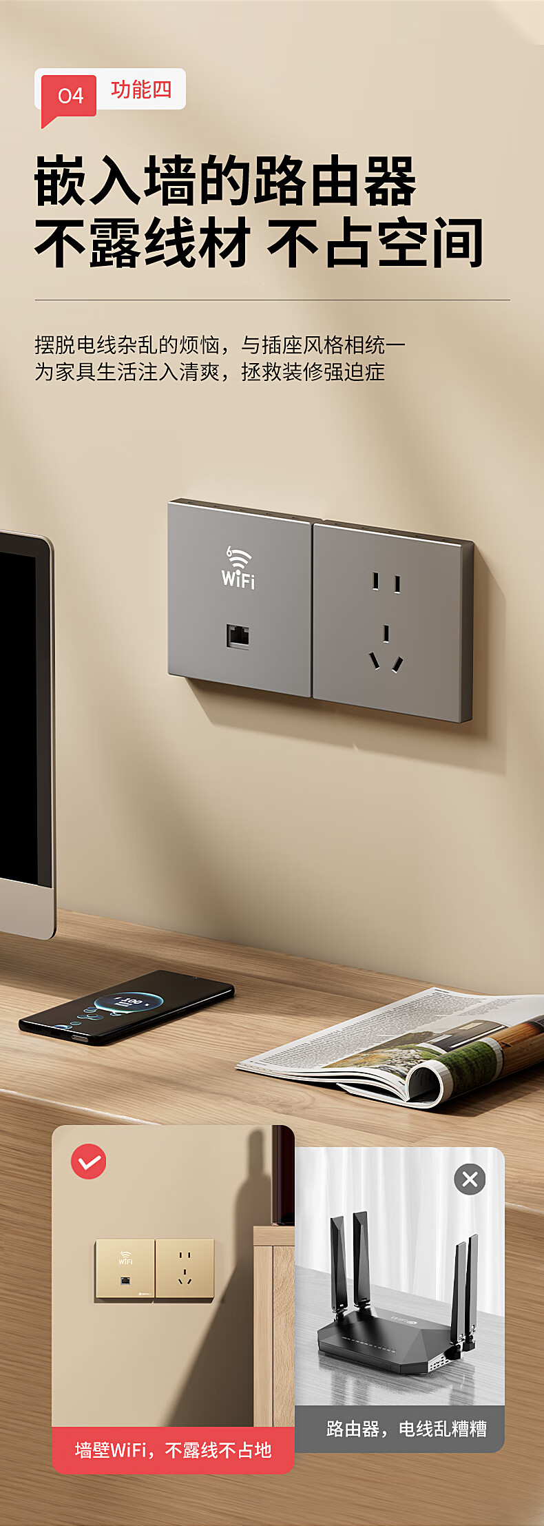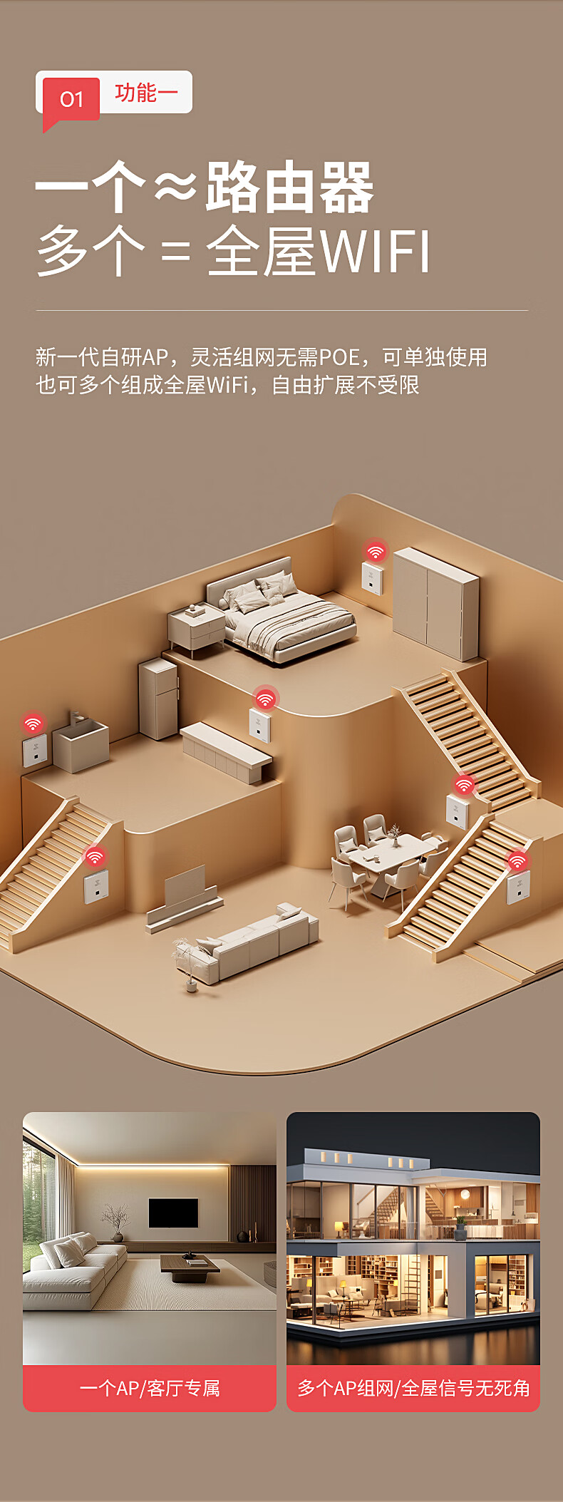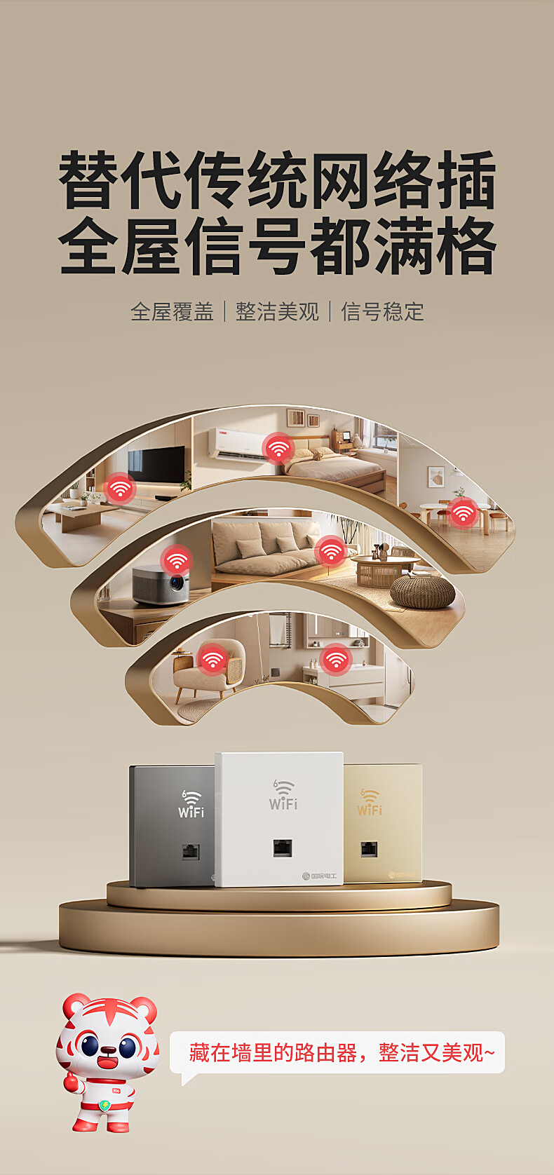国际电工全屋WiFi6套装千兆双频无线AP面板国标POE路由器家用墙壁网络插座 白色单只(搭配使用)