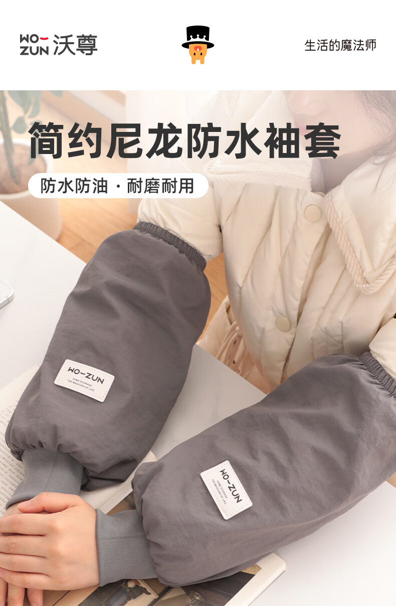 沃尊防水袖套女2025新款秋冬上班耐脏护袖羽绒服专用袖头工作耐磨套袖 卡其色1双【螺纹款】防水尼龙袖套39*18cm 1双
