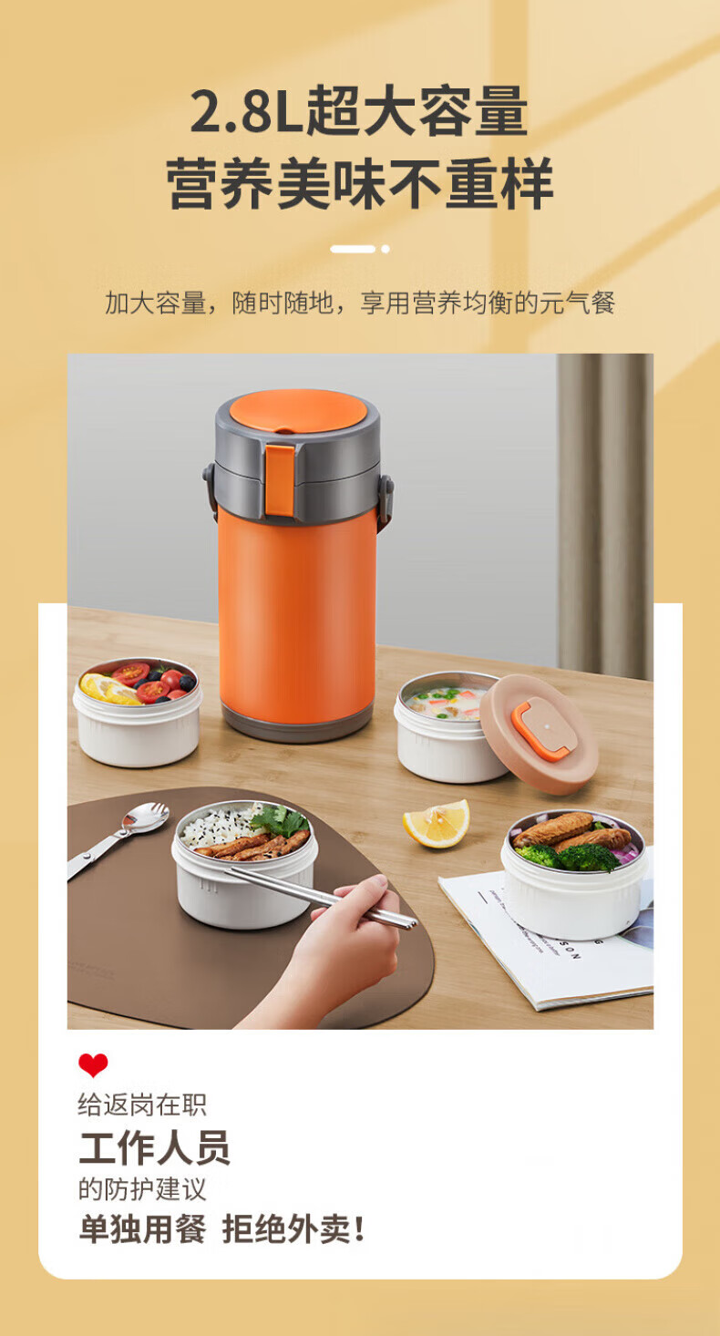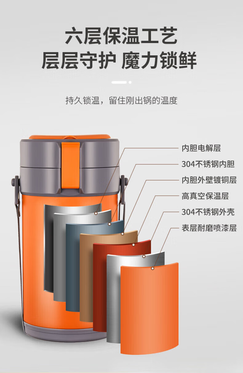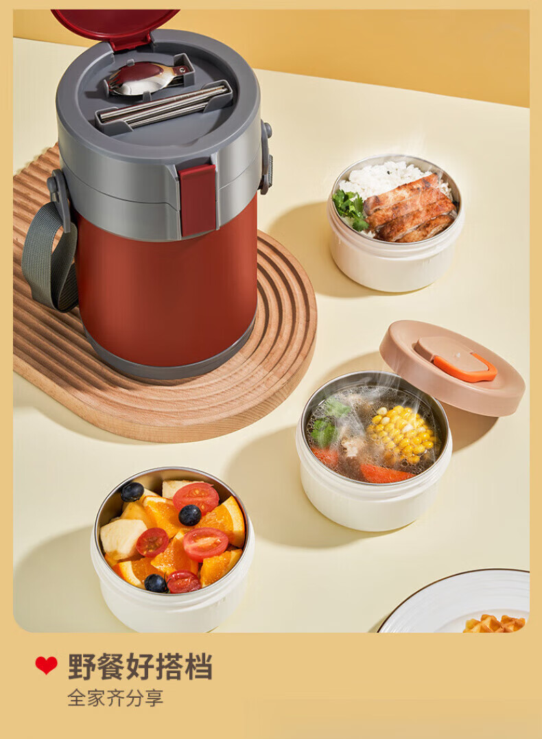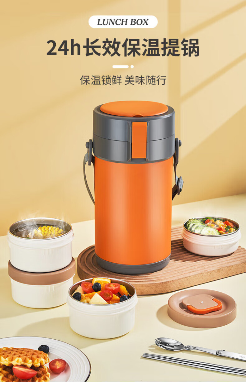 WFFPM德国品牌304不锈钢真空提锅保温饭盒学生上班族大容量多层保温桶 本色 三层 2.3L 饭盒+餐具