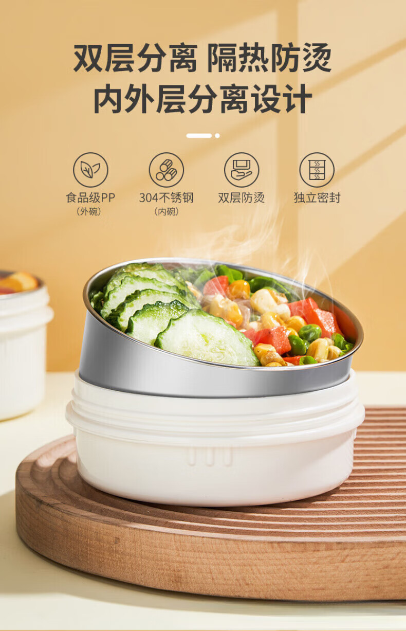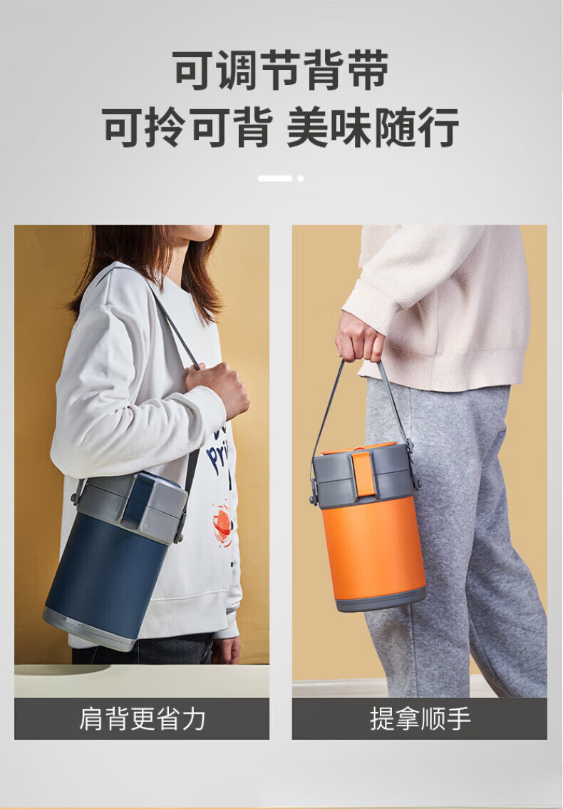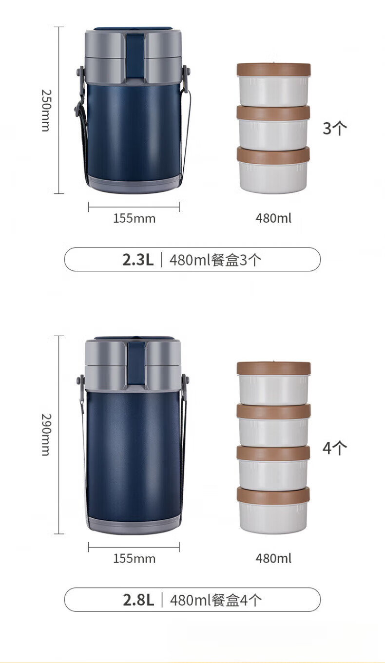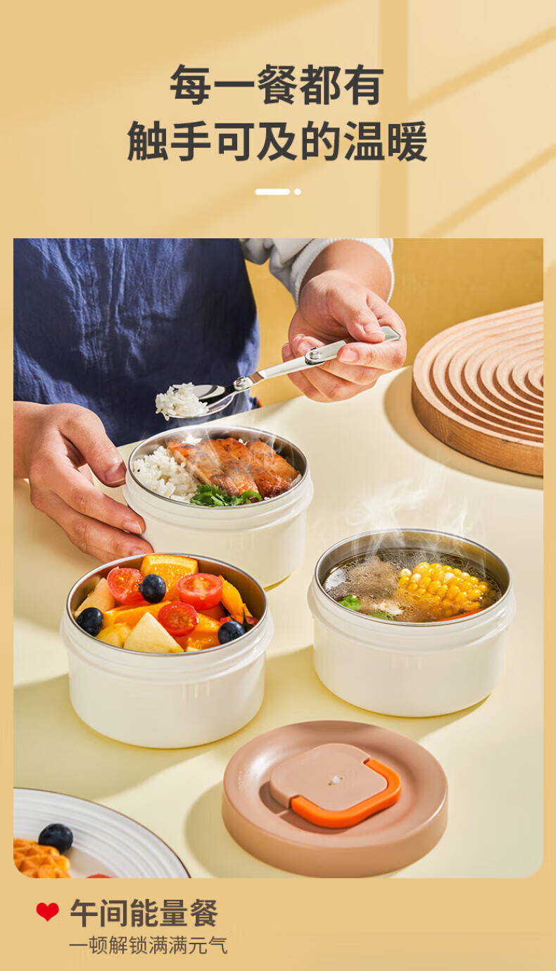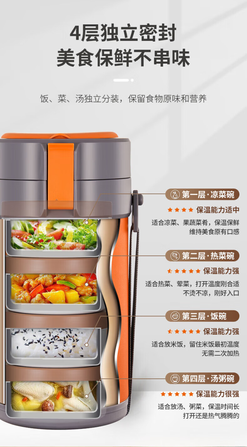 WFFPM德国品牌304不锈钢真空提锅保温饭盒学生上班族大容量多层保温桶 本色 三层 2.3L 饭盒+餐具