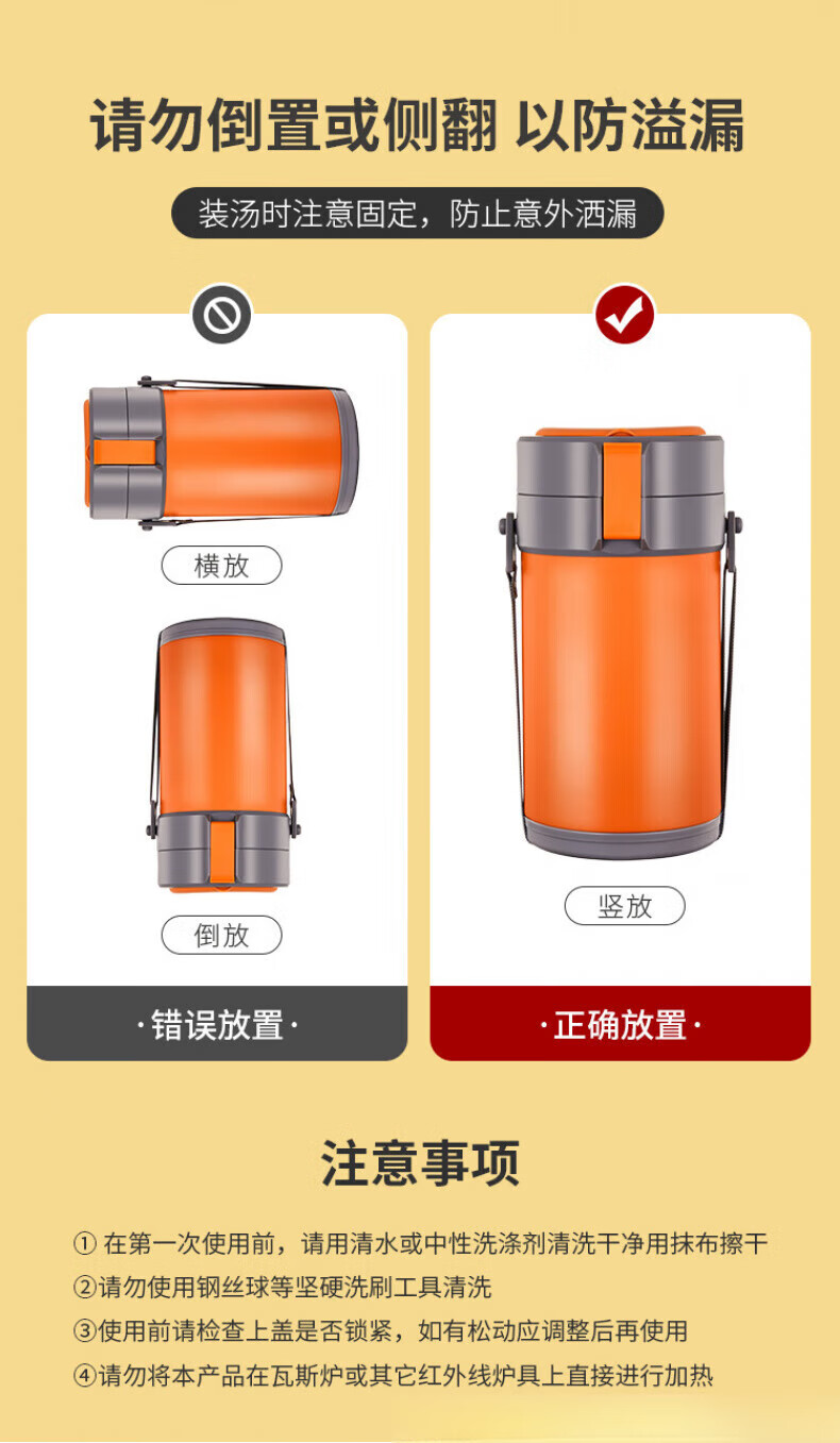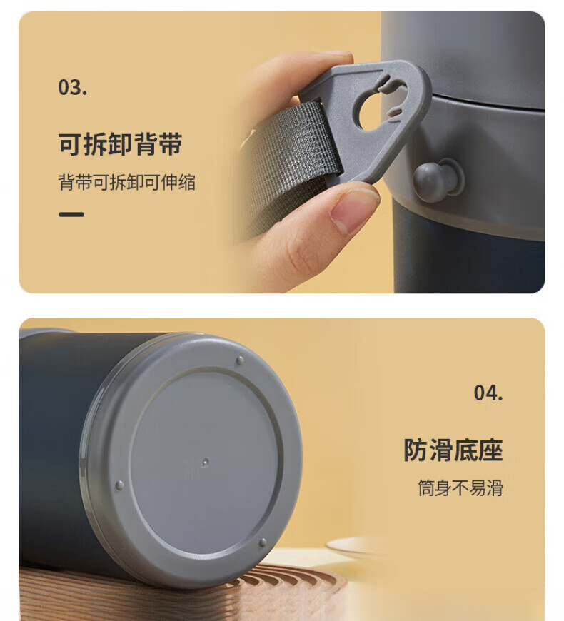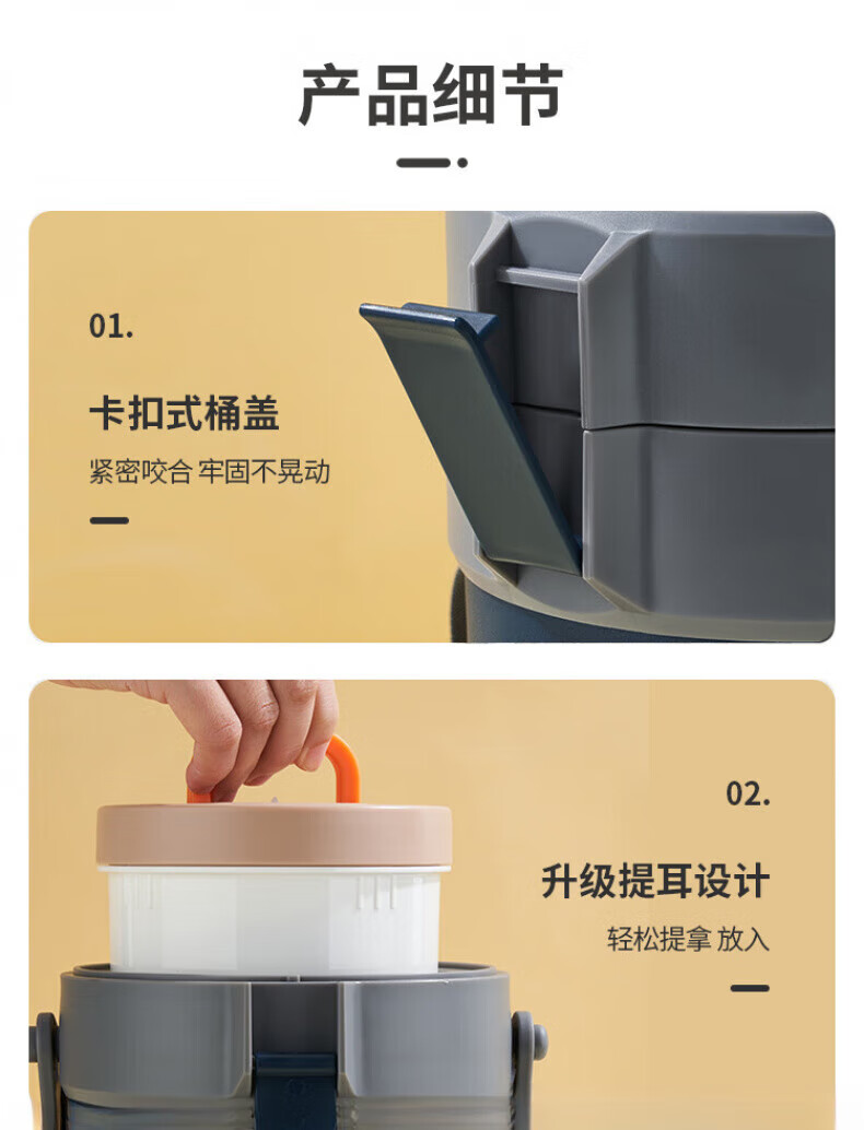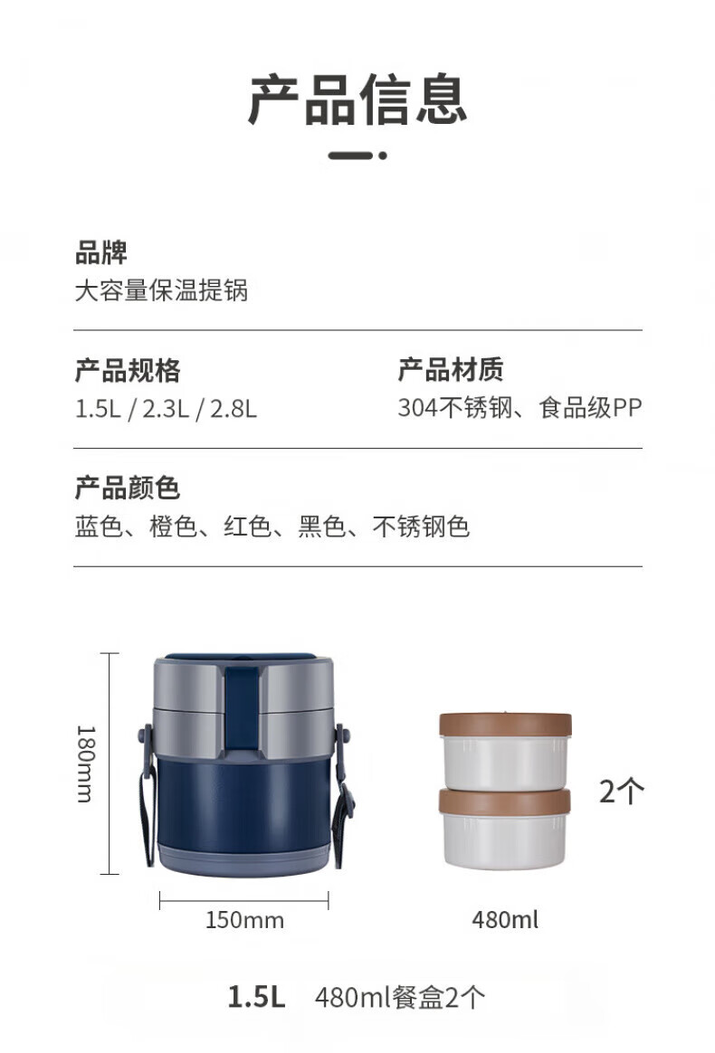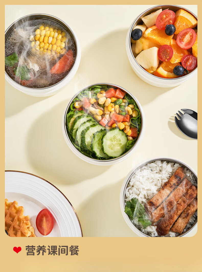 WFFPM德国品牌304不锈钢真空提锅保温饭盒学生上班族大容量多层保温桶 本色 三层 2.3L 饭盒+餐具