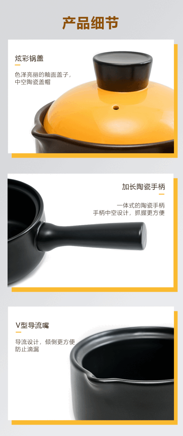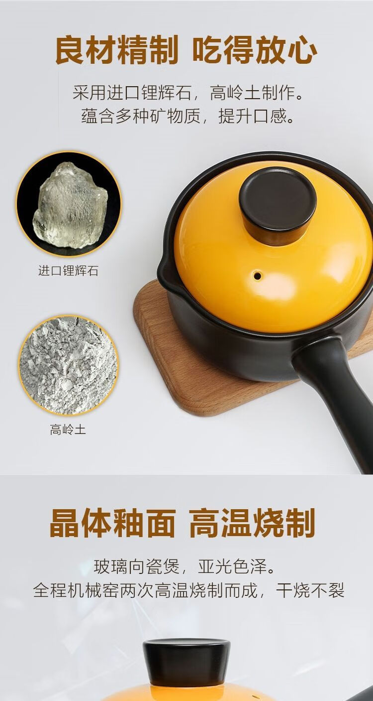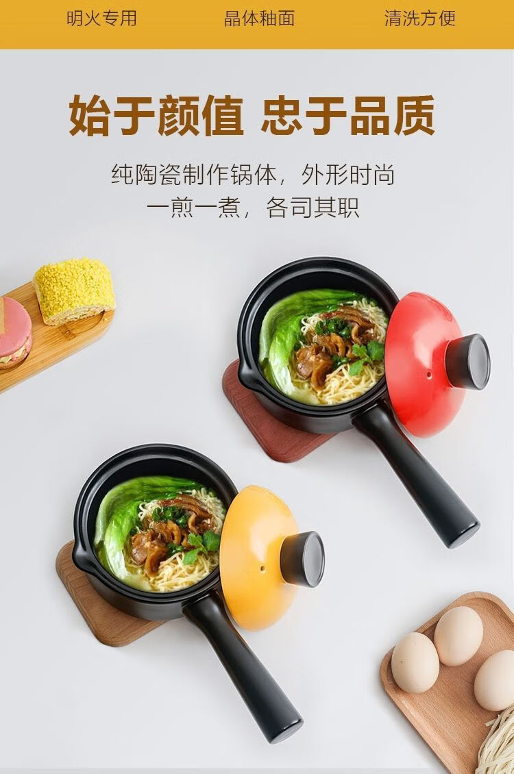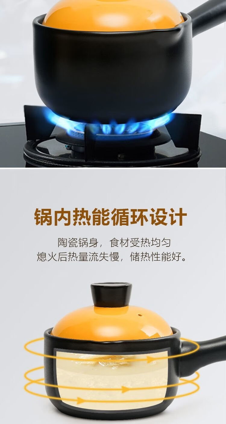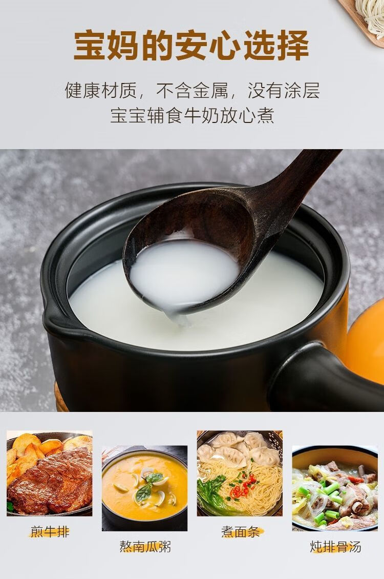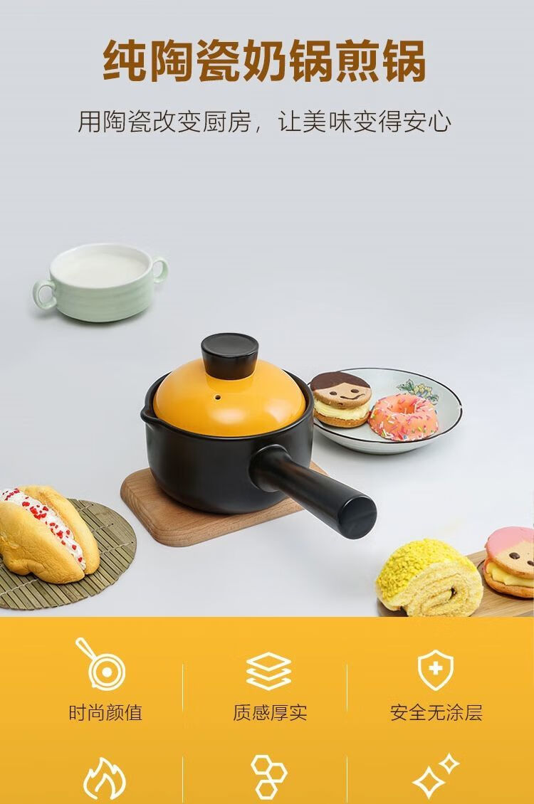 泰禧阁陶瓷小砂锅奶锅煮粥泡面锅无涂层婴儿辅食锅3年烧裂换新 1.4L黑锅 1.4L黑锅橙盖 1寸