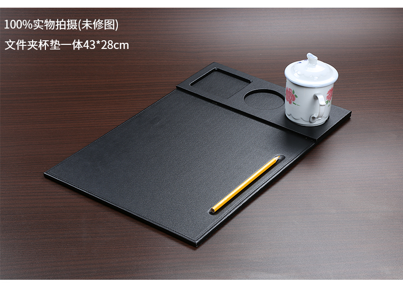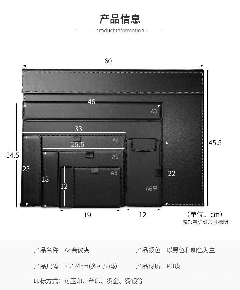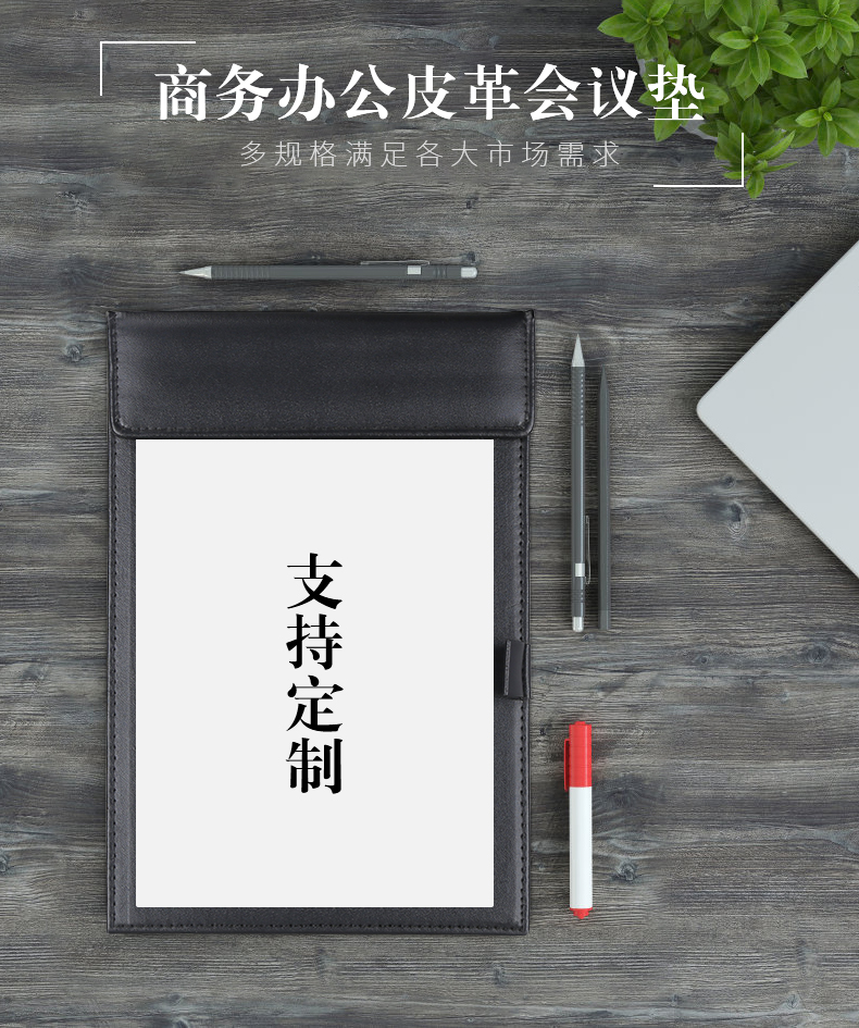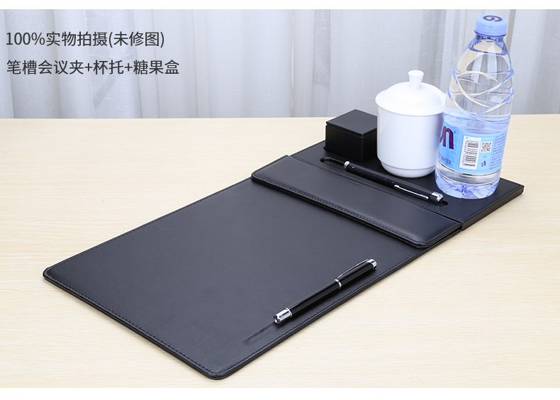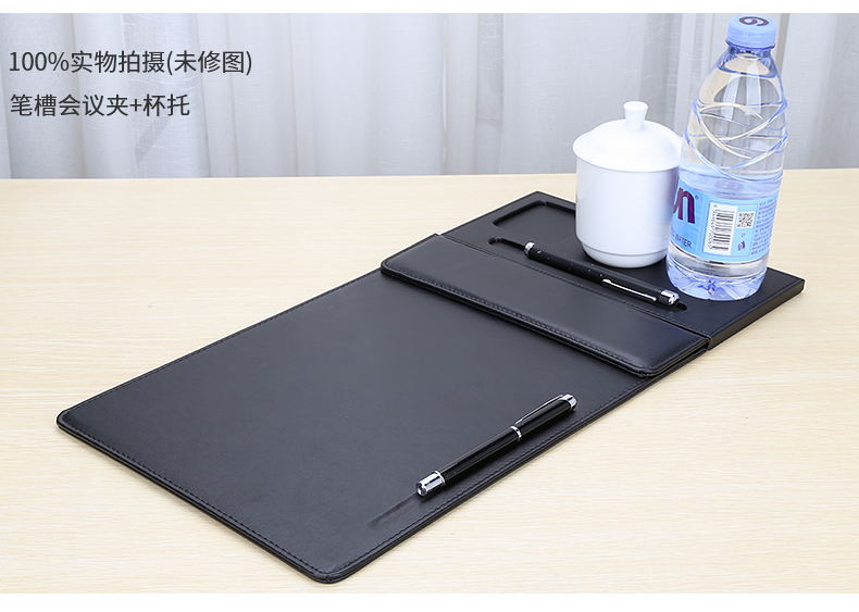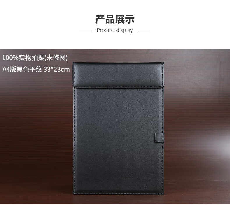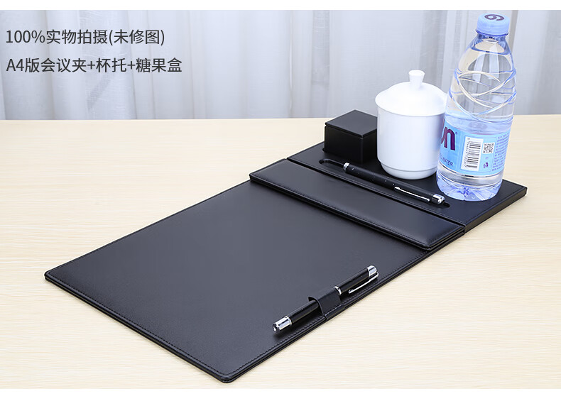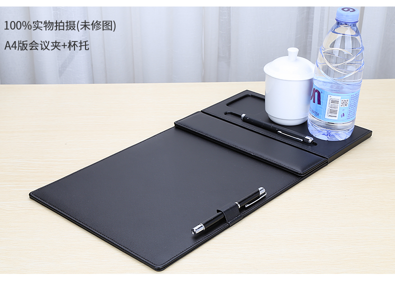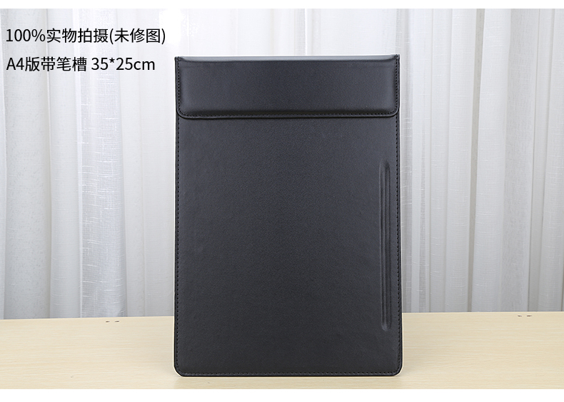 利蓝(LEADLAND)皮革会议夹写字垫板签约文件夹夹板商务办公用品资料夹子书写板垫活页定制LOGO A4黑色PU皮料A357