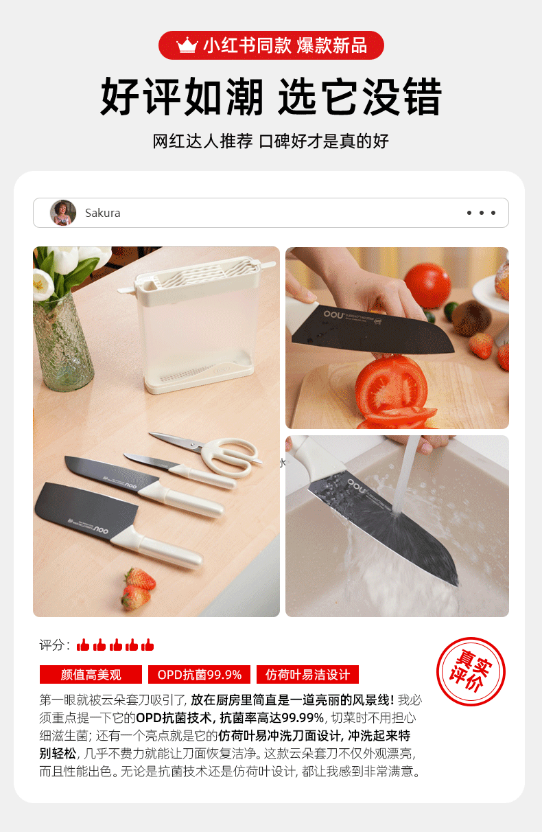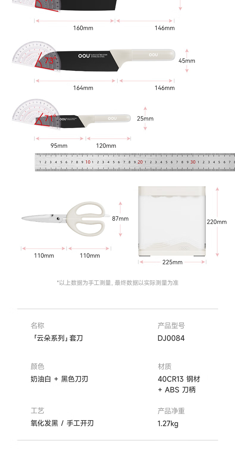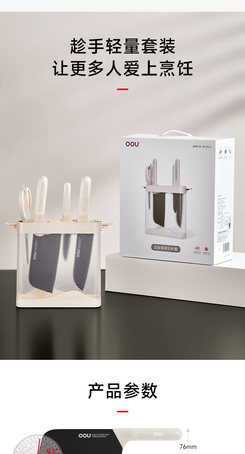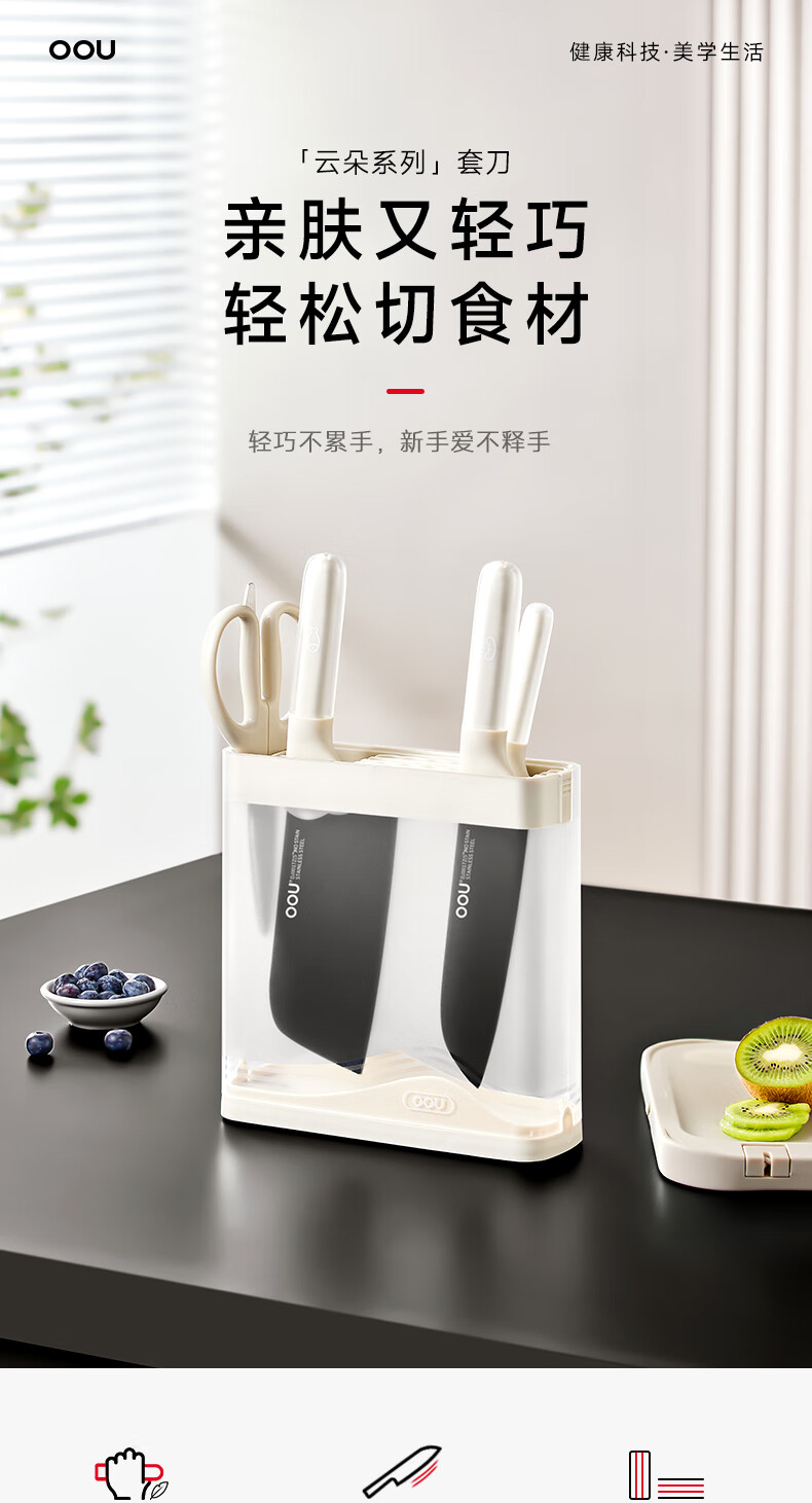 OOU刀具厨房套装菜刀家用厨刀厨具全套厨师切菜刀剪刀云朵系列5件套