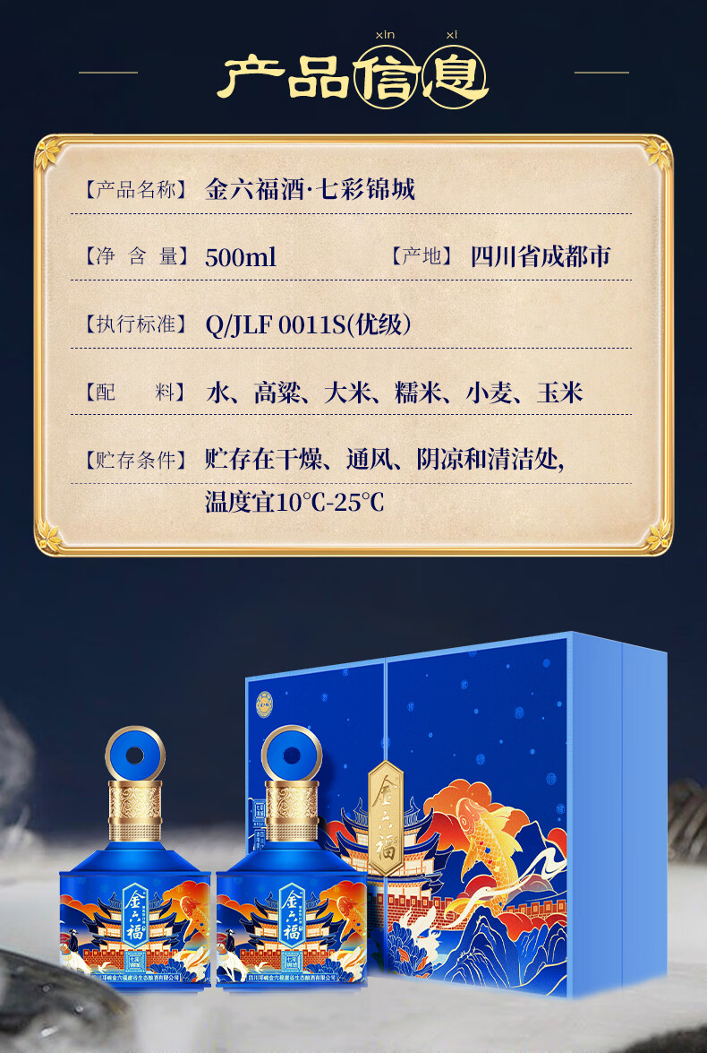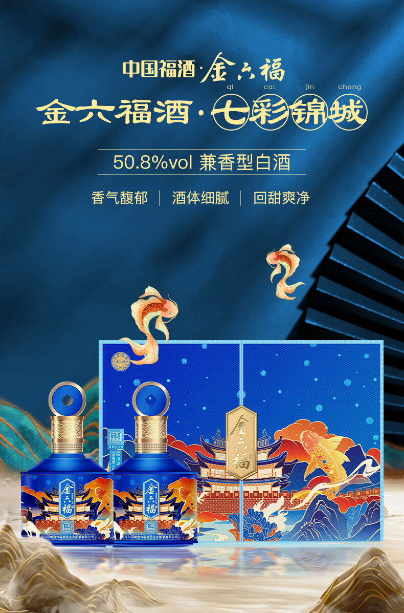 金六福七彩锦城50.8度 两瓶礼盒装过年送礼 50.8%vol 500mL 2瓶