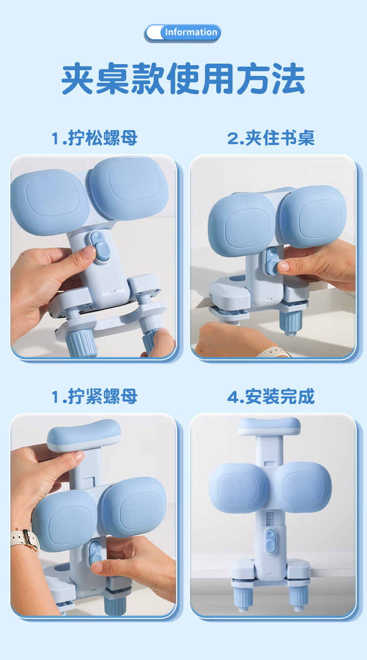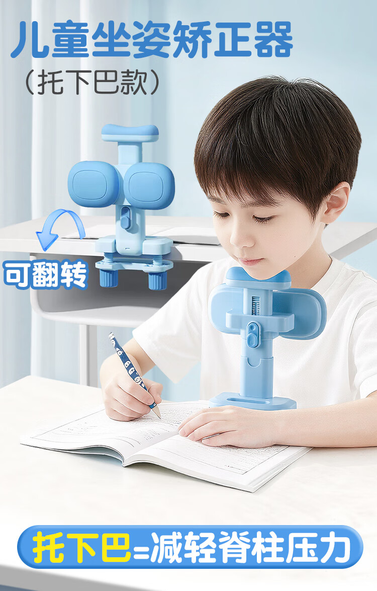 语季可托下巴坐姿器防低头翻转隐藏脖子抬高器写字姿势小学生儿童正姿写作业书写托脖读书架保护架夹 【全新升级可托下巴】夹桌款-粉色