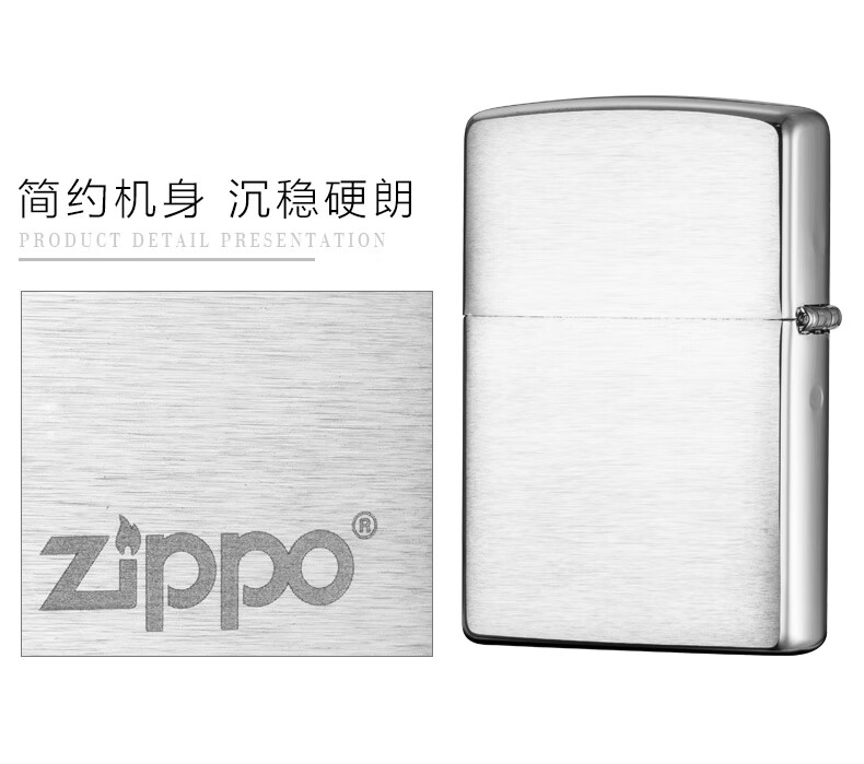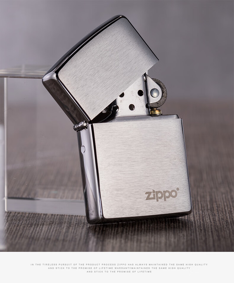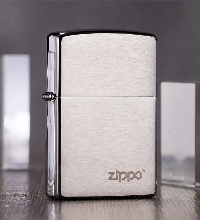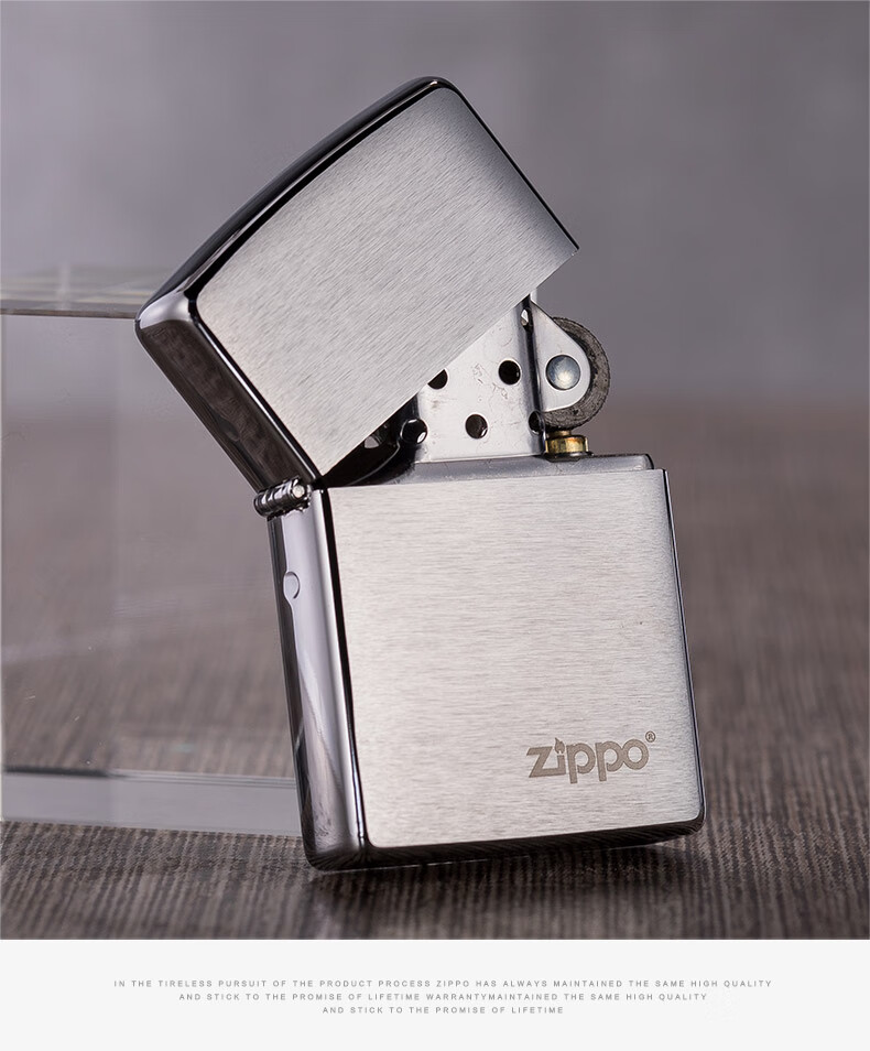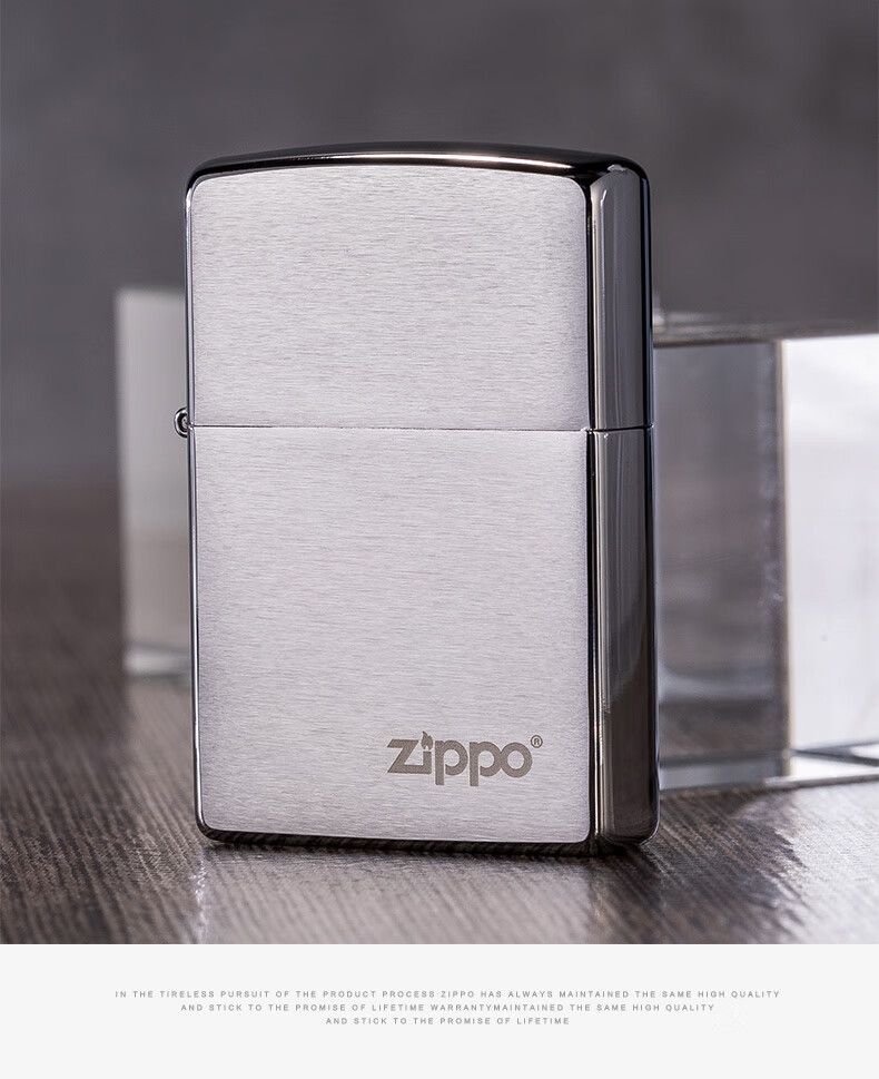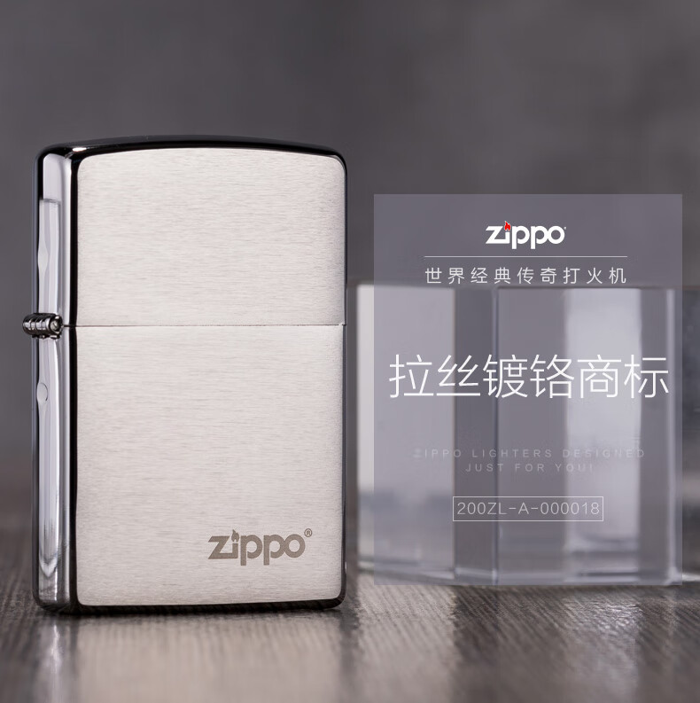 ZIPPO打火机之宝防风煤油 拉丝镀铬-商标 生日礼物男送老公 单机