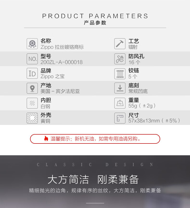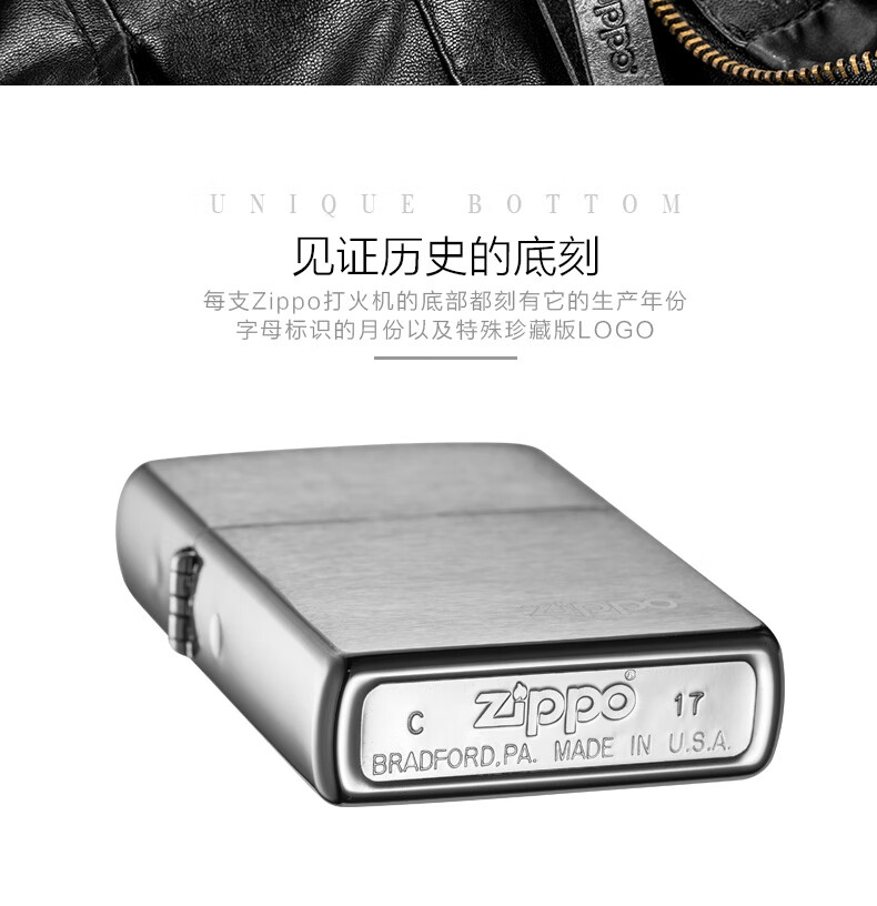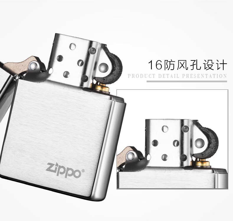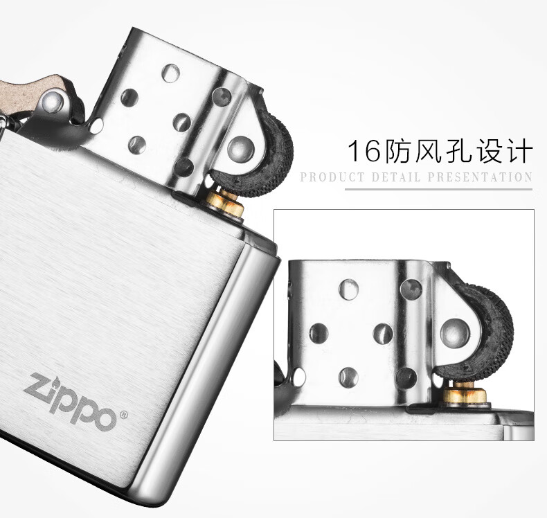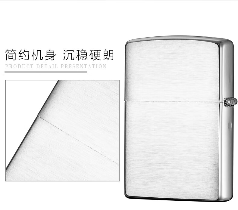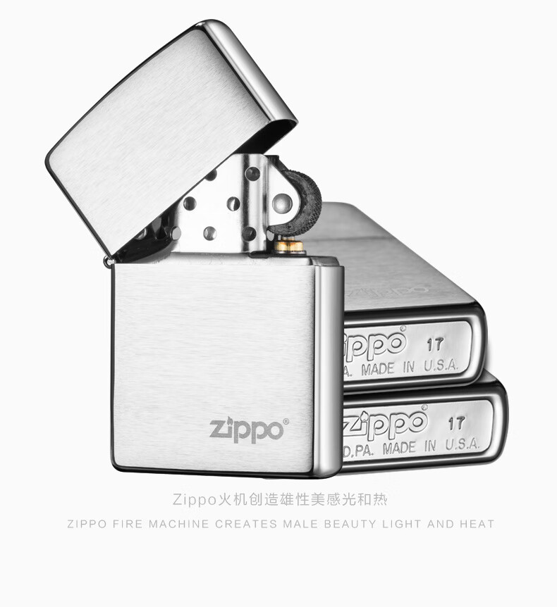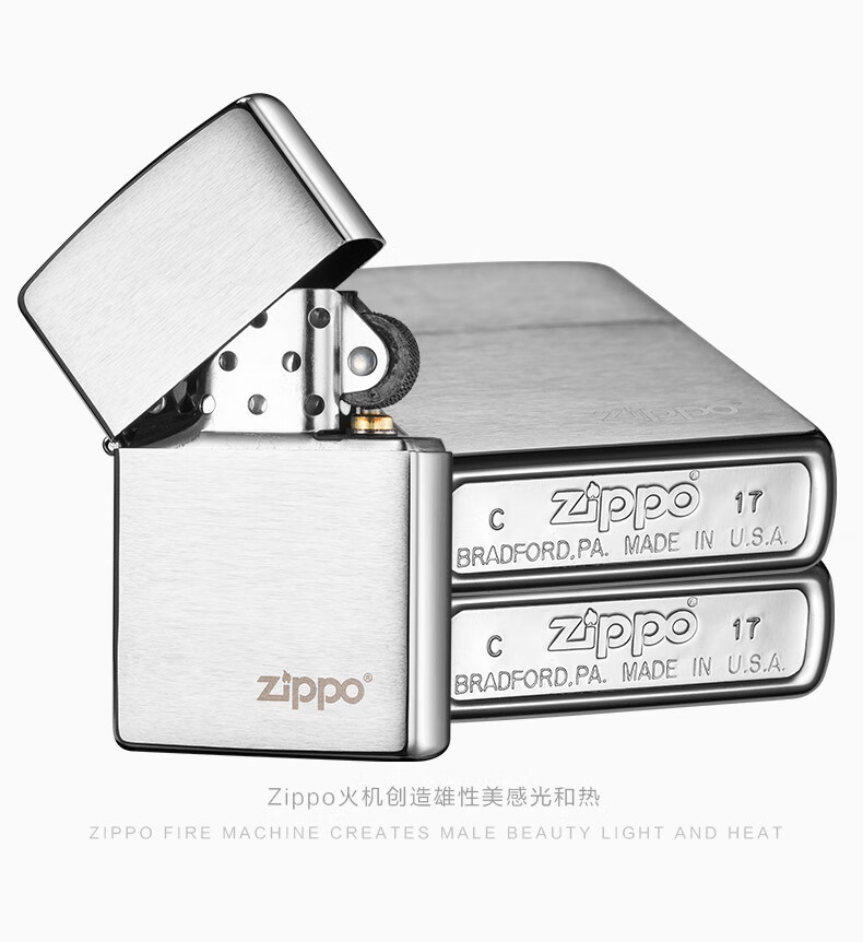 ZIPPO打火机之宝防风煤油 拉丝镀铬-商标 生日礼物男送老公 单机
