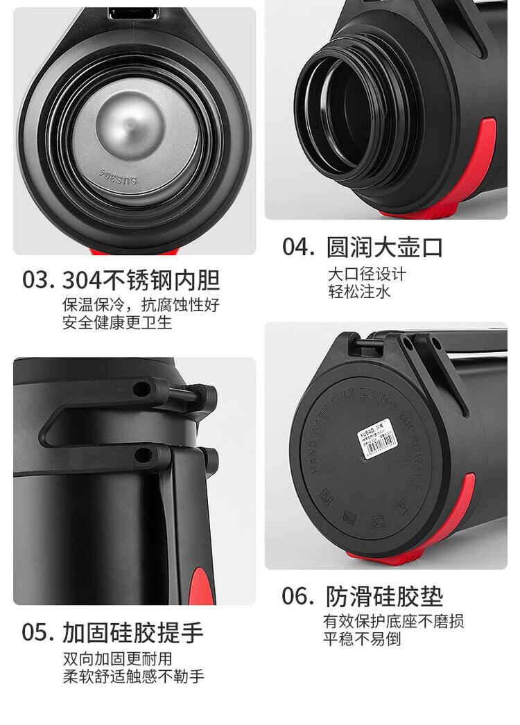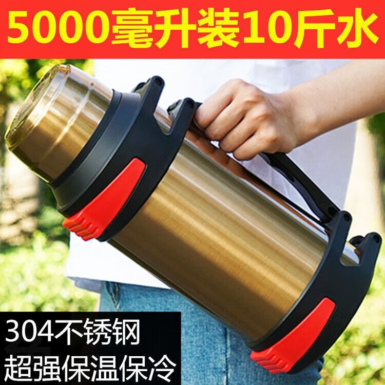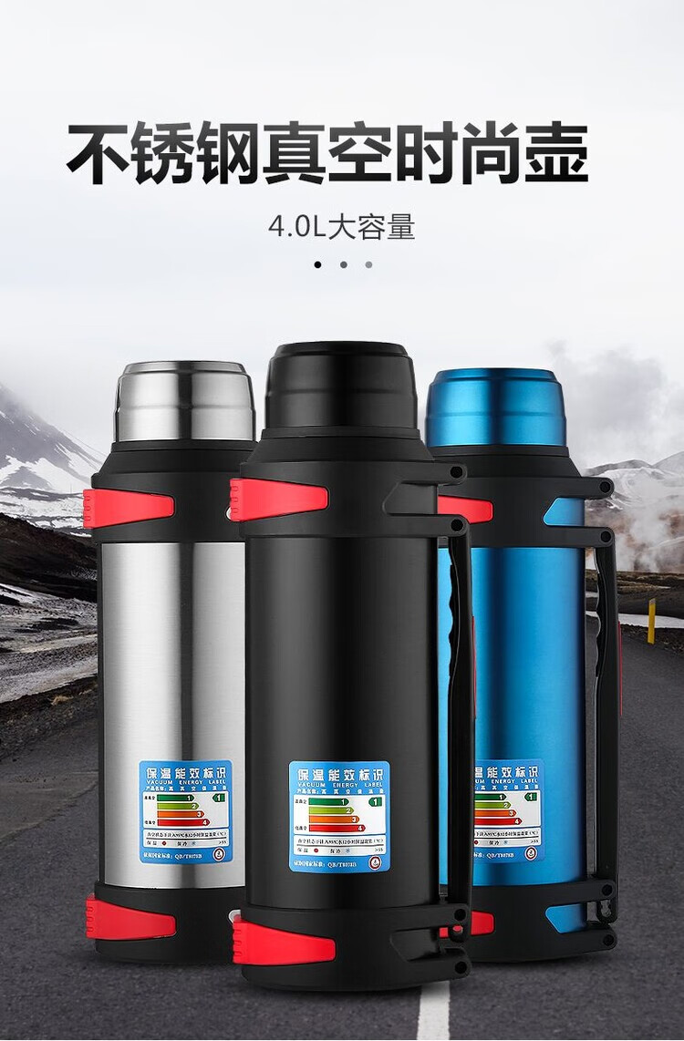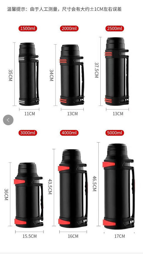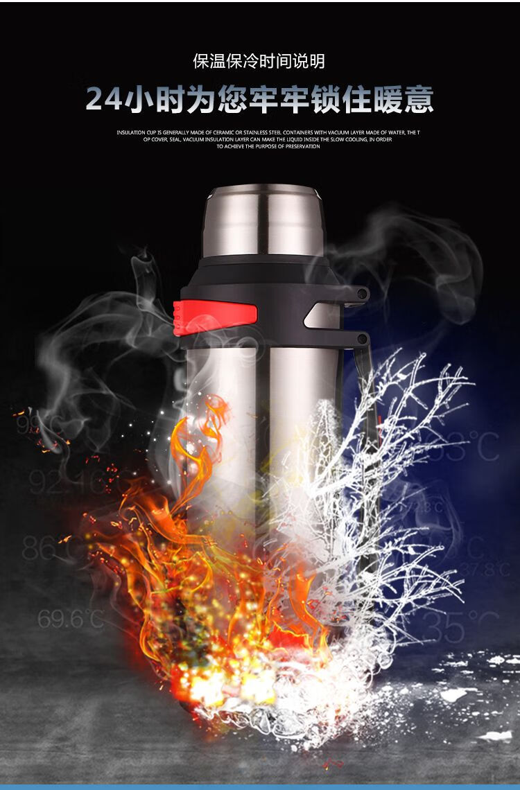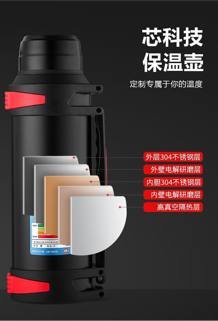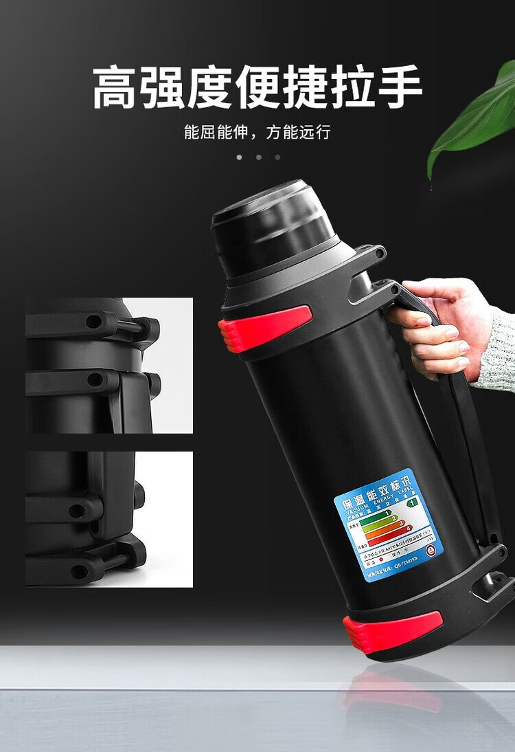 LZJV304不锈钢保温壶大容量保温杯男户外便携保温水壶工地家用暖水瓶 黑色.壶刷.背带.储水碗.壶包 3000毫升(6斤水)