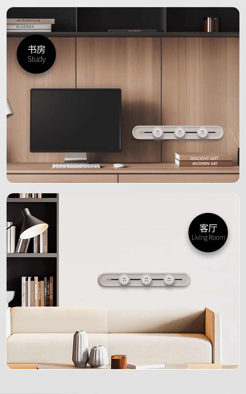 国际电工床头插座扩展转换器多功能客厅餐边柜扩展插头厨房短线插排插线板 向左扩展【三开21孔】白色短线