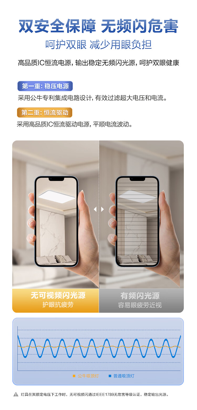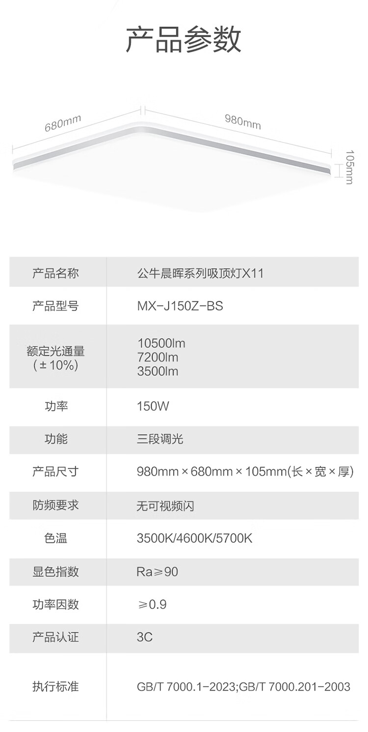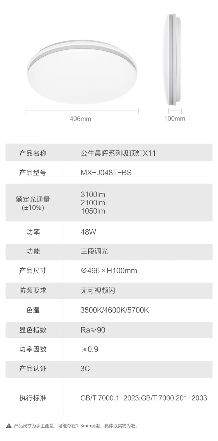 公牛(BULL)LED吸顶灯 X11系列 全光谱三段调光客厅灯卧室灯包安装 48W 三段调光【卧室灯】MX-J150Z-BS