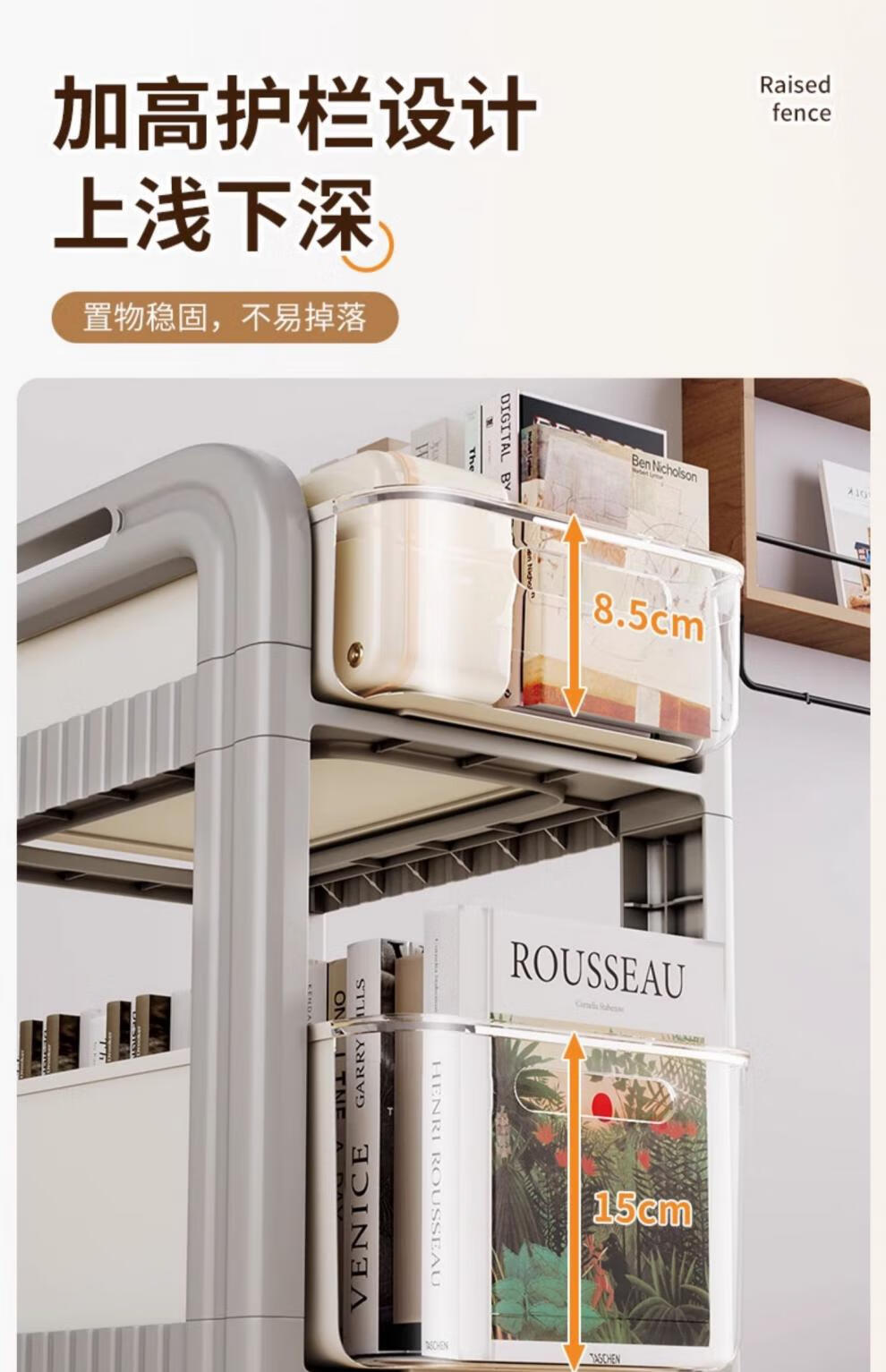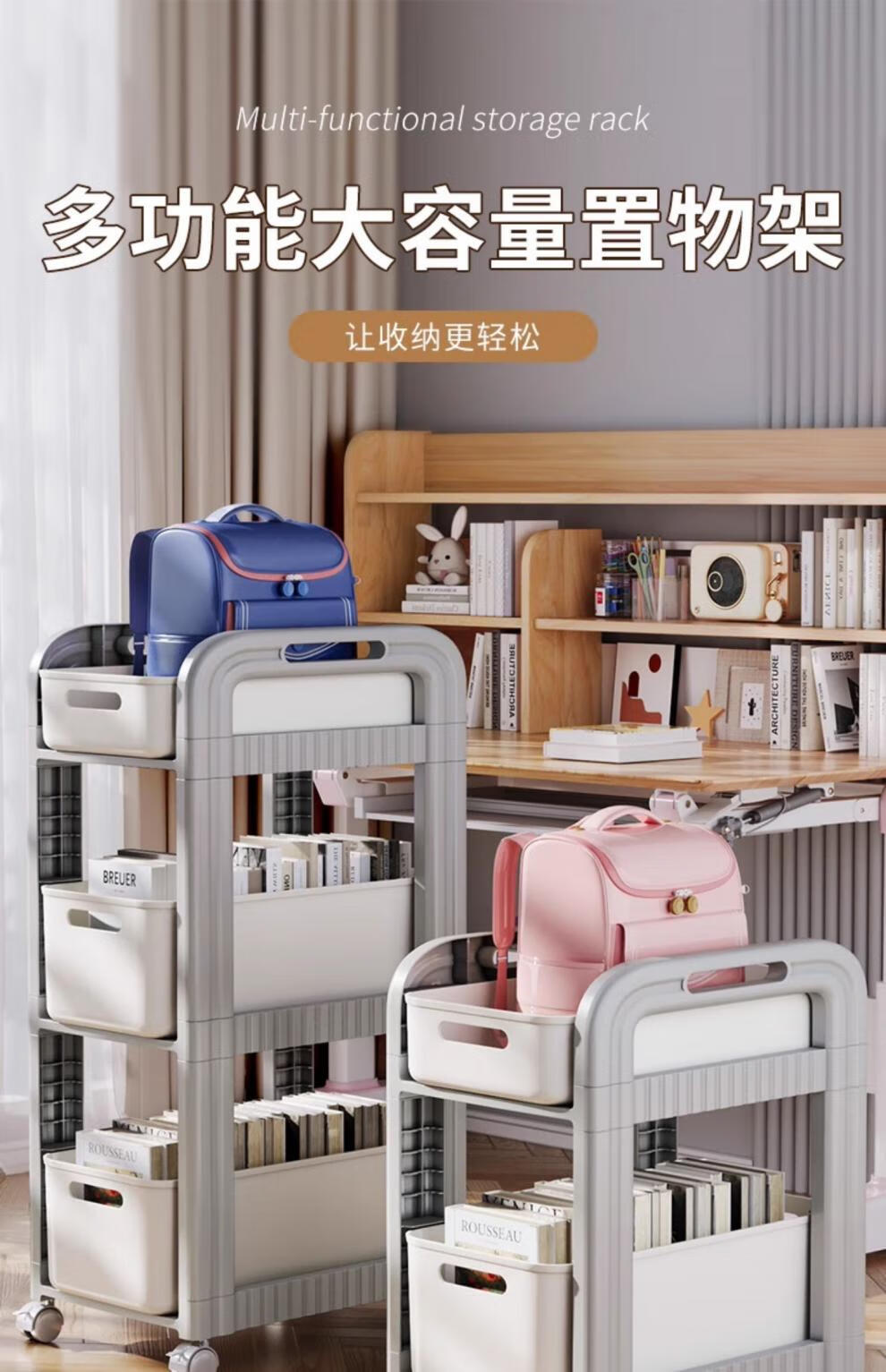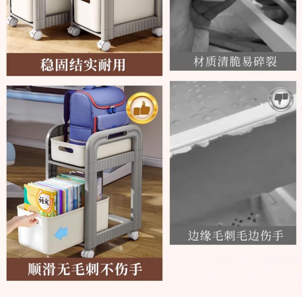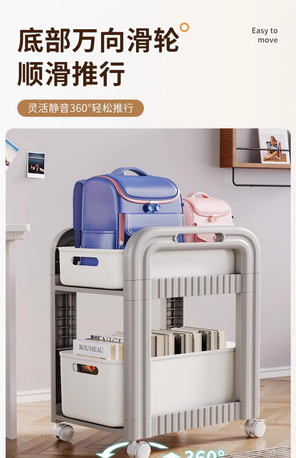 迈途森书包置物架可移动小推车书本收纳架神器家用多层放书包桌下滑轮柜 灰白色-两层【1高+1矮】带轮可拆卸