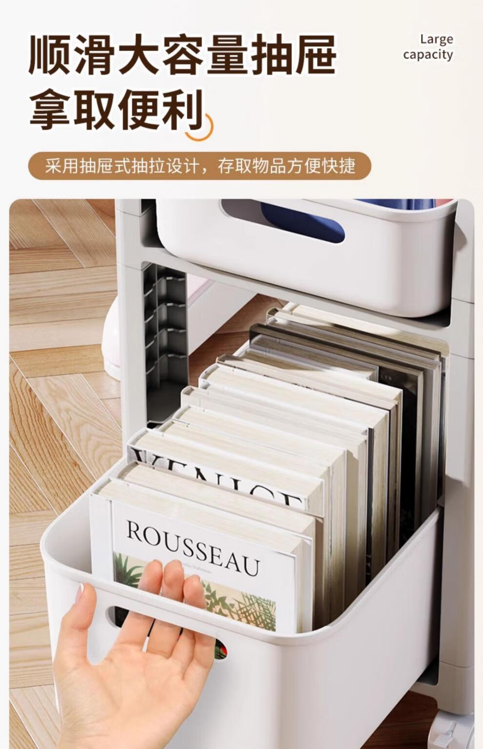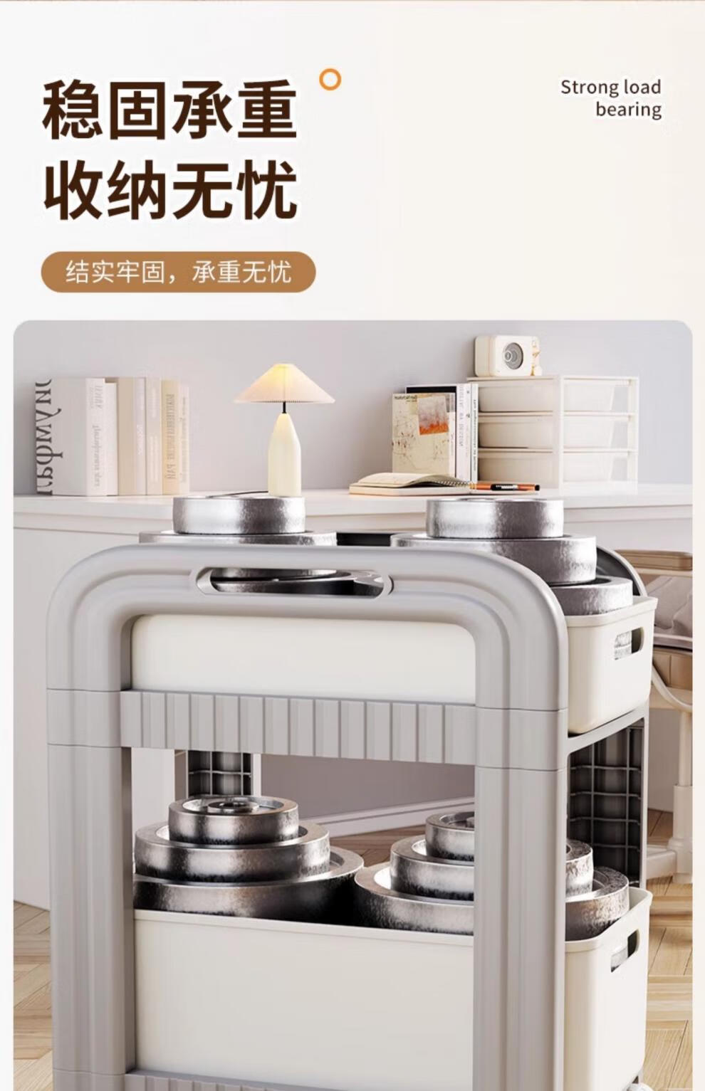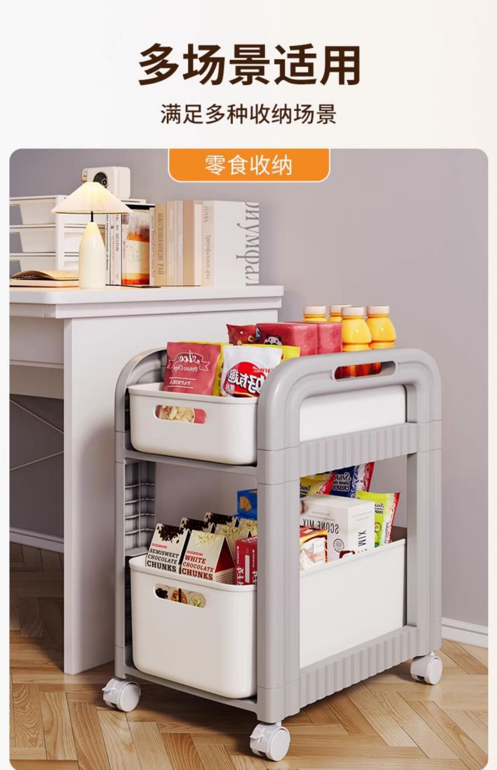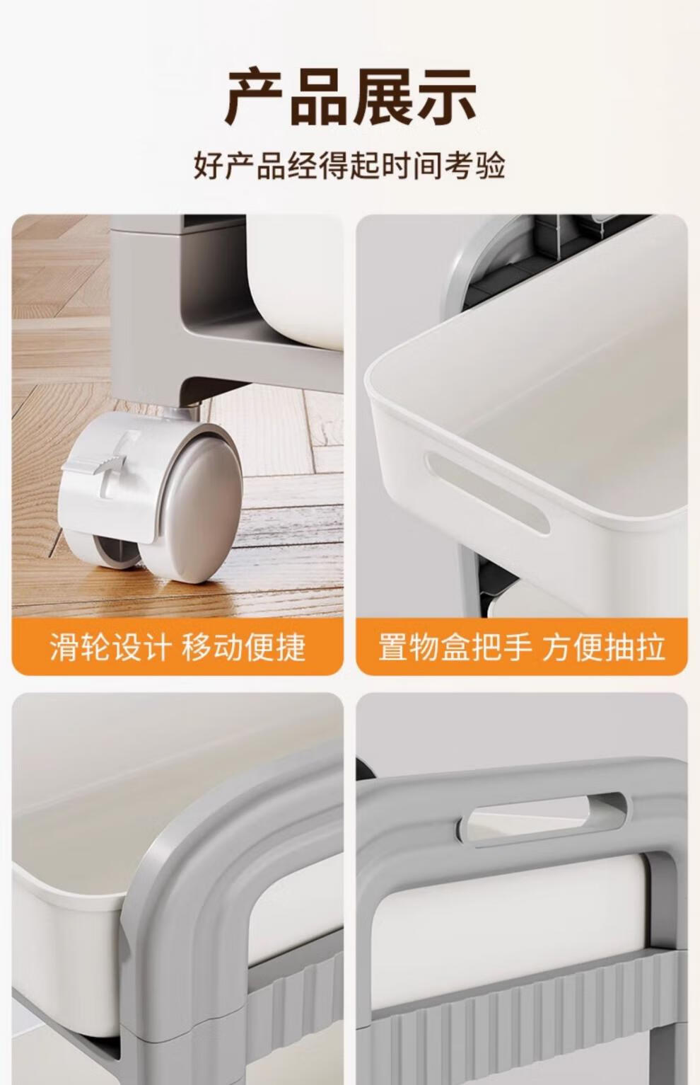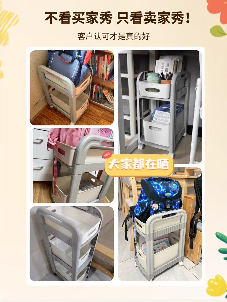 迈途森书包置物架可移动小推车书本收纳架神器家用多层放书包桌下滑轮柜 灰白色-两层【1高+1矮】带轮可拆卸