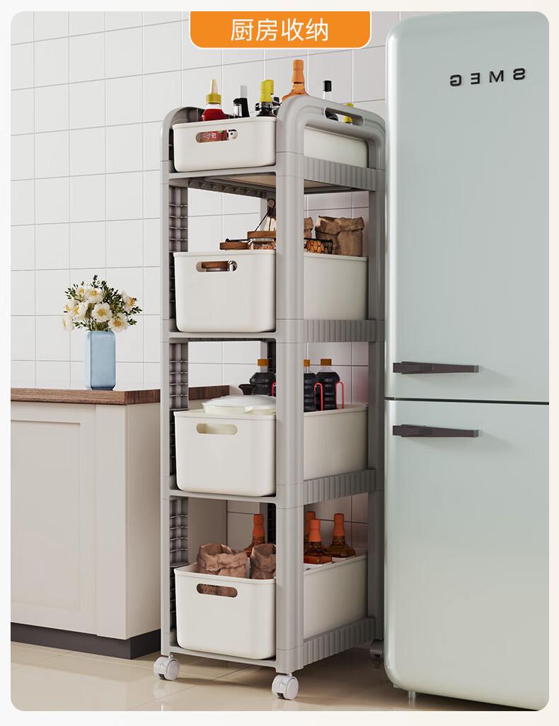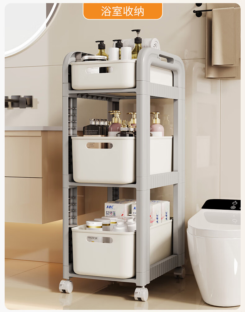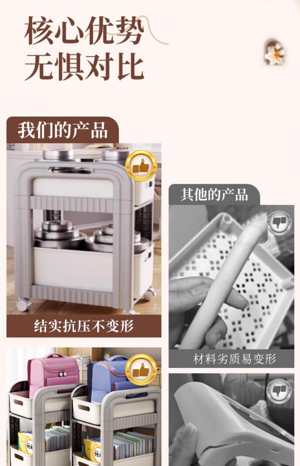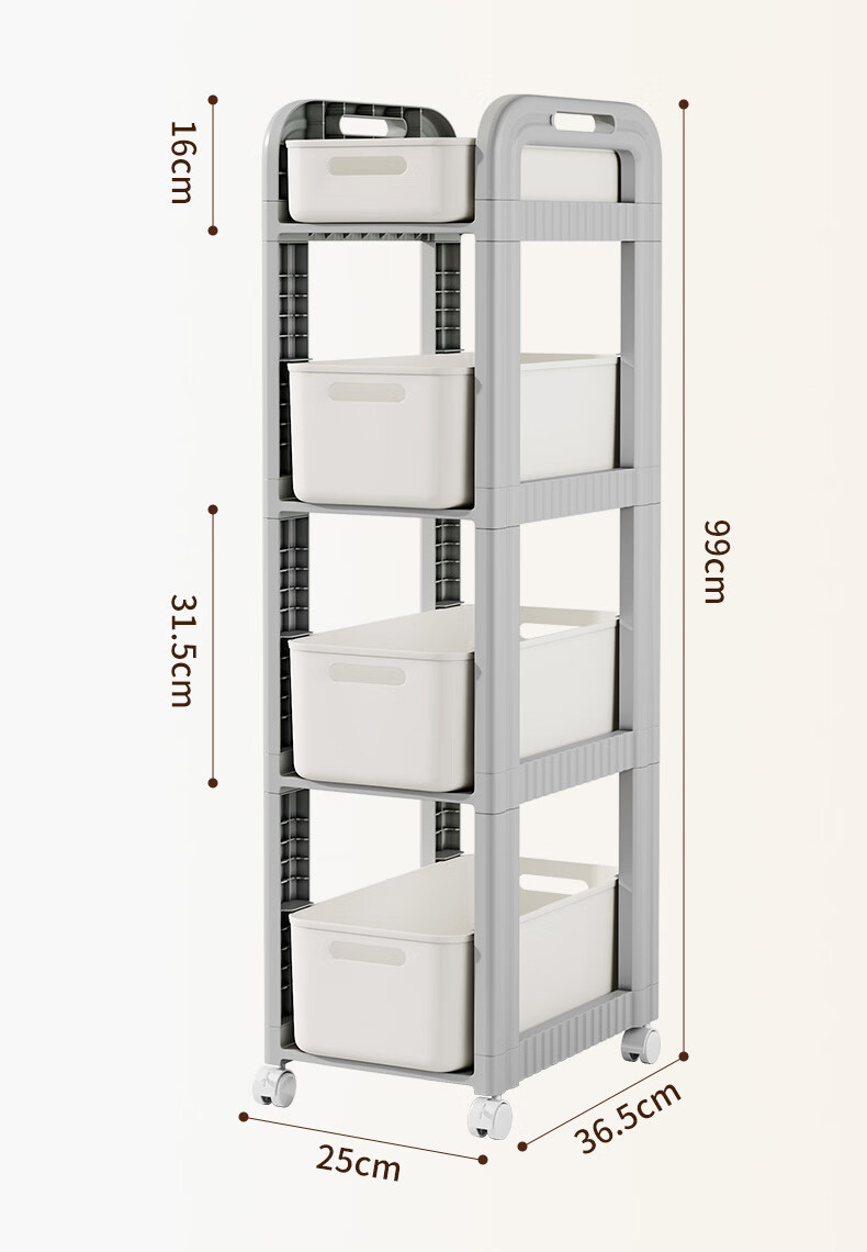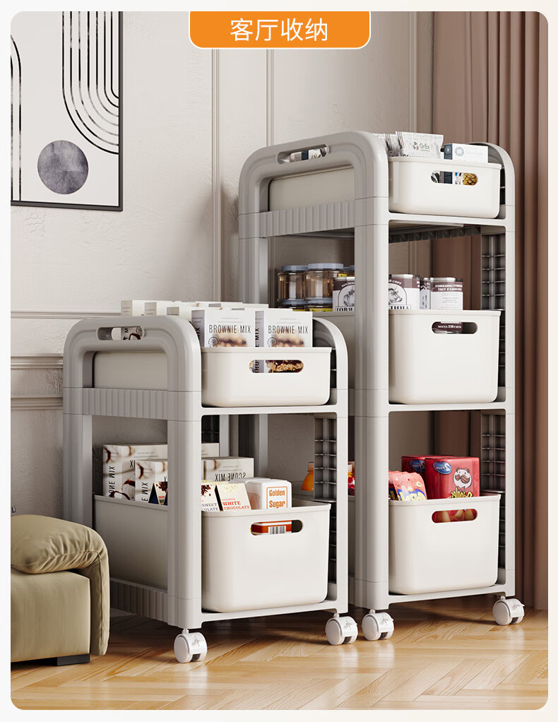 迈途森书包置物架可移动小推车书本收纳架神器家用多层放书包桌下滑轮柜 灰白色-两层【1高+1矮】带轮可拆卸